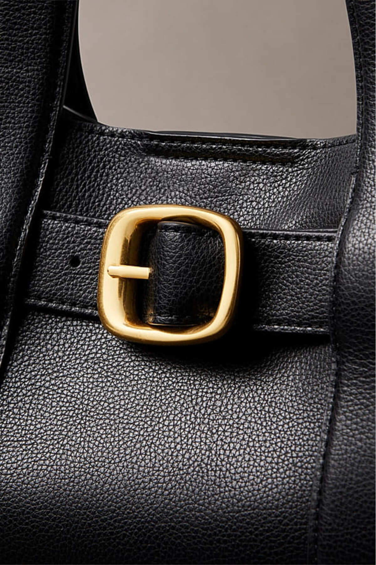 Kadın Tokalı Çıkarılabilir Askılı Mini Tote El Çantası - Siyah Kadın Tokalı Çıkarılabilir Askılı Mini Tote El Çantası - Siyah LV04F3295G تک سایز