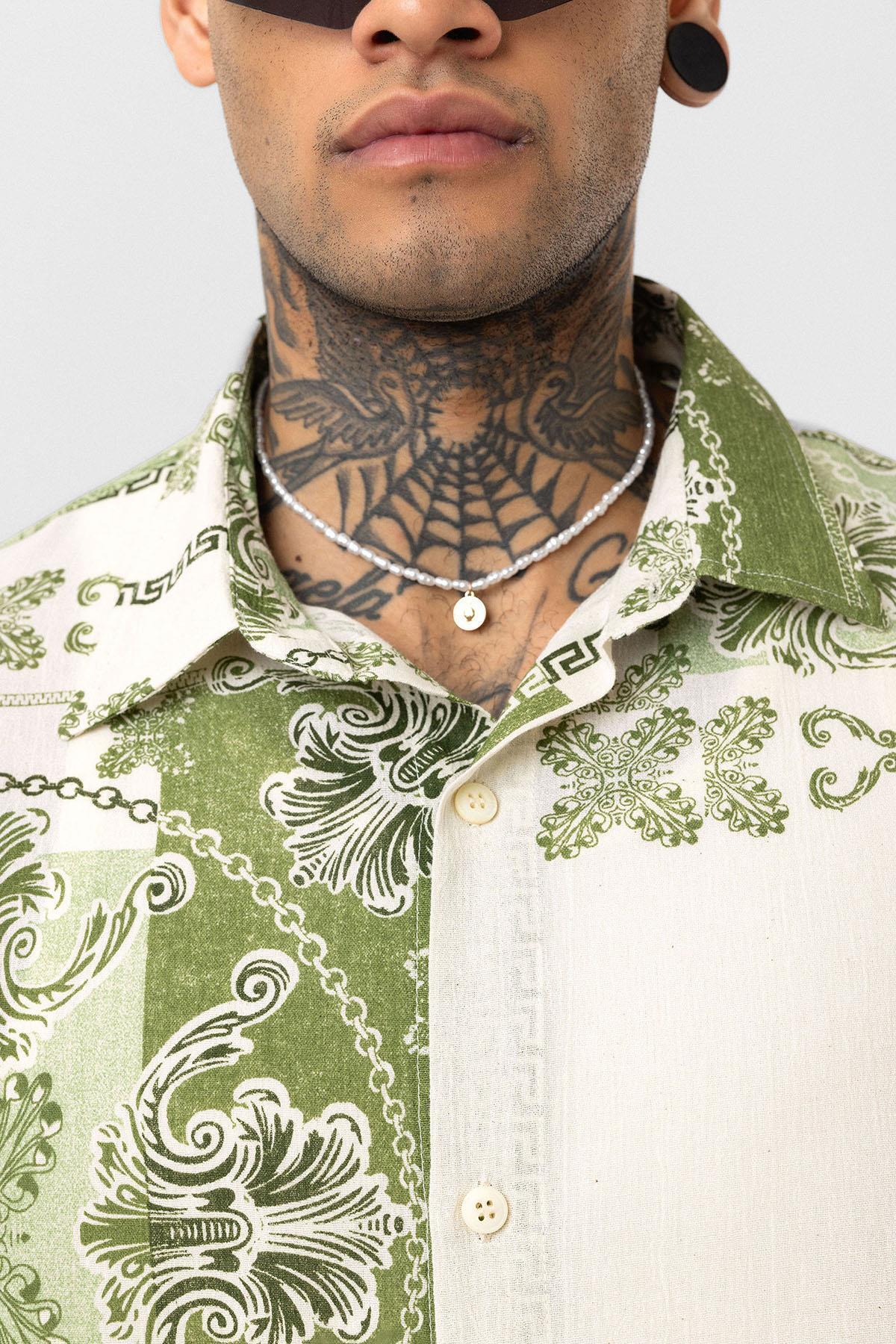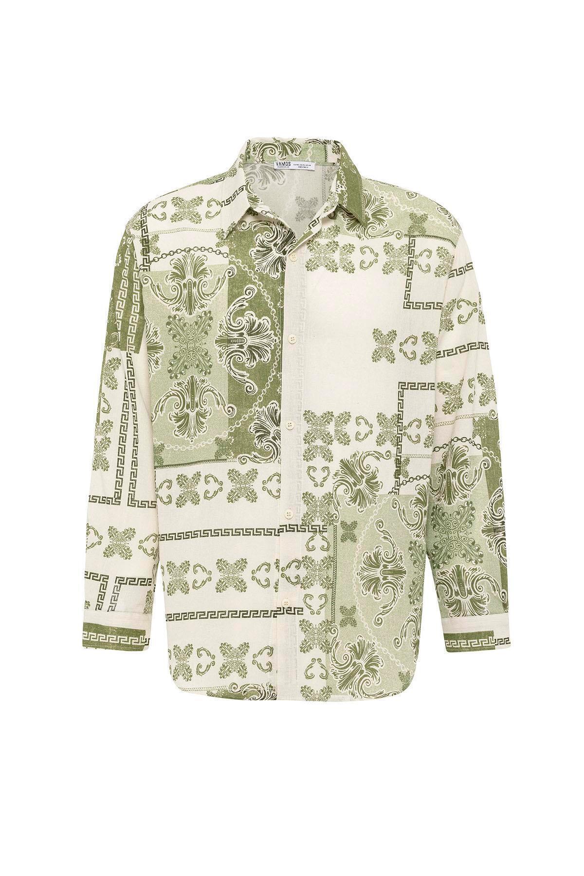 Etnik Desenli Oversize Gömlek Yeşil Etnik Desenli Oversize Gömlek Yeşil 40-966 XL