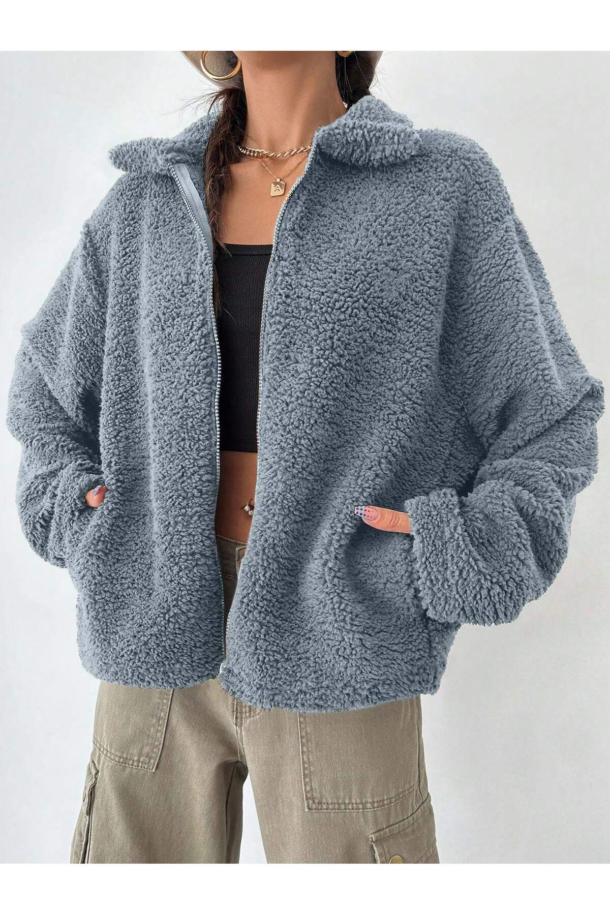 KADIN OVERSİZE FERMUARLI TEDDY PELUŞ HIRKA (GENİŞ KALIP) KADIN OVERSİZE FERMUARLI TEDDY PELUŞ HIRKA (GENİŞ KALIP) PPC-TEDDYHRK-01 XL