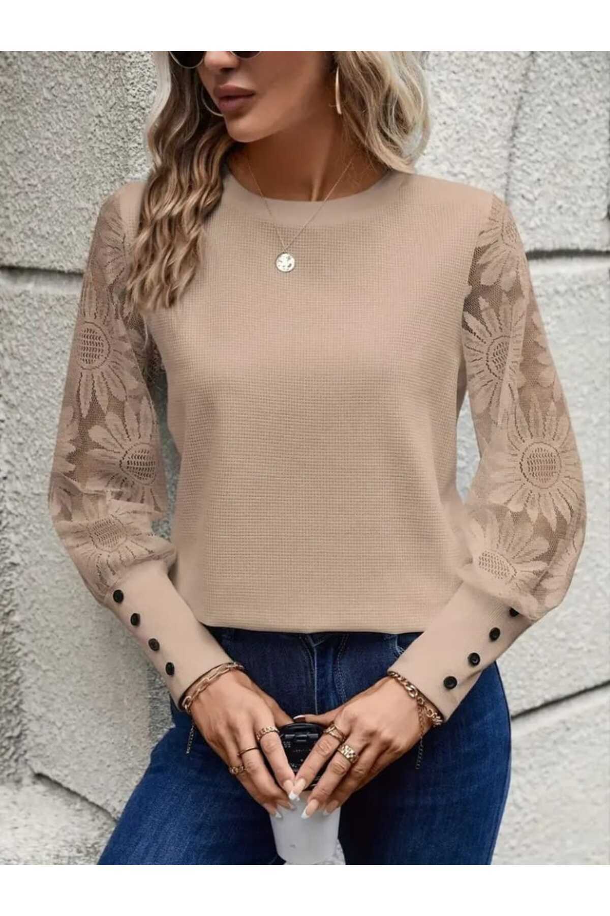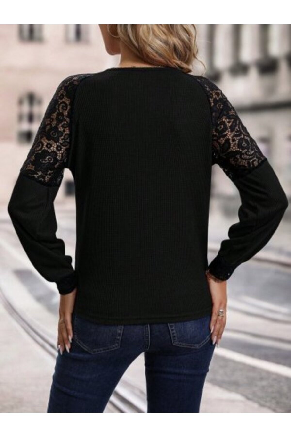 Yeni Sezon Waffle Kumaş Dantelli Bluz Kadın Uzun Kollu V Yaka Yeni Sezon Waffle Kumaş Dantelli Bluz Kadın Uzun Kollu V Yaka J-76201-MN 2XL-3XL