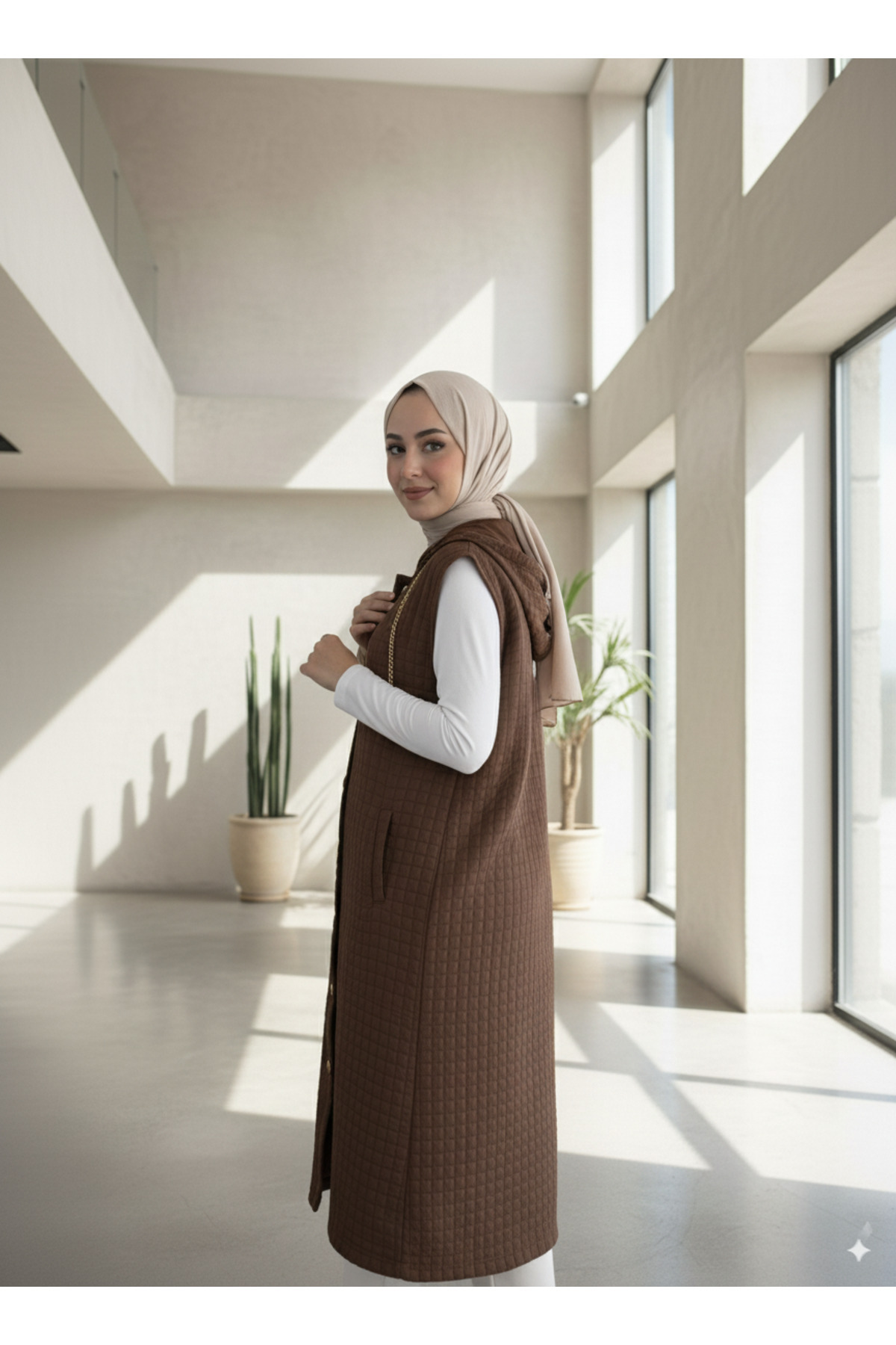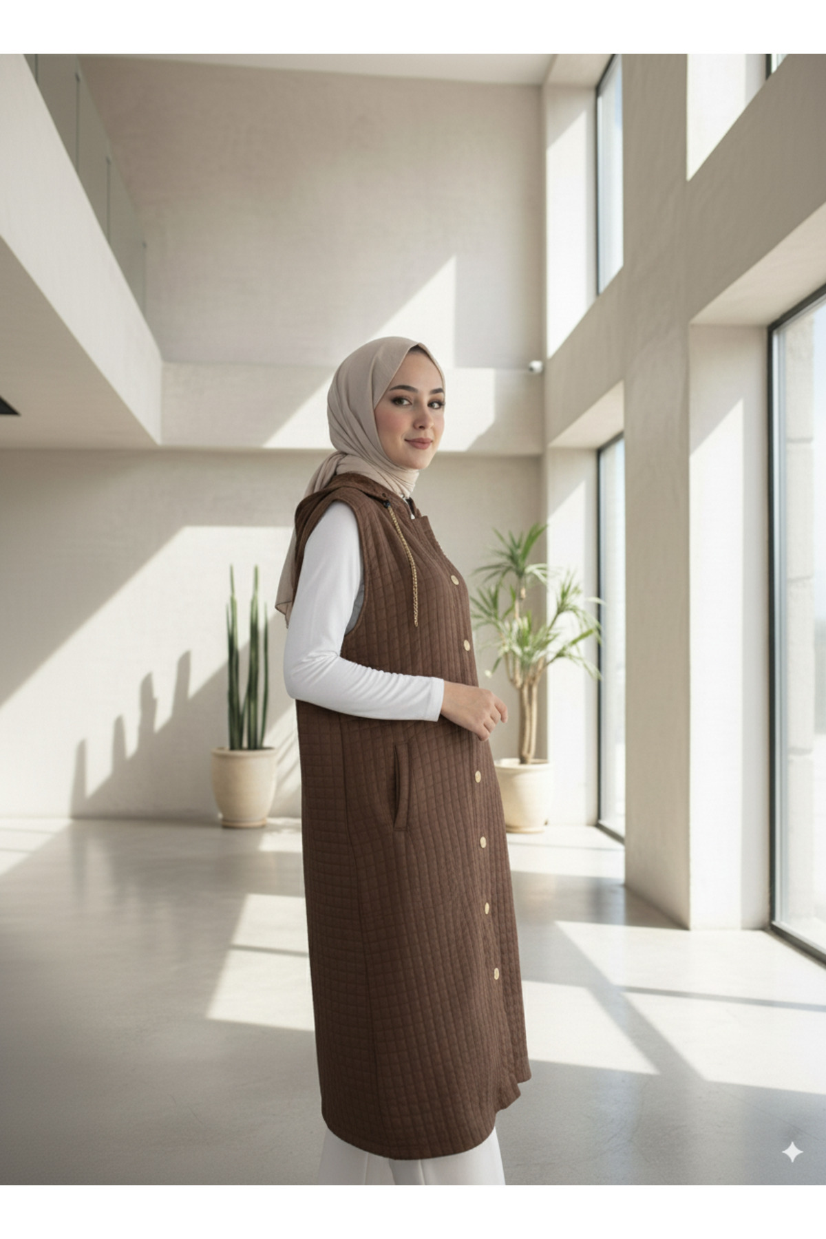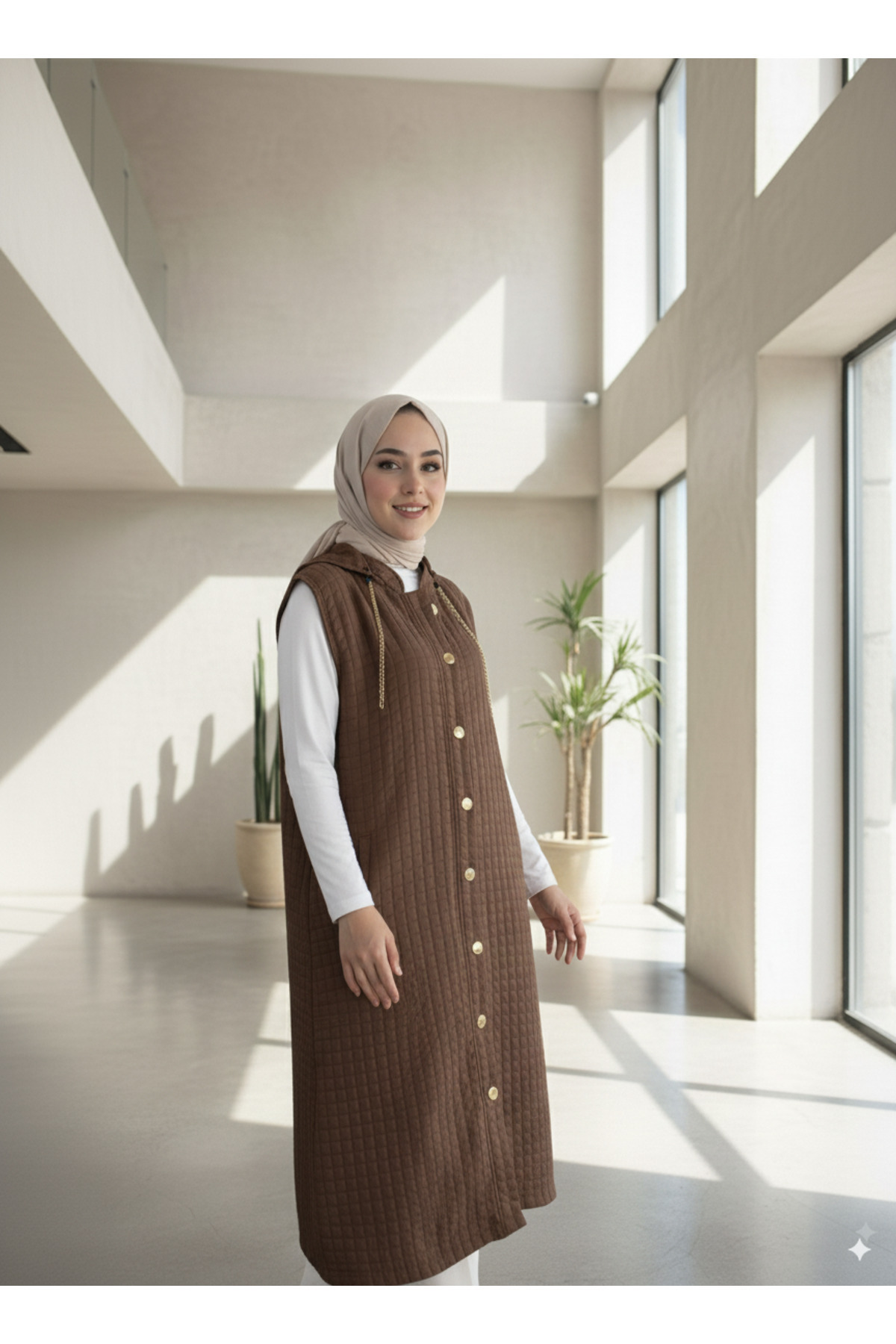 Kadın Kapüşonlu Uzun Kapitone Yelek Kadın Kapüşonlu Uzun Kapitone Yelek LVRS500 54-56
