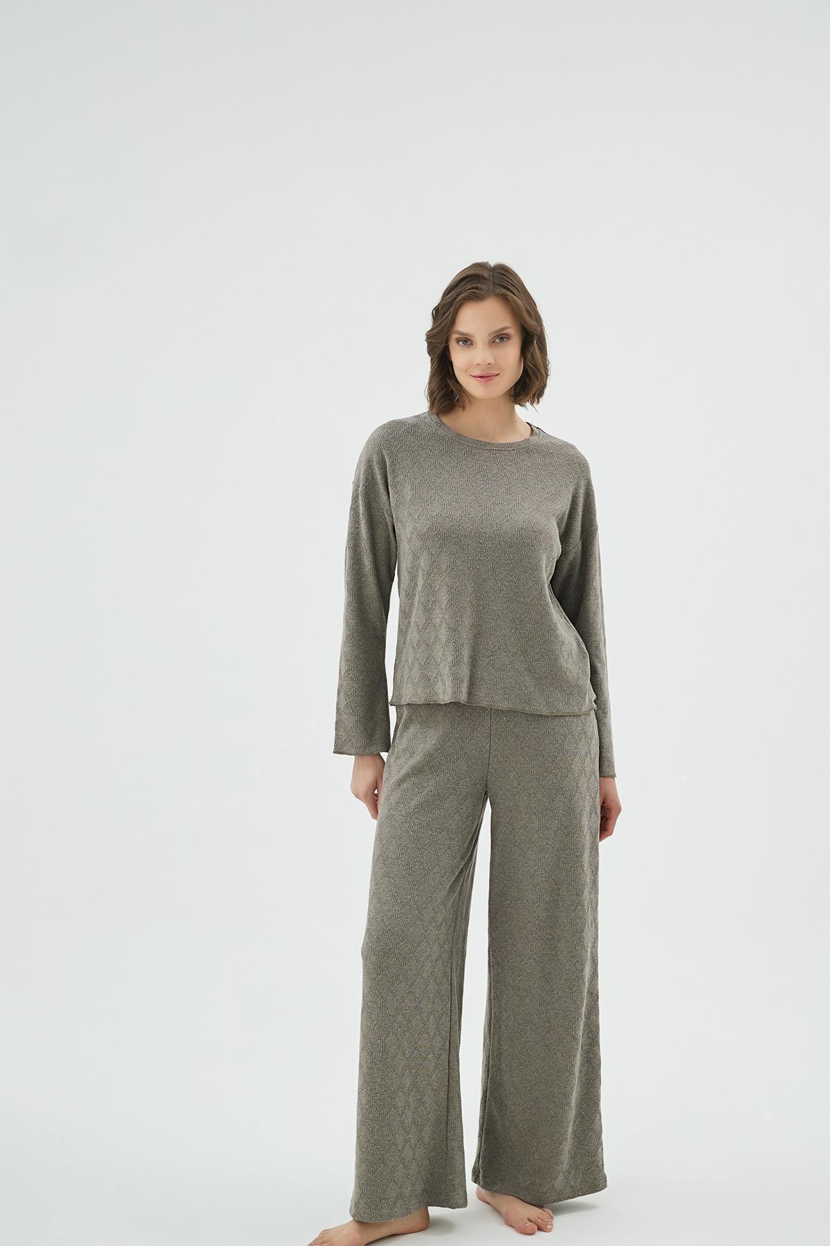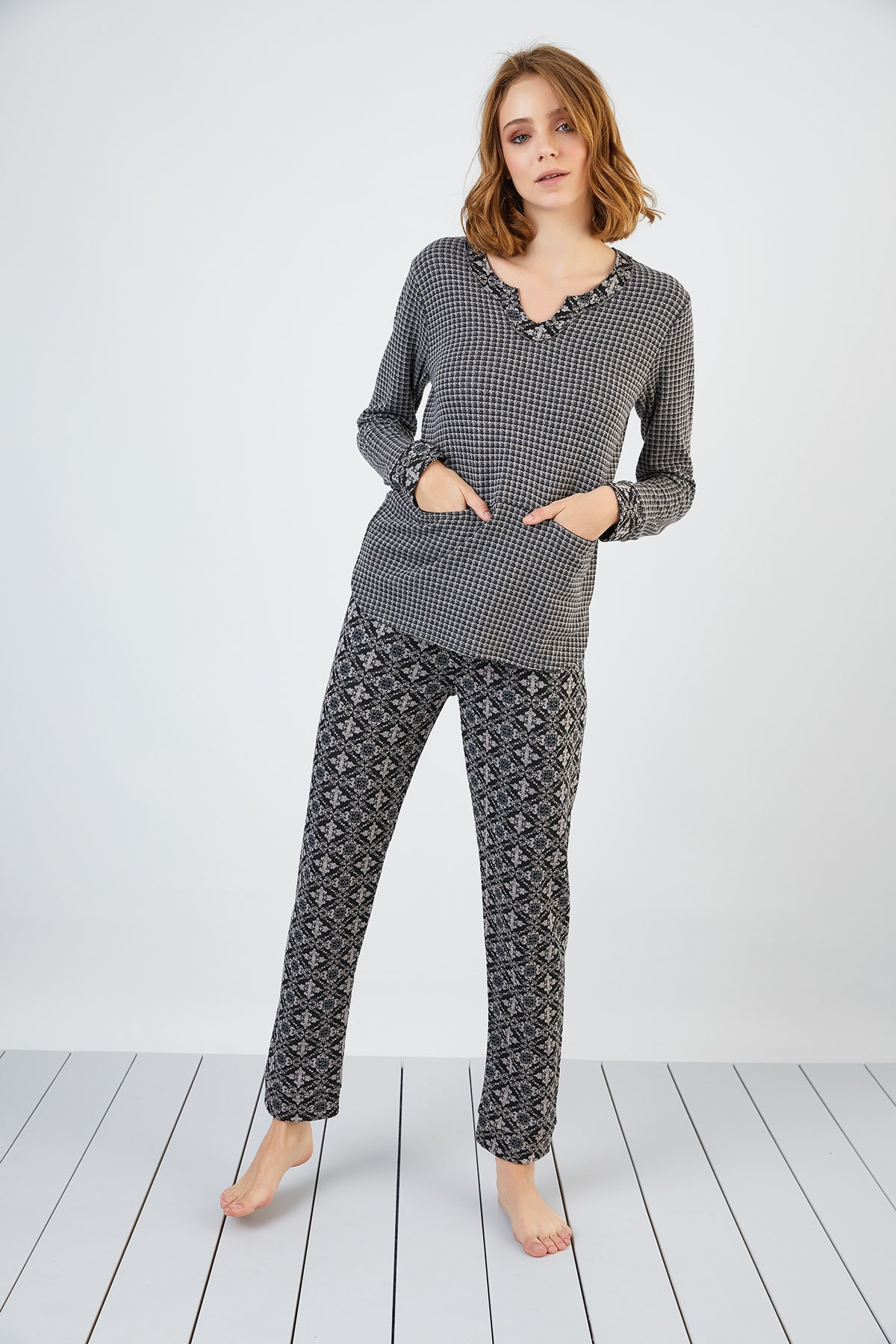 Kadın Kışlık Desenli Uzun Kollu Geniş Paça Pijama Takımı C8T2N171 Kadın Kışlık Desenli Uzun Kollu Geniş Paça Pijama Takımı C8T2N171 328634 XL
