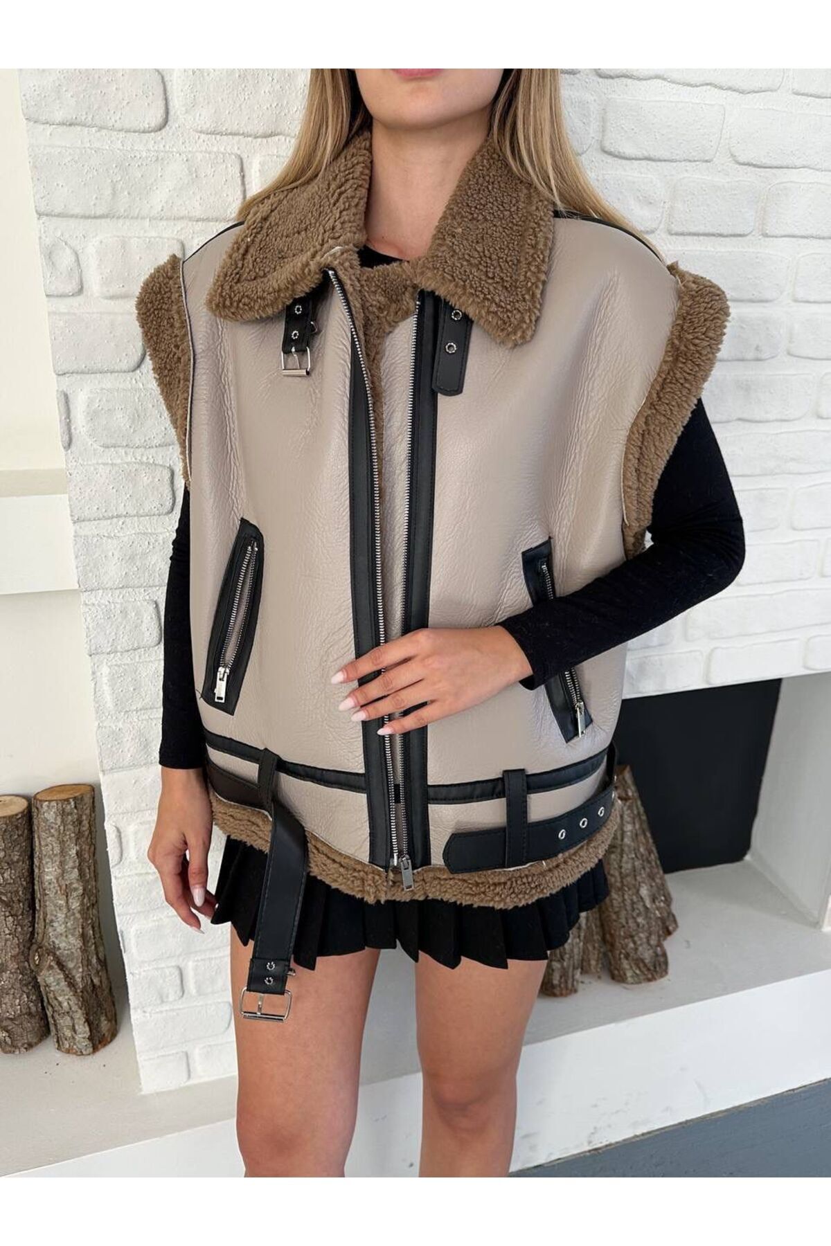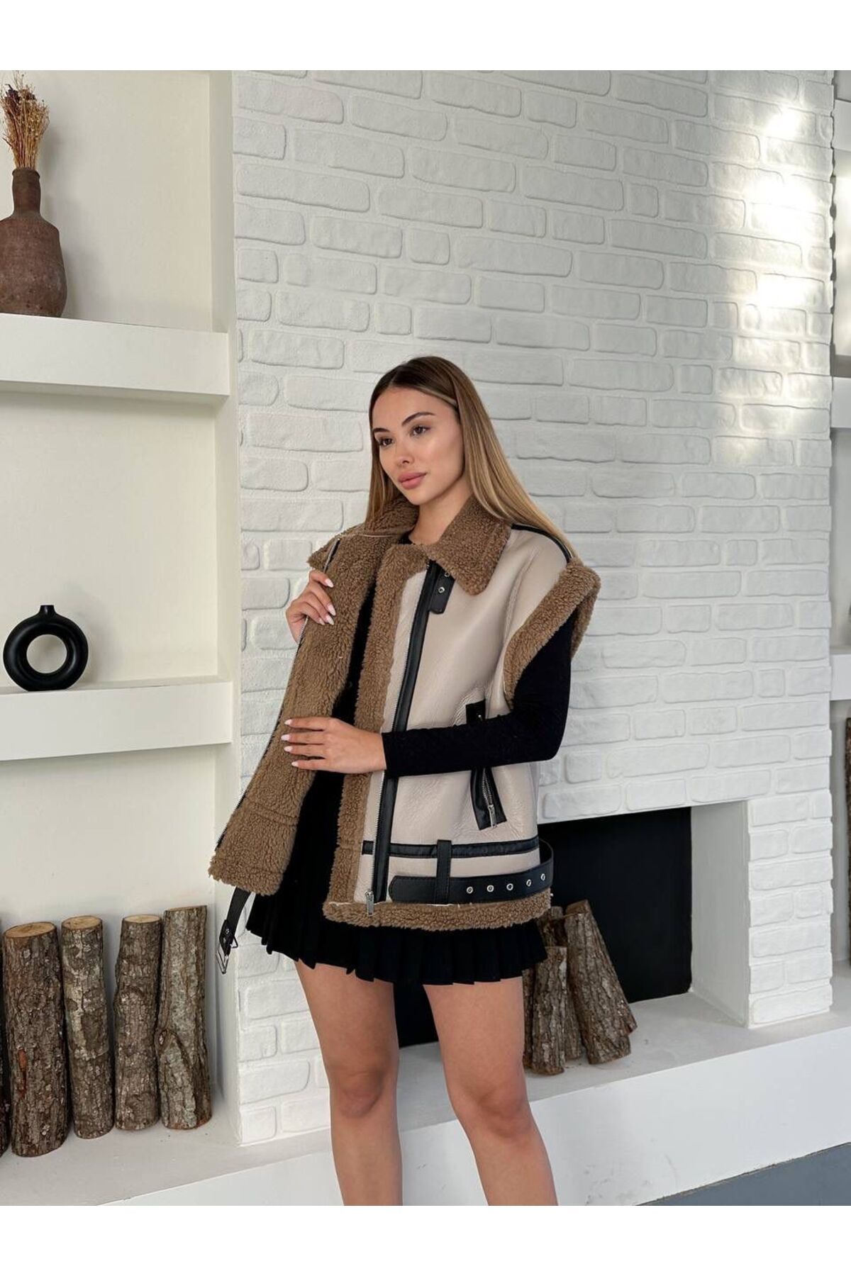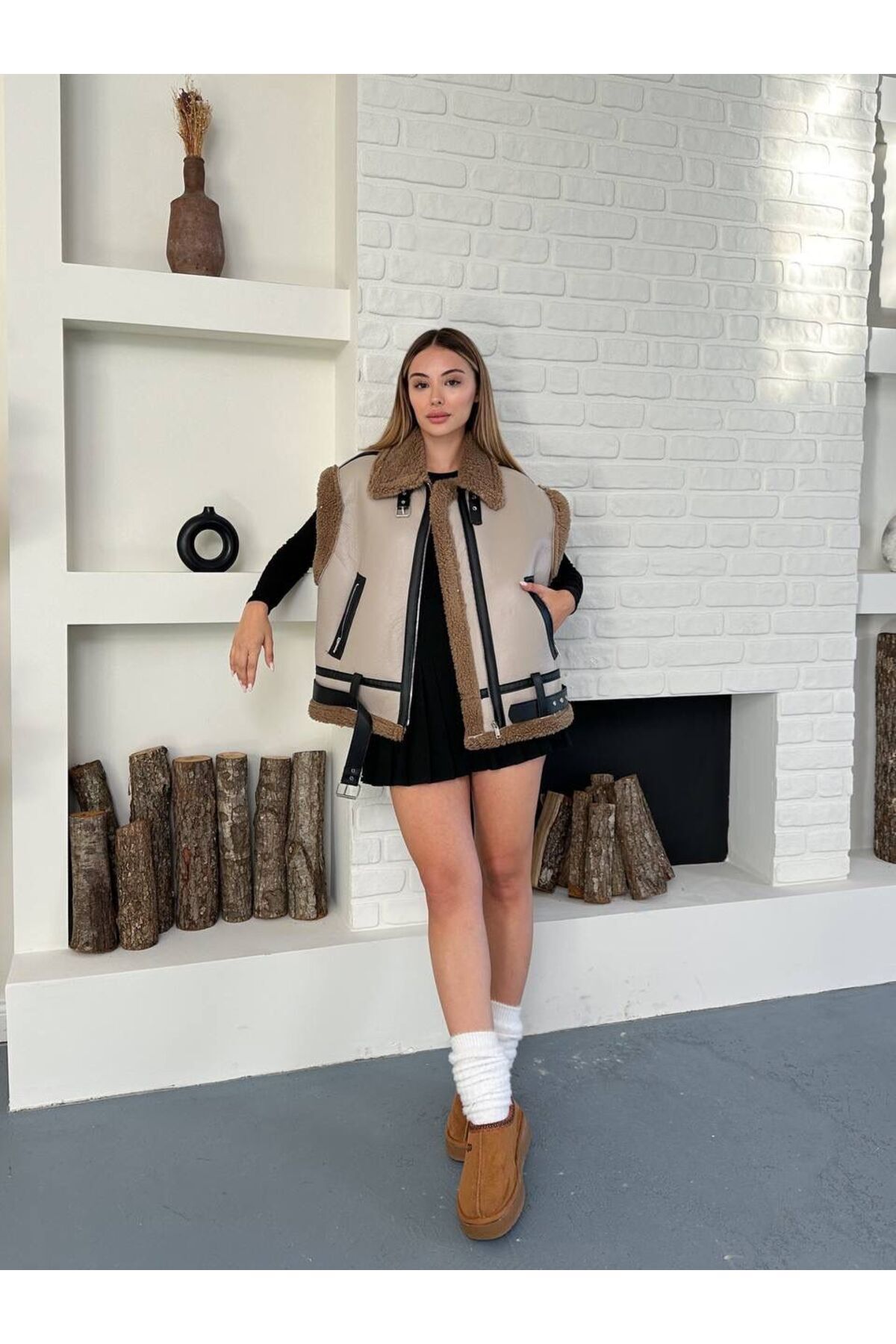 Oversize İçi Peluş Deri Biker Yelek Oversize İçi Peluş Deri Biker Yelek SND19033820 L