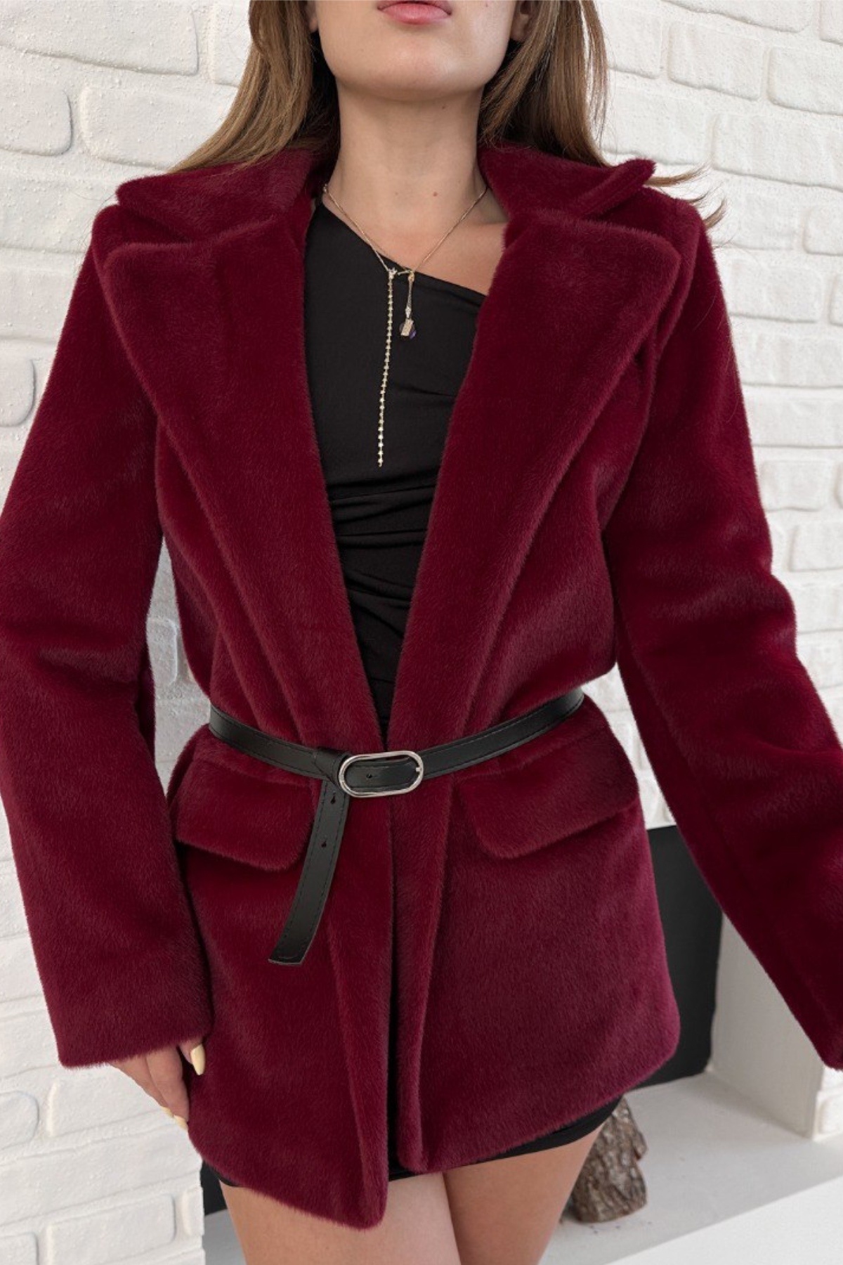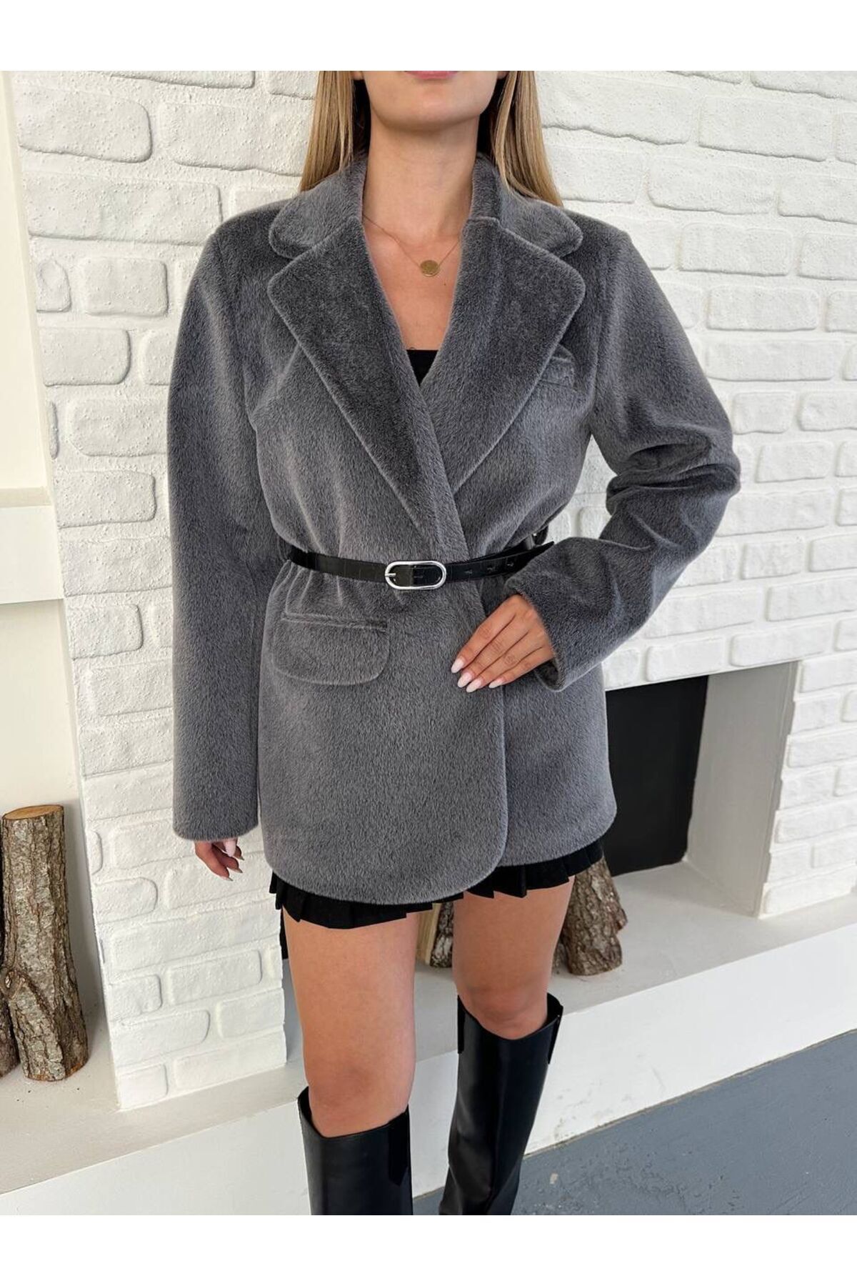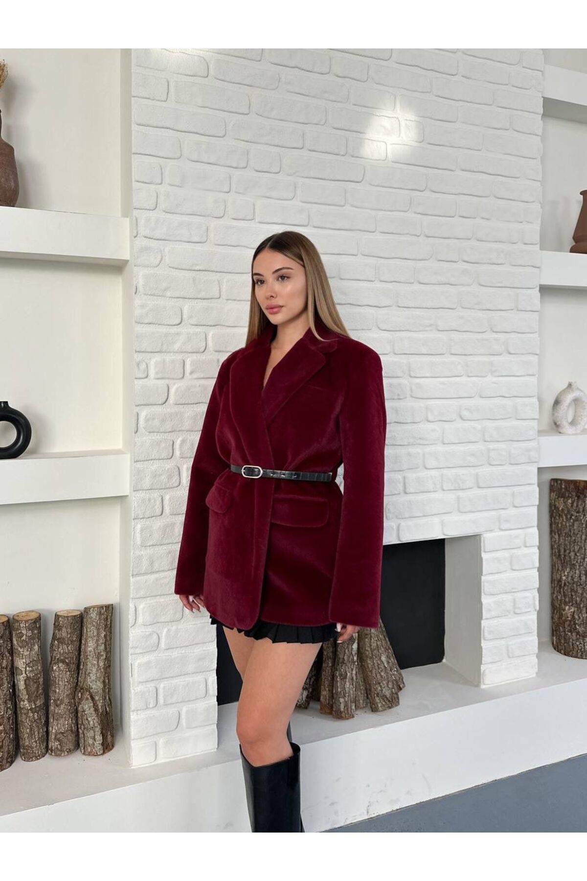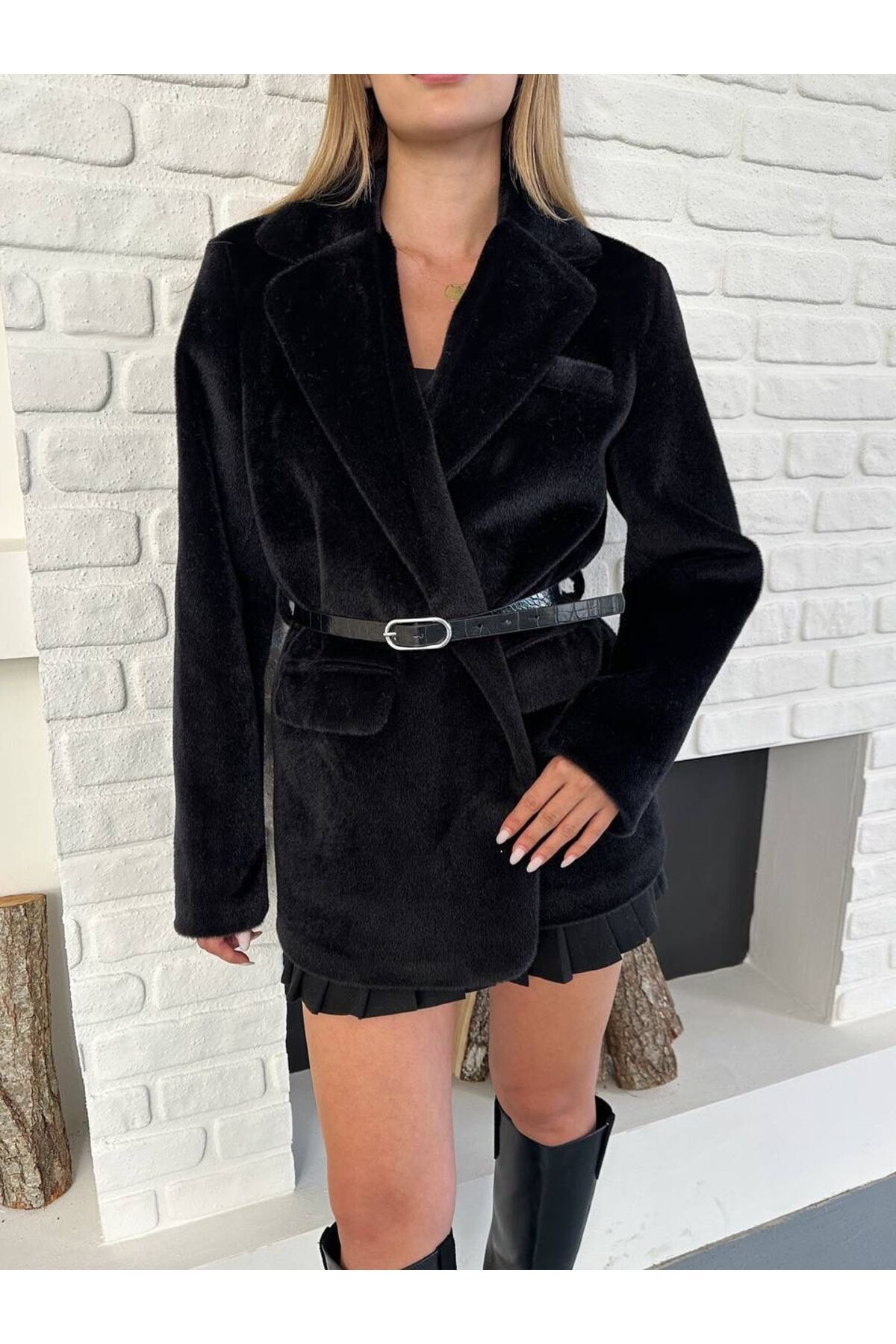 Kaşmir Dokulu Premium Kemerli Blazer Ceket Kaşmir Dokulu Premium Kemerli Blazer Ceket SND13721070 L