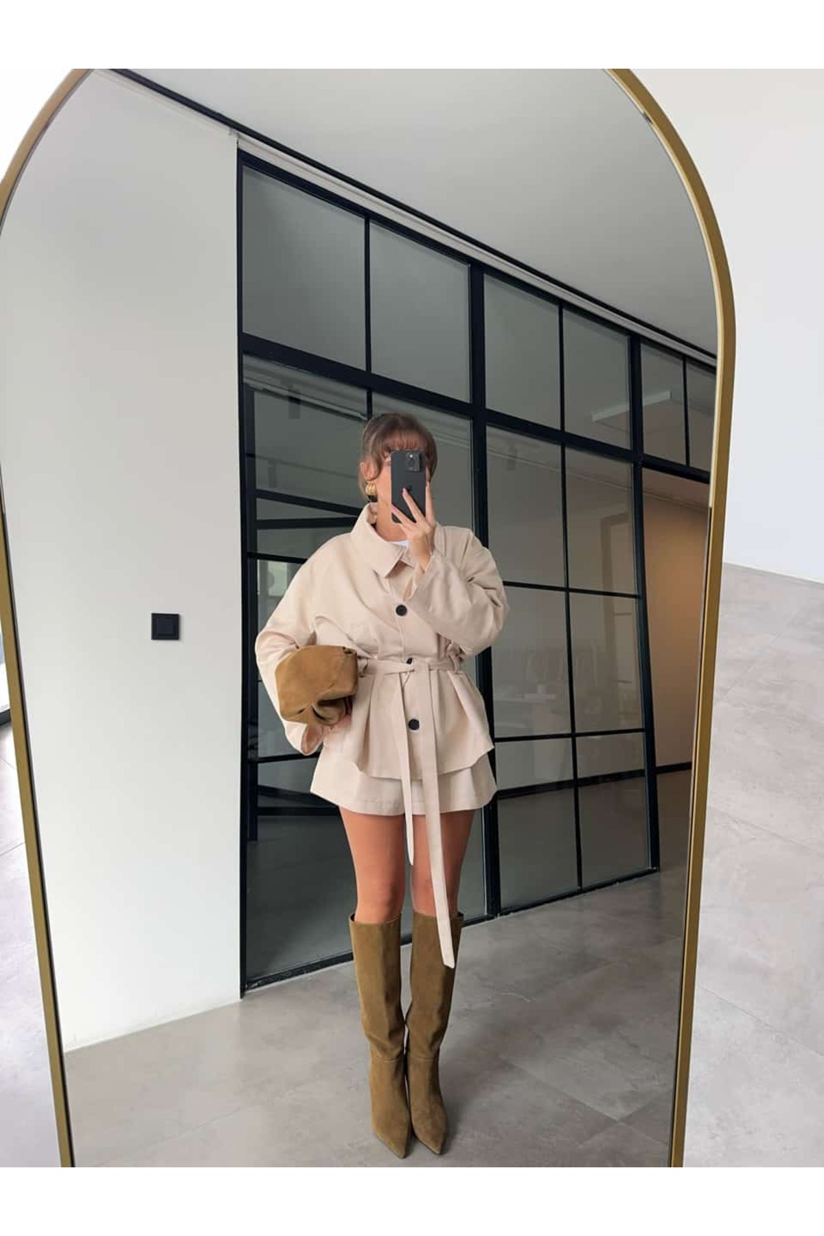 BEJ TRENÇKOT ŞORT TAKIM BEJ TRENÇKOT ŞORT TAKIM BB26HF9256B L