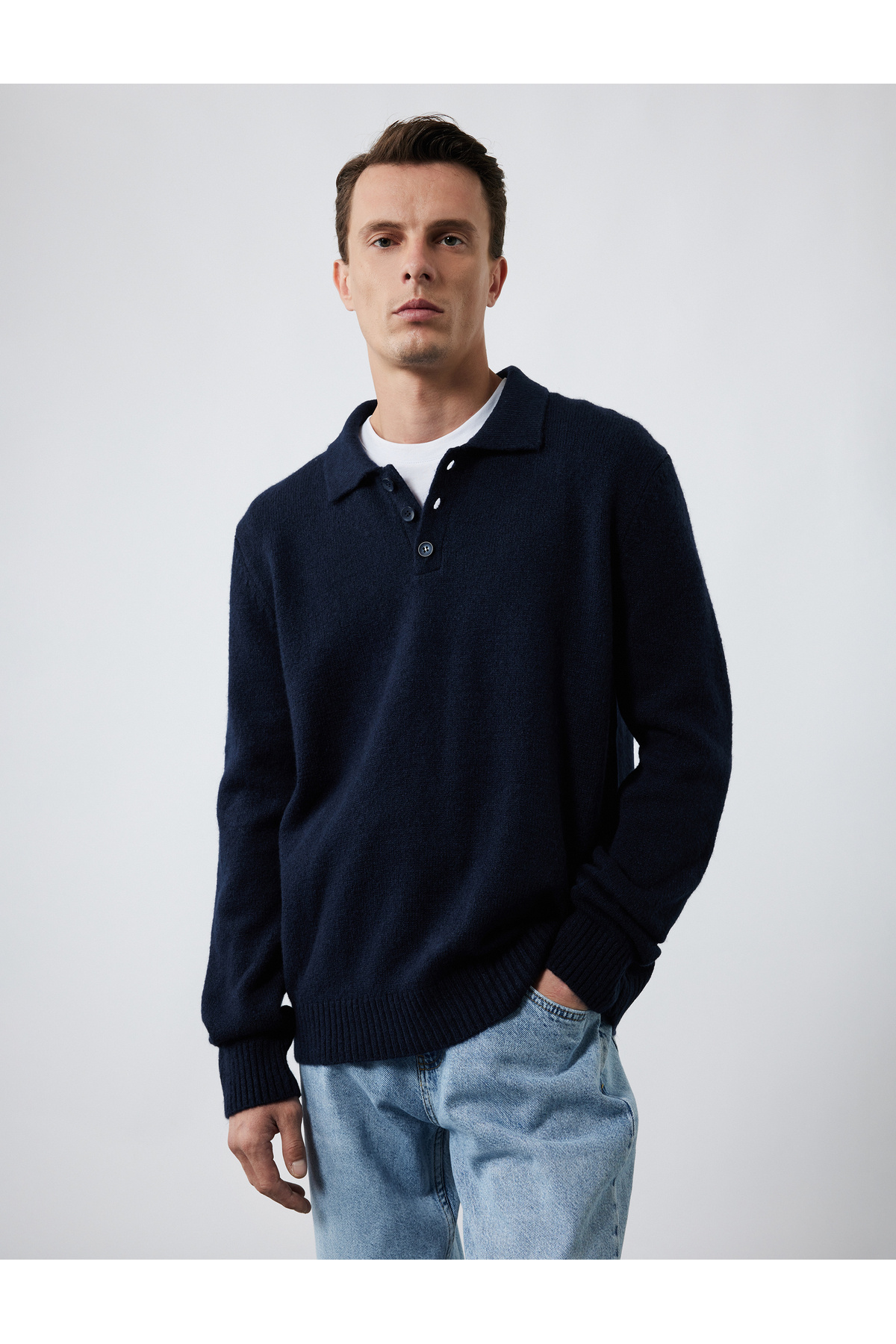 Uzun Kollu Düğmeli Polo Yaka Triko Kazak Uzun Kollu Düğmeli Polo Yaka Triko Kazak 6WAM70049HT XL
