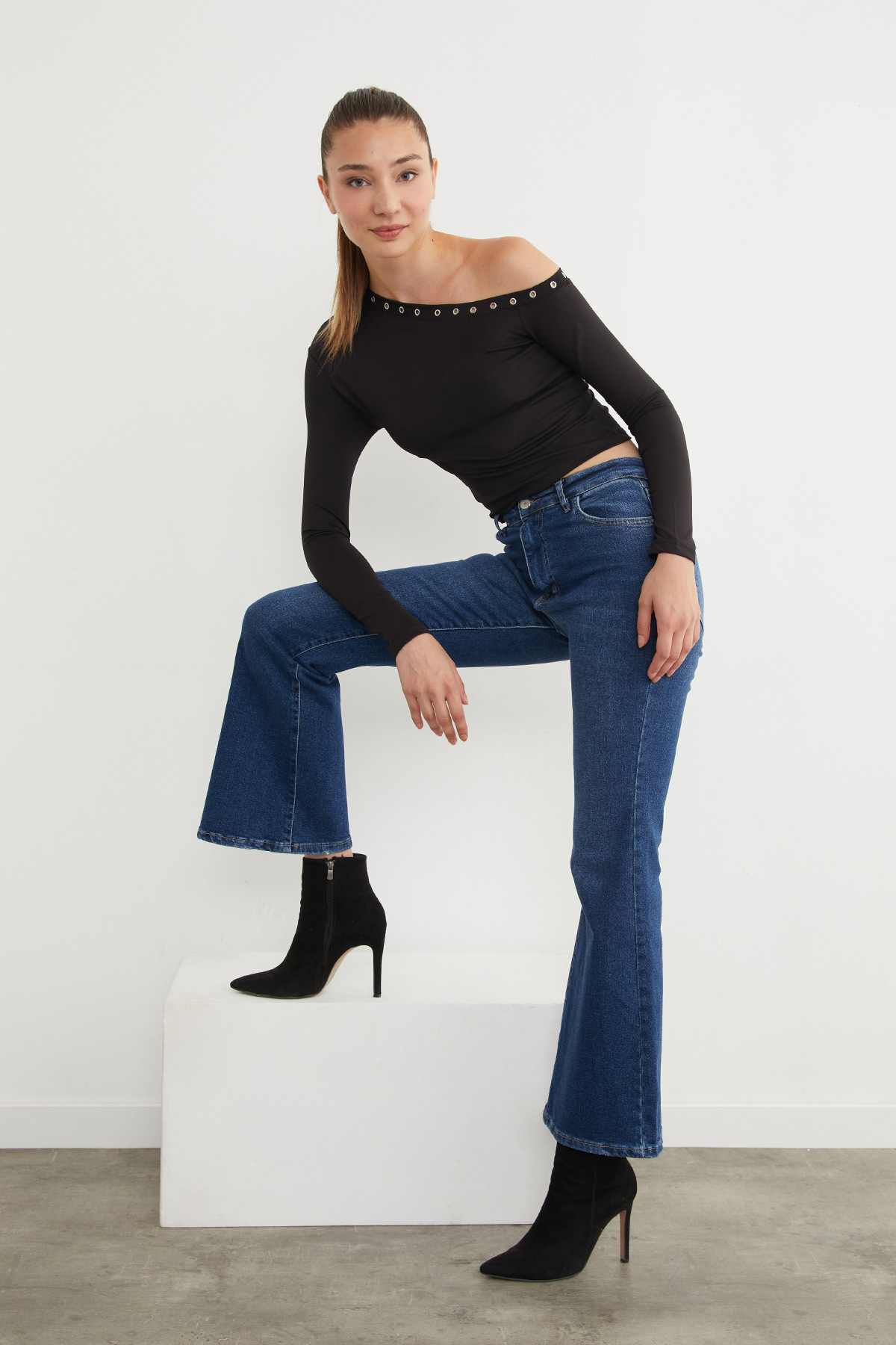 Kuşgözü Detaylı Tek Omuz Bluz Kuşgözü Detaylı Tek Omuz Bluz 26KGB7220133429 L
