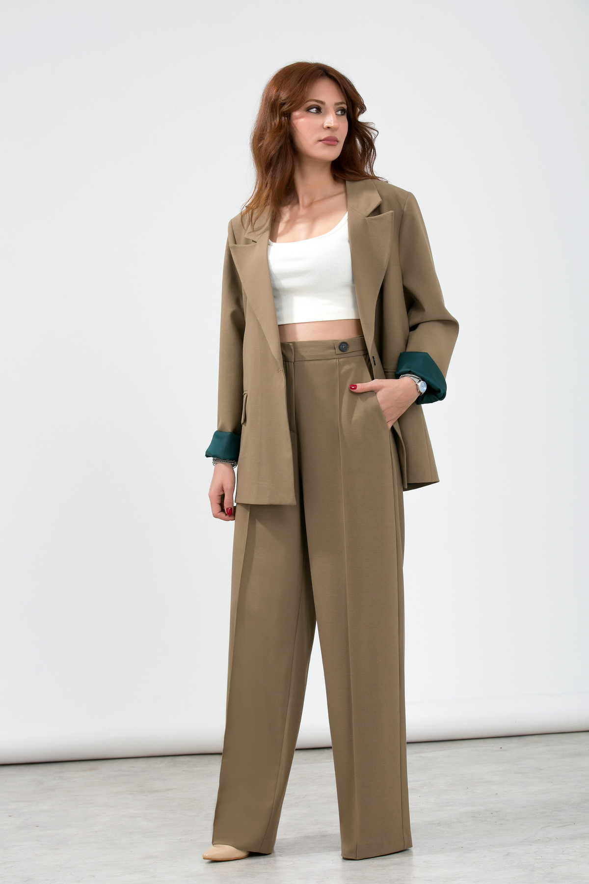 Önden Kapaklı Cepli Rahat Kalıp Ceket Pantolon Takım Önden Kapaklı Cepli Rahat Kalıp Ceket Pantolon Takım PSMALA360934HF L