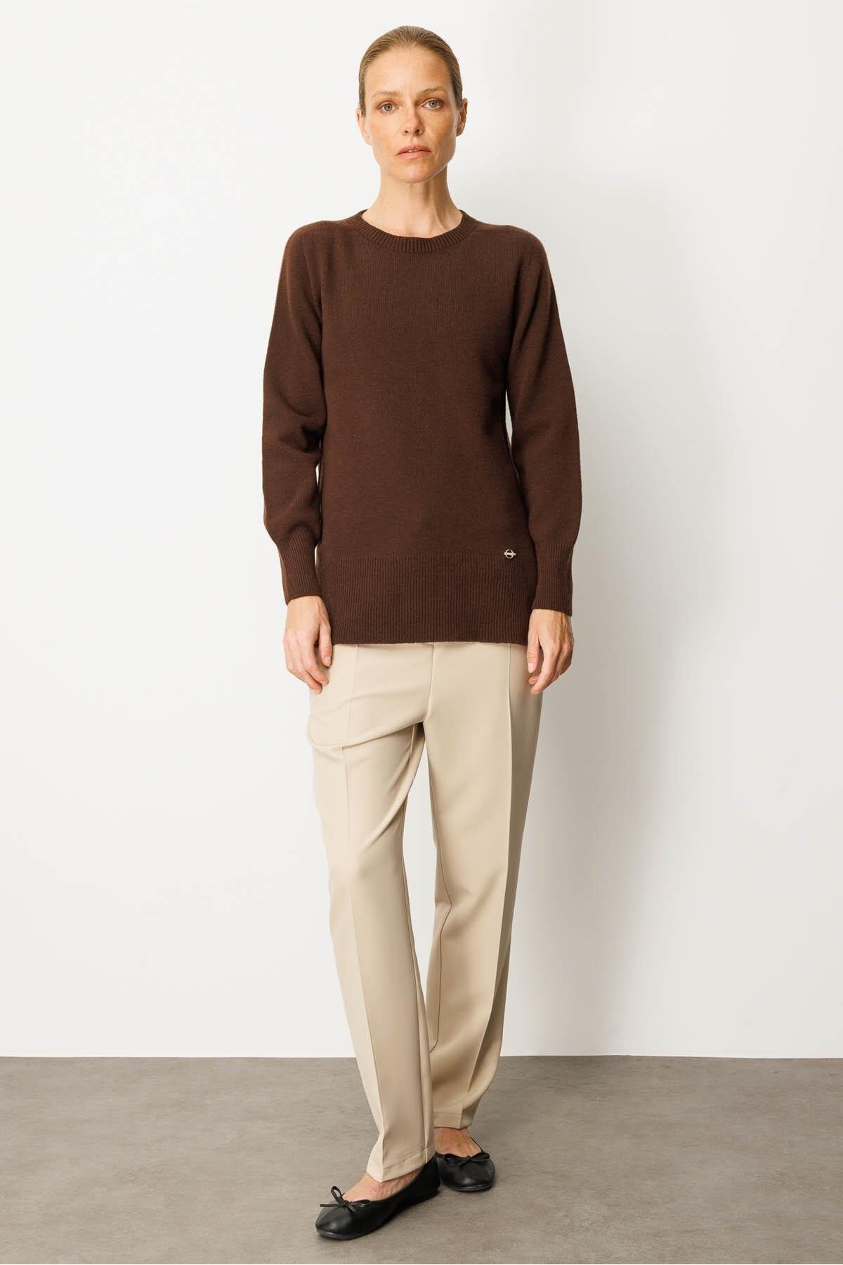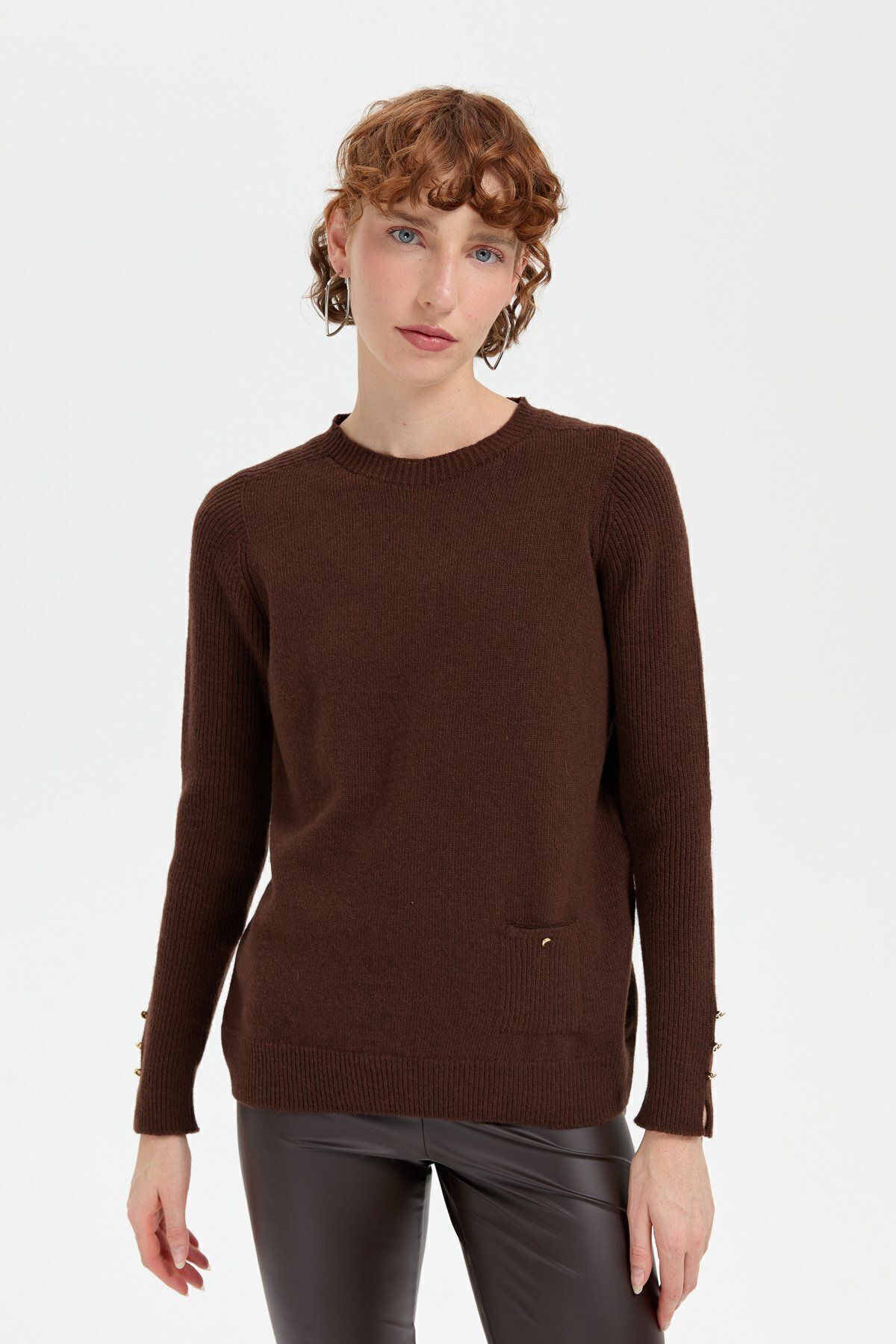 Kadın Sıfır Yaka Yanı Yırtmaçlı Yün Kazak M.Kahve Kadın Sıfır Yaka Yanı Yırtmaçlı Yün Kazak M.Kahve 25214 XL