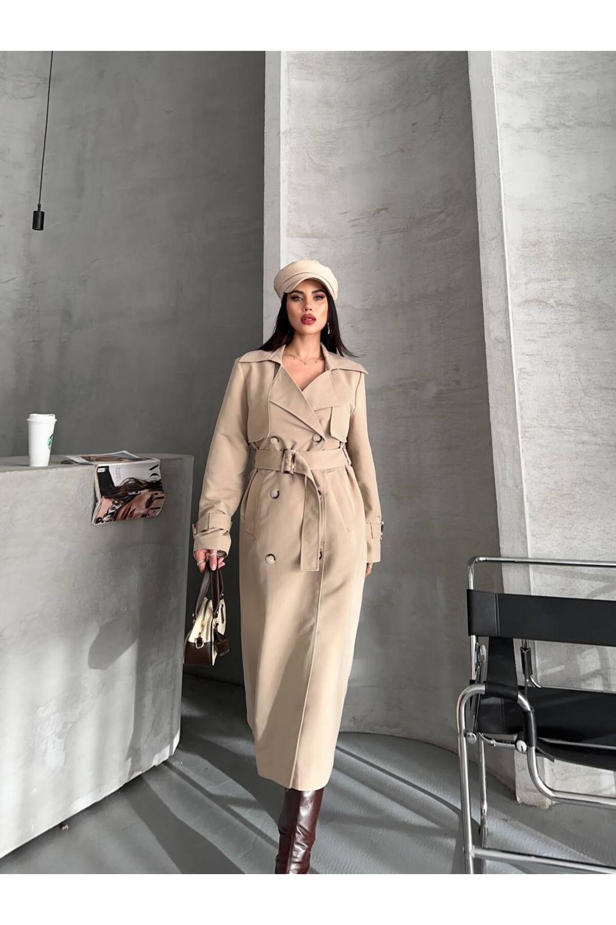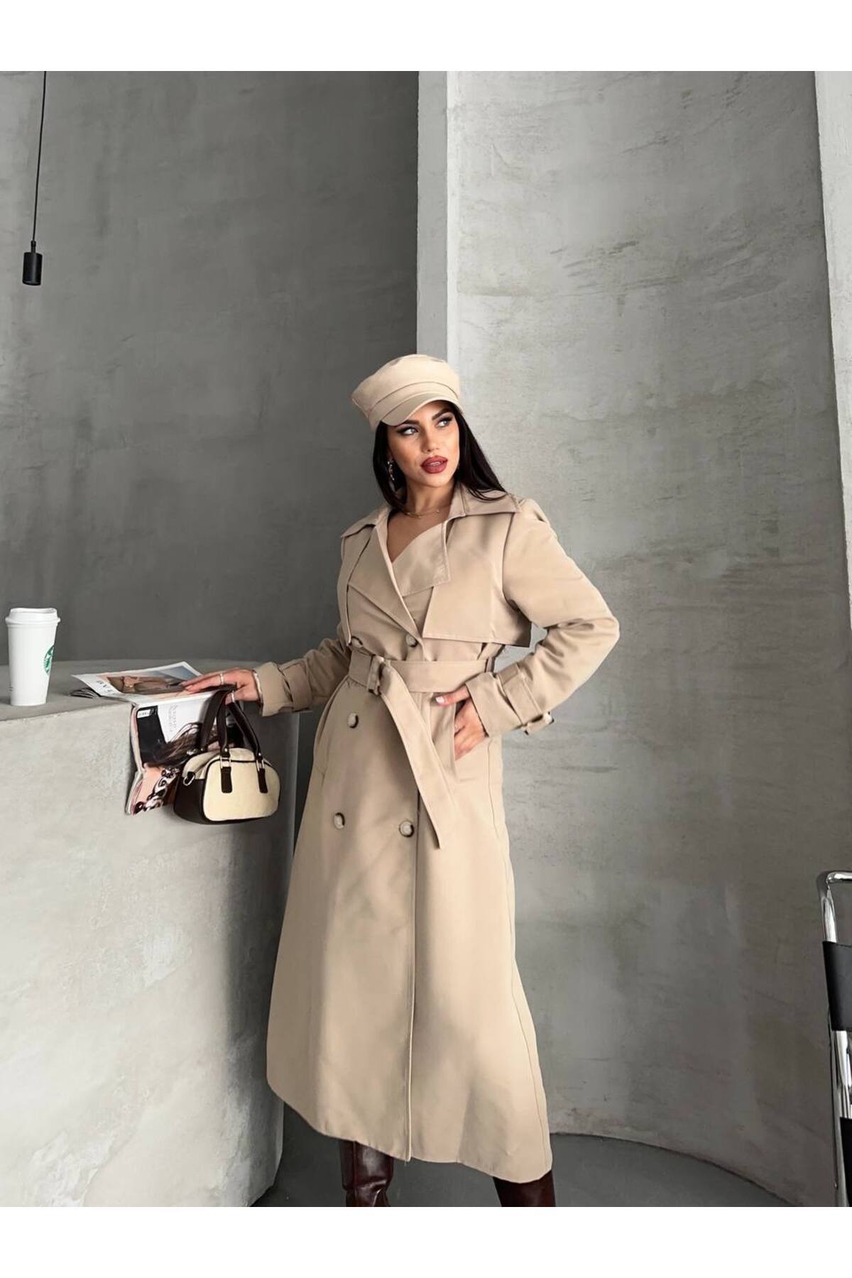 Kadın Oversize Uzun Astarlı Kemerli Çift Düğmeli Trençkot Kadın Oversize Uzun Astarlı Kemerli Çift Düğmeli Trençkot Bella3145 42