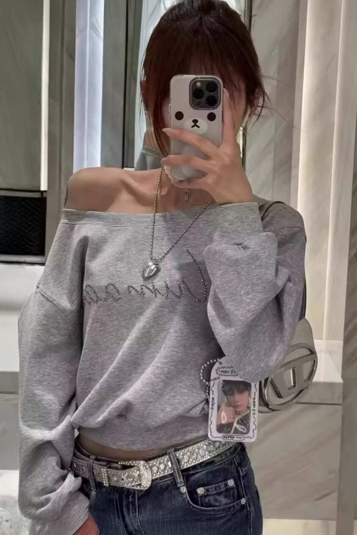 Gri Melanj Geniş Omuzlu Uzun Kollu Crop Body Gri Melanj Geniş Omuzlu Uzun Kollu Crop Body moodgrigenizomuzbody M