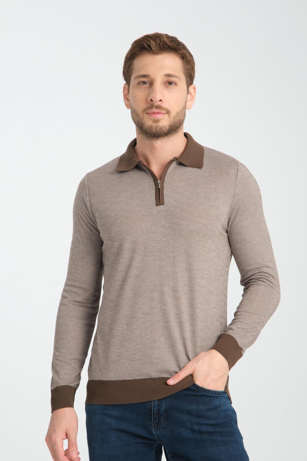 Erkek Polo Yaka Fermuarlı Kazak 8008 Erkek Polo Yaka Fermuarlı Kazak 8008 E25MMYJONS8008KZK 2XL