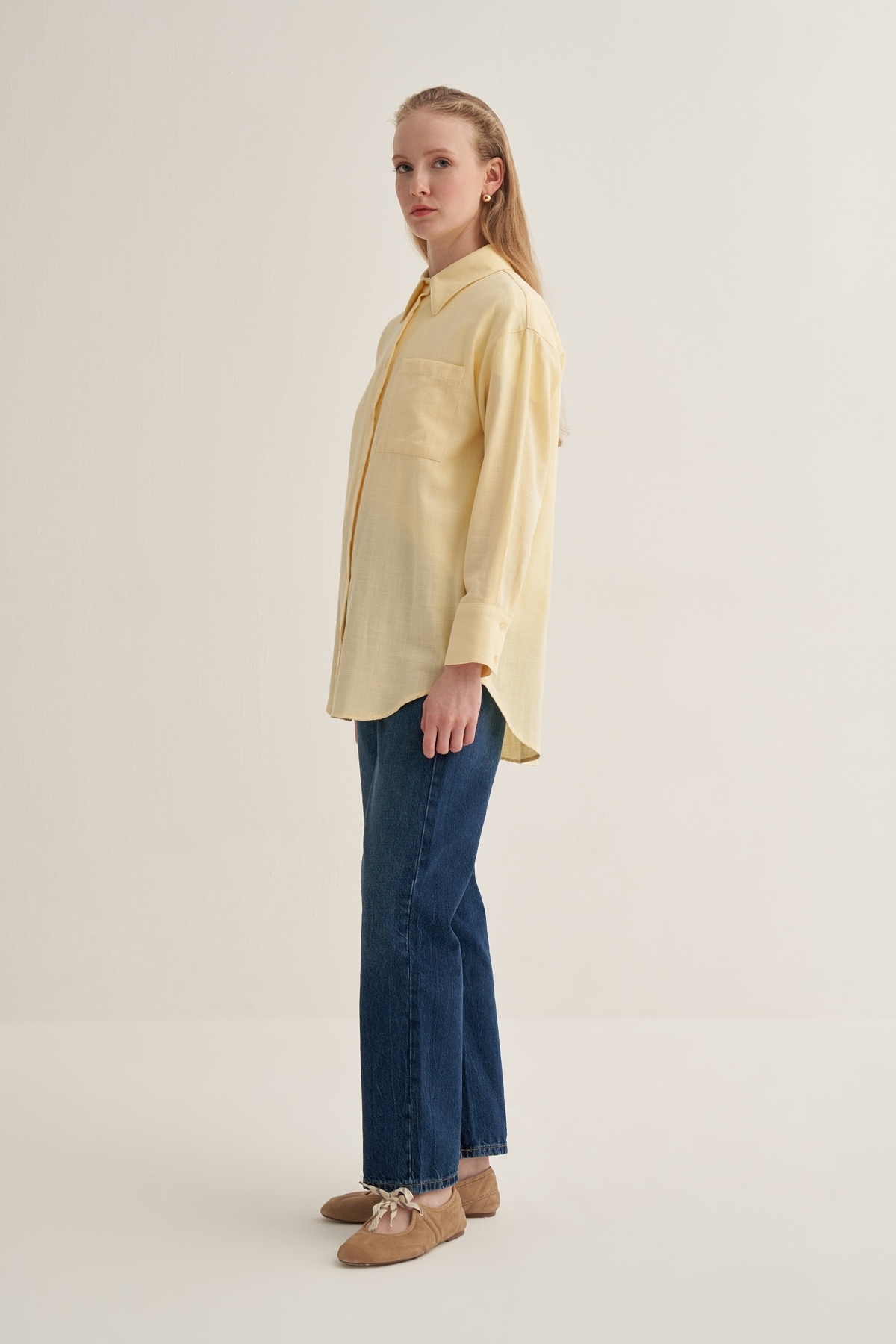 Kadın Organik Pamuk Oversize Gömlek Tereyağı Kadın Organik Pamuk Oversize Gömlek Tereyağı 25-SMR-ORG-554-EBU-BRZ L/XL