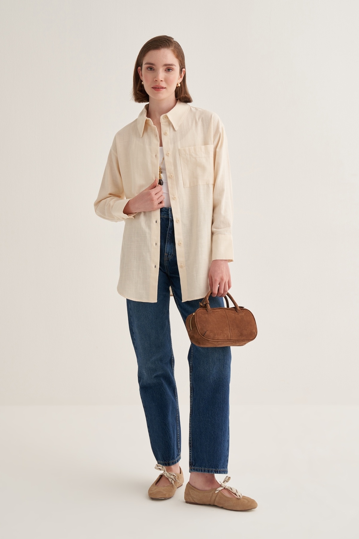 Kadın Organik Pamuk Oversize Gömlek Ekru Kadın Organik Pamuk Oversize Gömlek Ekru 25-SMR-ORG-554-EBU-BRZ L/XL