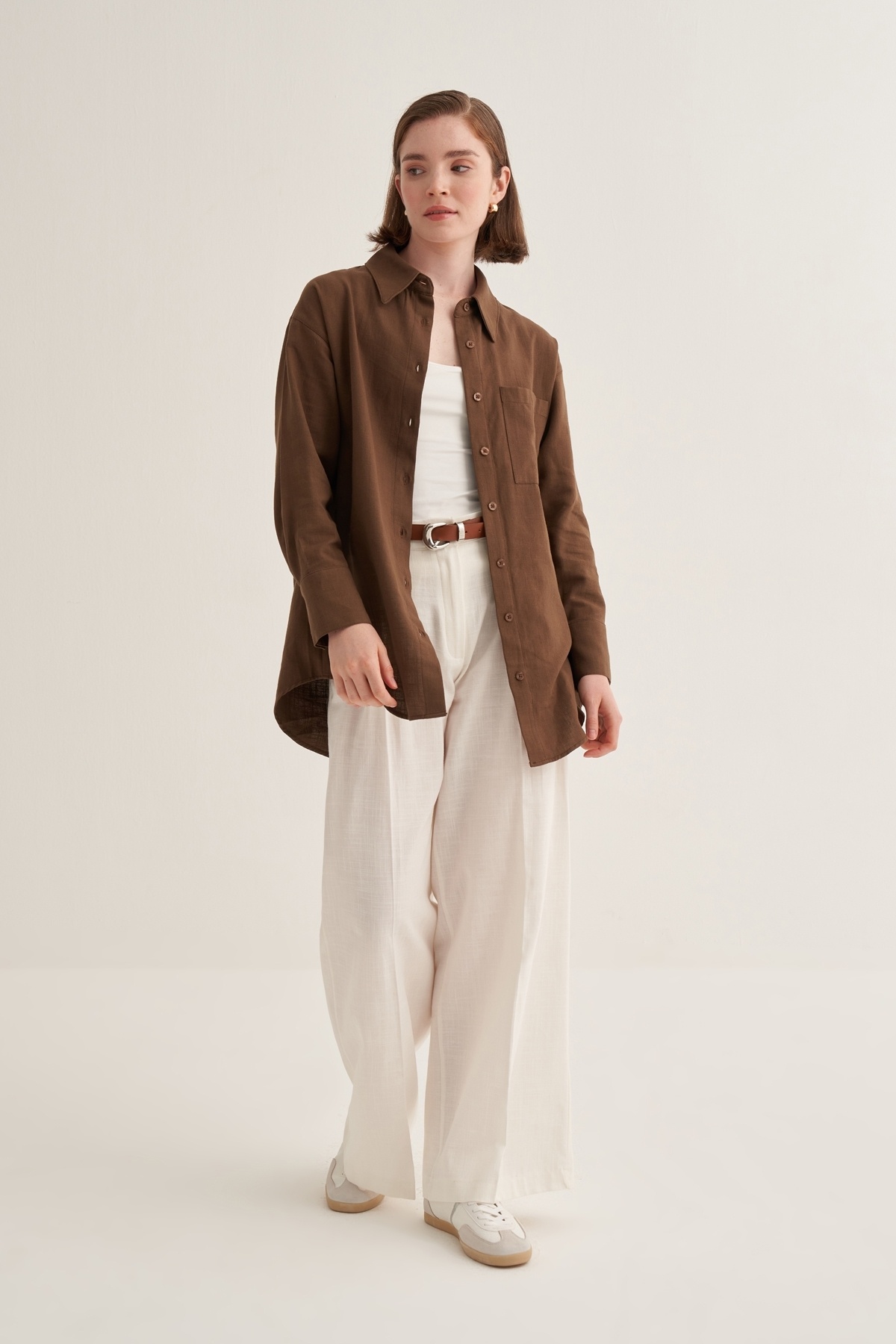 Kadın Organik Pamuk Oversize Gömlek Kahve Kadın Organik Pamuk Oversize Gömlek Kahve 25-SMR-ORG-554-EBU-BRZ L/XL