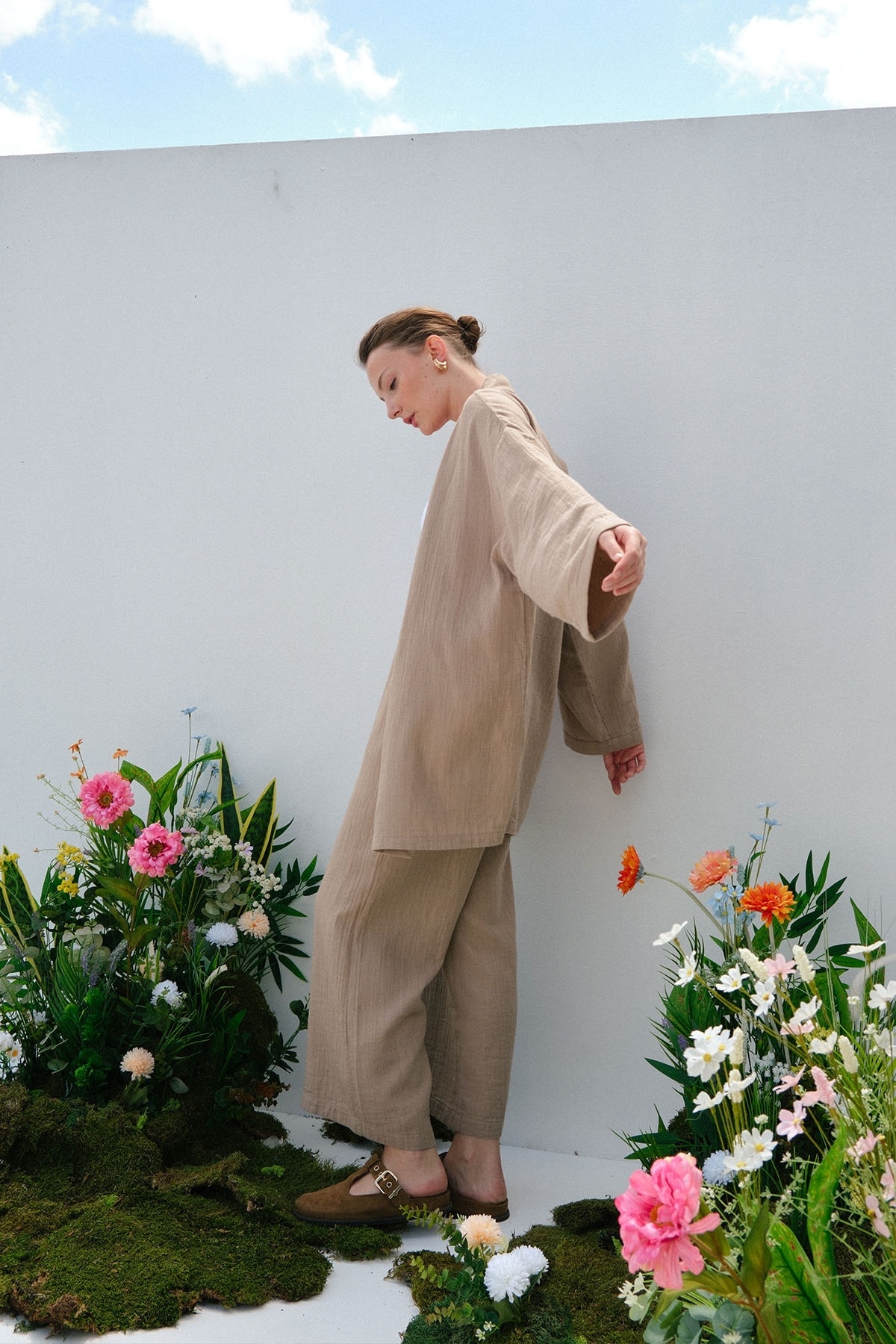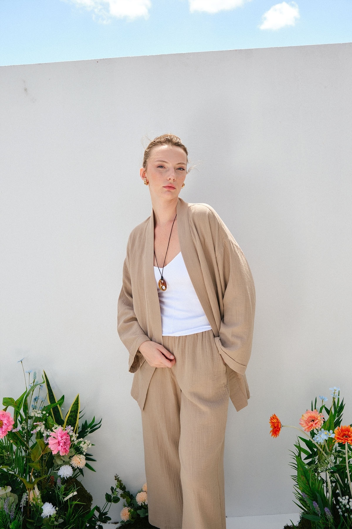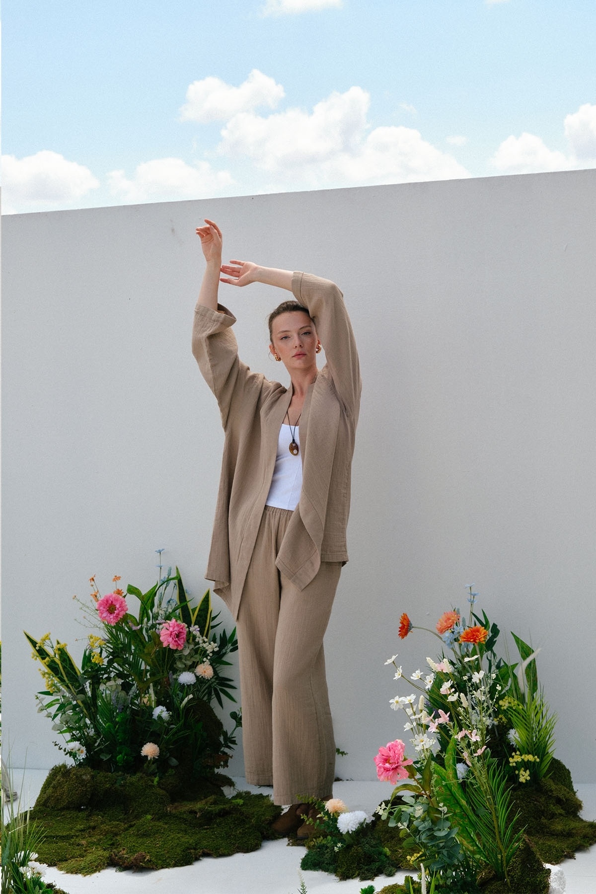 Kadın Müslin Kimono Takım Vizon Kadın Müslin Kimono Takım Vizon 25-SMR-MSLN-513-EBU-BRZ L/XL
