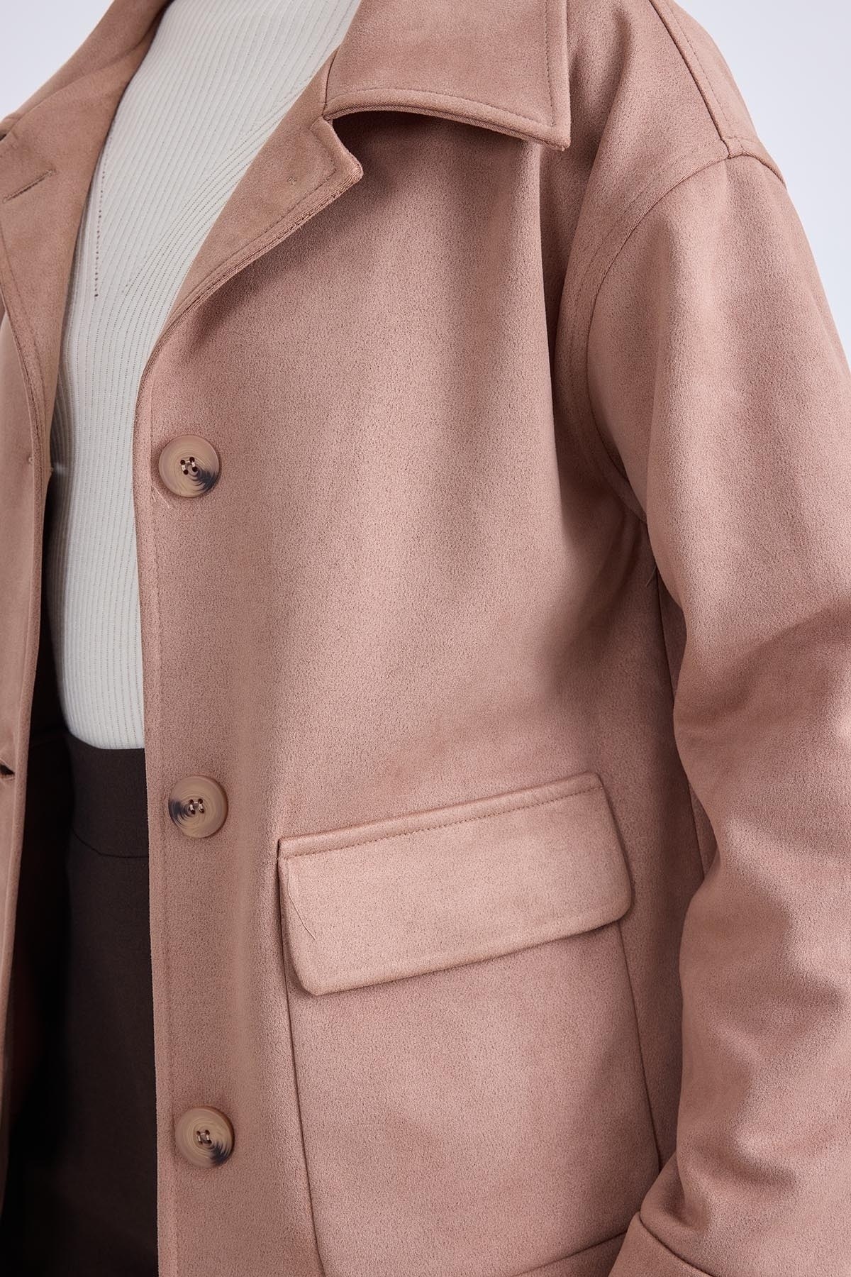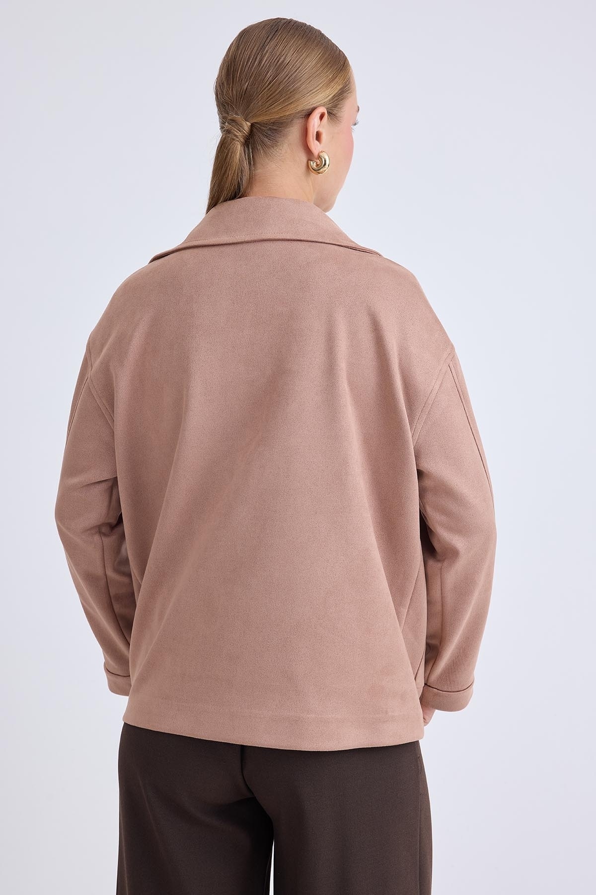 Düşük Omuz Kapak Cepli Süet Ceket Düşük Omuz Kapak Cepli Süet Ceket 25-873 L