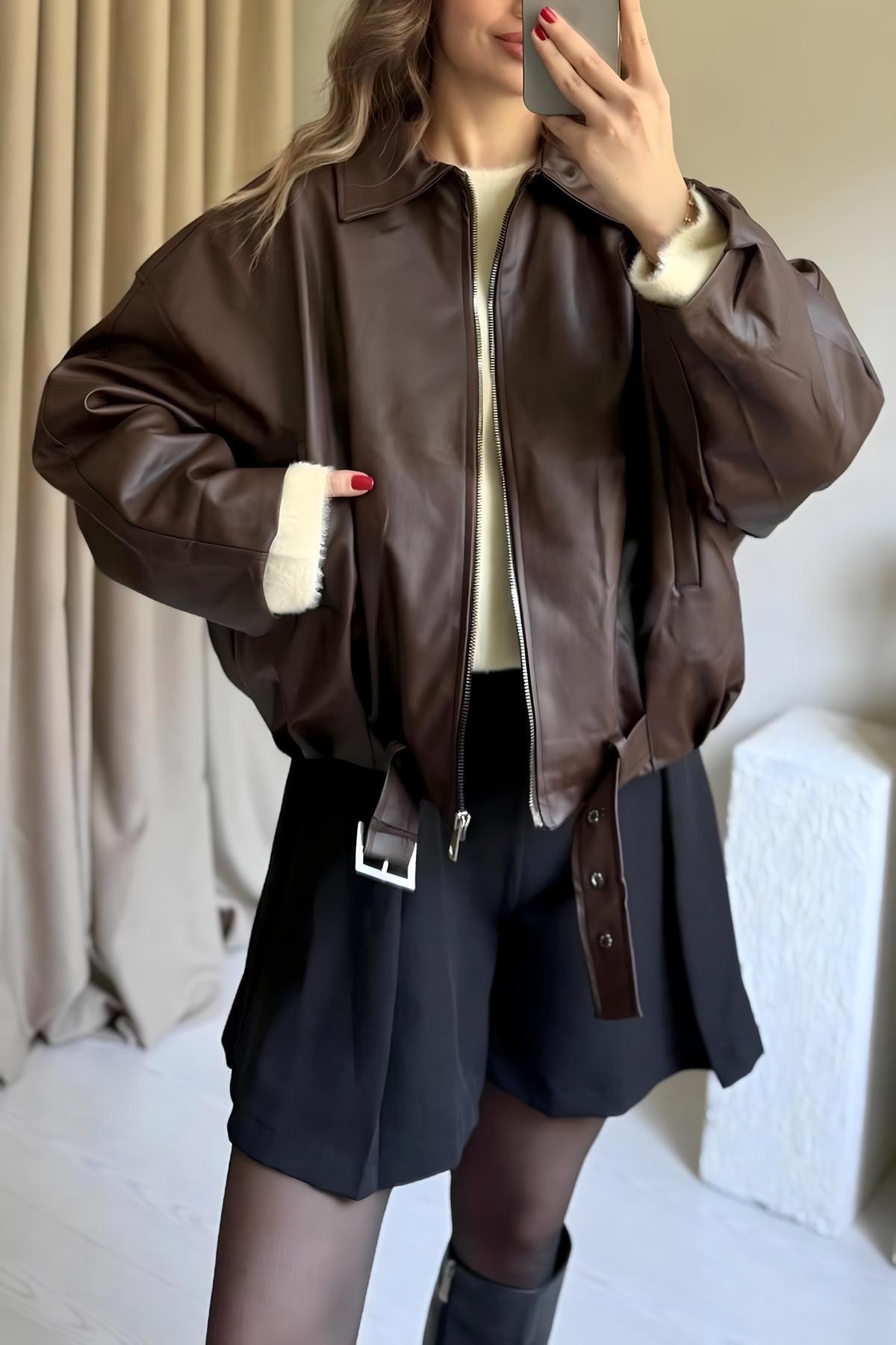 Bomber Kemerli ZR Deri Ceket Bomber Kemerli ZR Deri Ceket Yerdeks-Kemerlii-5 L