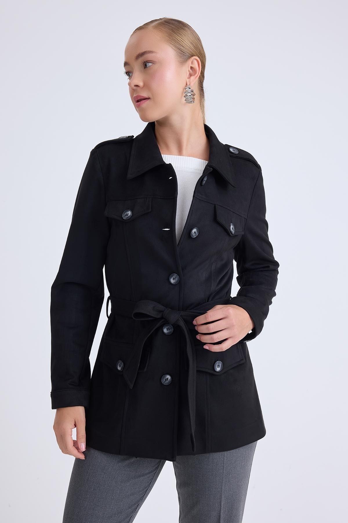 Düşük Omuz Kapak Cepli Süet Ceket Düşük Omuz Kapak Cepli Süet Ceket 25-873 L