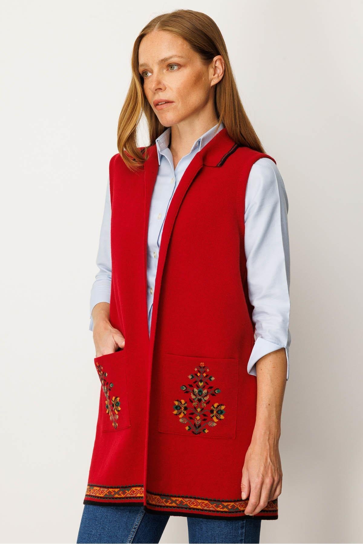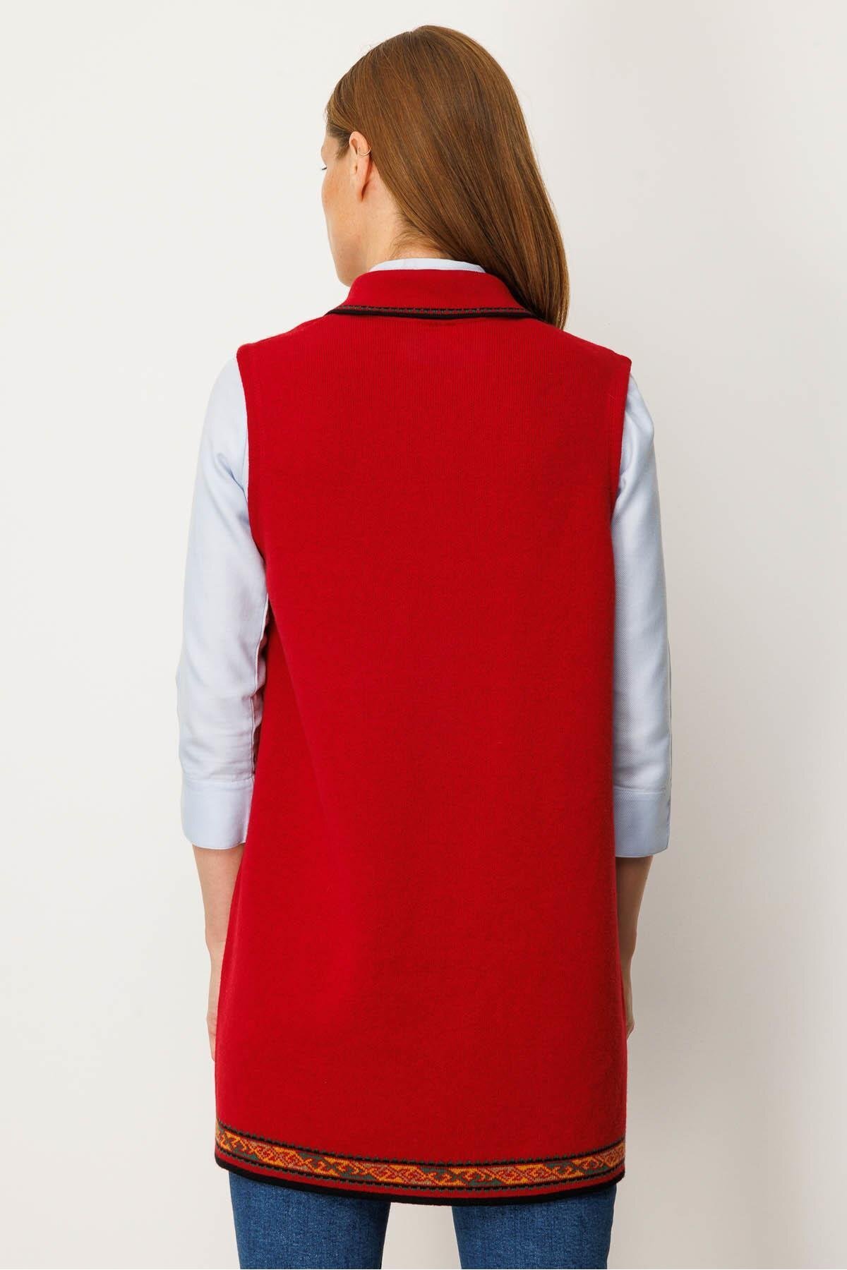 Kadın Polo Yaka Etek Ucu Kilim Desenli Uzun Yün Yelek K.Kırmızı Kadın Polo Yaka Etek Ucu Kilim Desenli Uzun Yün Yelek K.Kırmızı 25055 XL