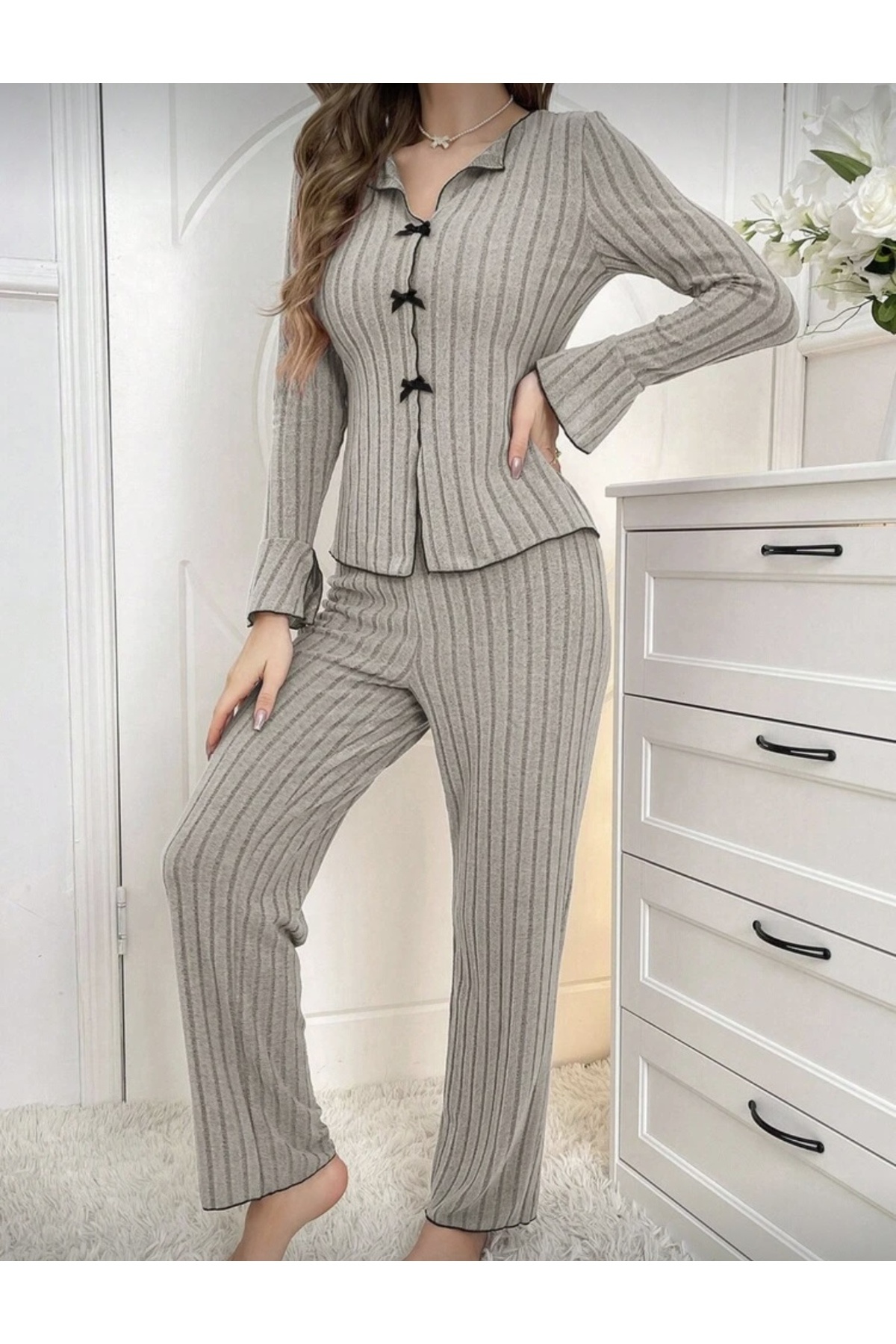 Kadın Fitilli Ev Giyim Takımı Pijama Takımı Kadın Fitilli Ev Giyim Takımı Pijama Takımı LV102 XL