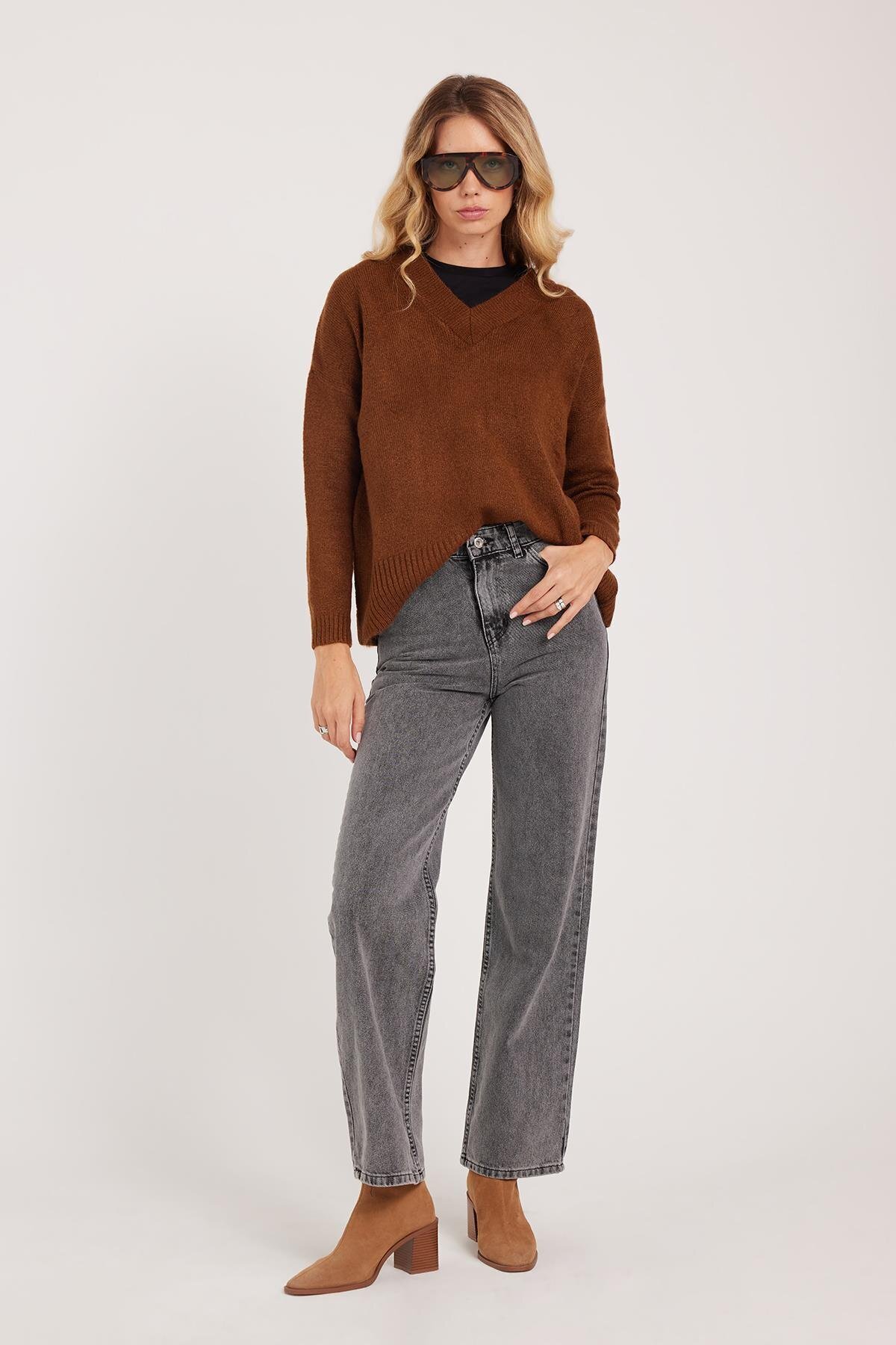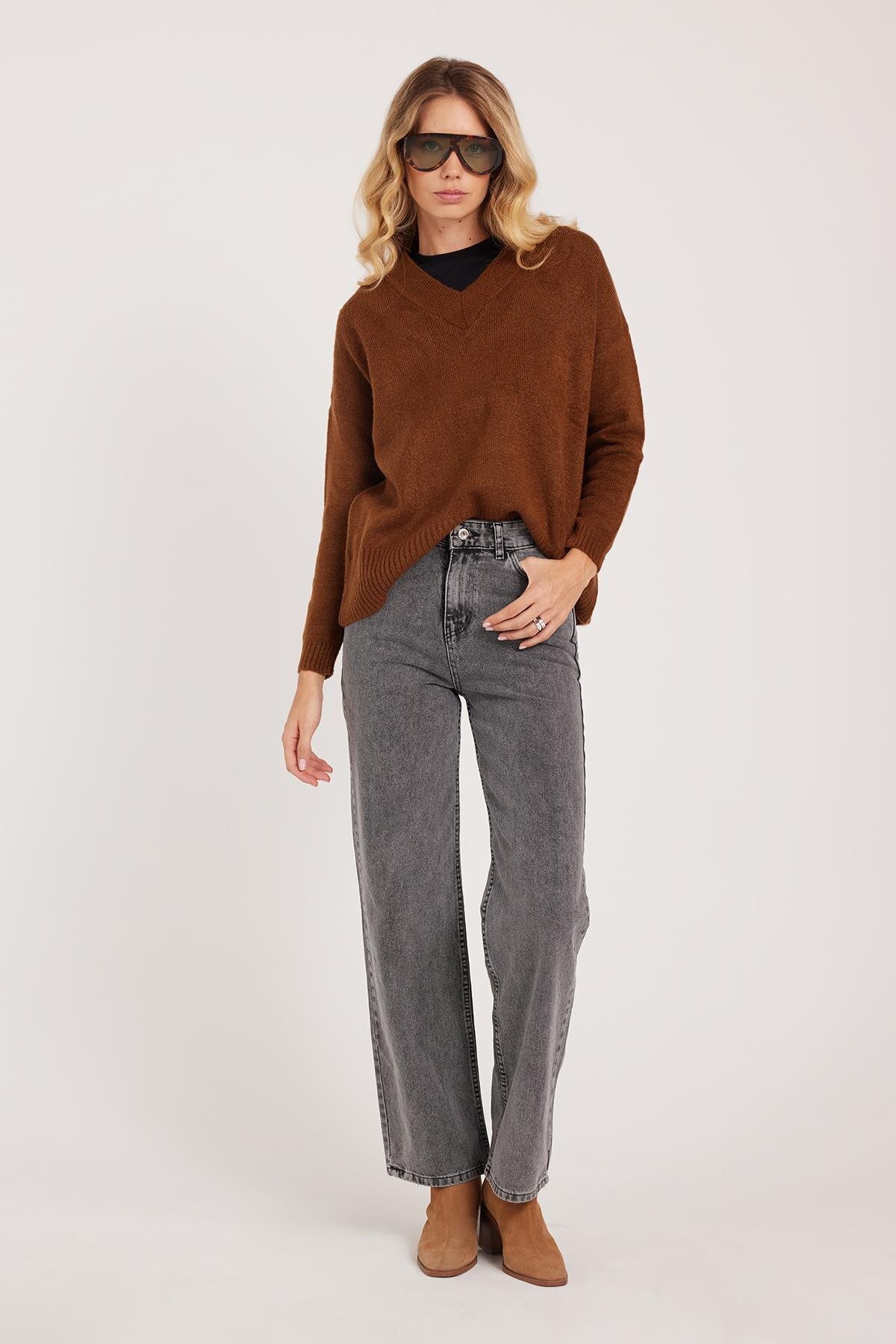 Kadın Regular Fit Klasik Kesim Pamuklu Bol Paça Antrasit Jean Pantolon Kadın Regular Fit Klasik Kesim Pamuklu Bol Paça Antrasit Jean Pantolon PN250039-7004 44