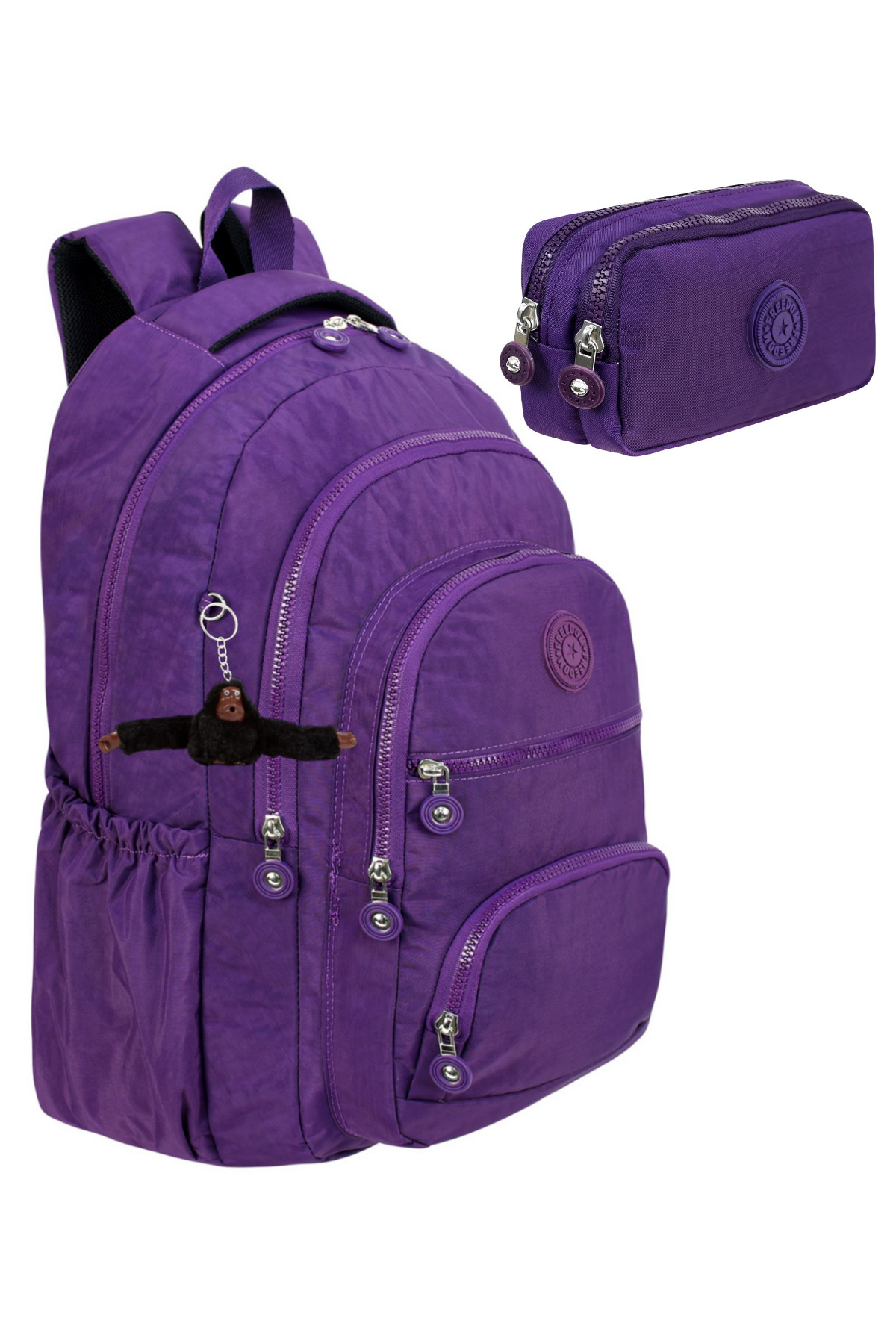 2'li Set Lüx Krinkıl Kumaş Lise ve Ortaokul Sırt Çantası + Kalemlik, Maymun Anahtarlık Hediyeli 2'li Set Lüx Krinkıl Kumaş Lise ve Ortaokul Sırt Çantası + Kalemlik, Maymun Anahtarlık Hediyeli FREEDOM2406-CANTA-KALEMLİK تک سایز