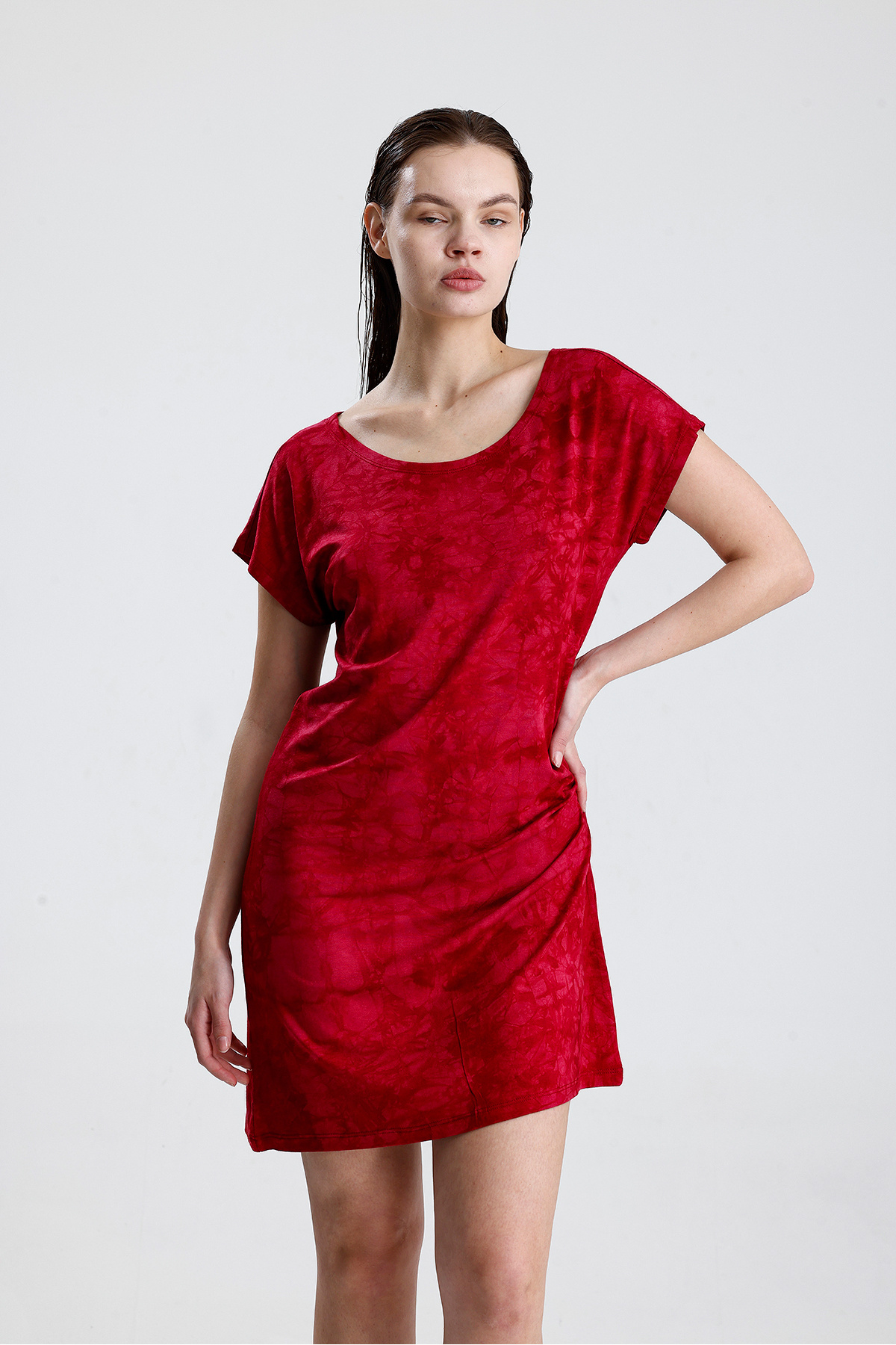 Likralı Viskon Mini Viskon Elbise | BLZ36387 Bordo Batik Likralı Viskon Mini Viskon Elbise | BLZ36387 Bordo Batik 50