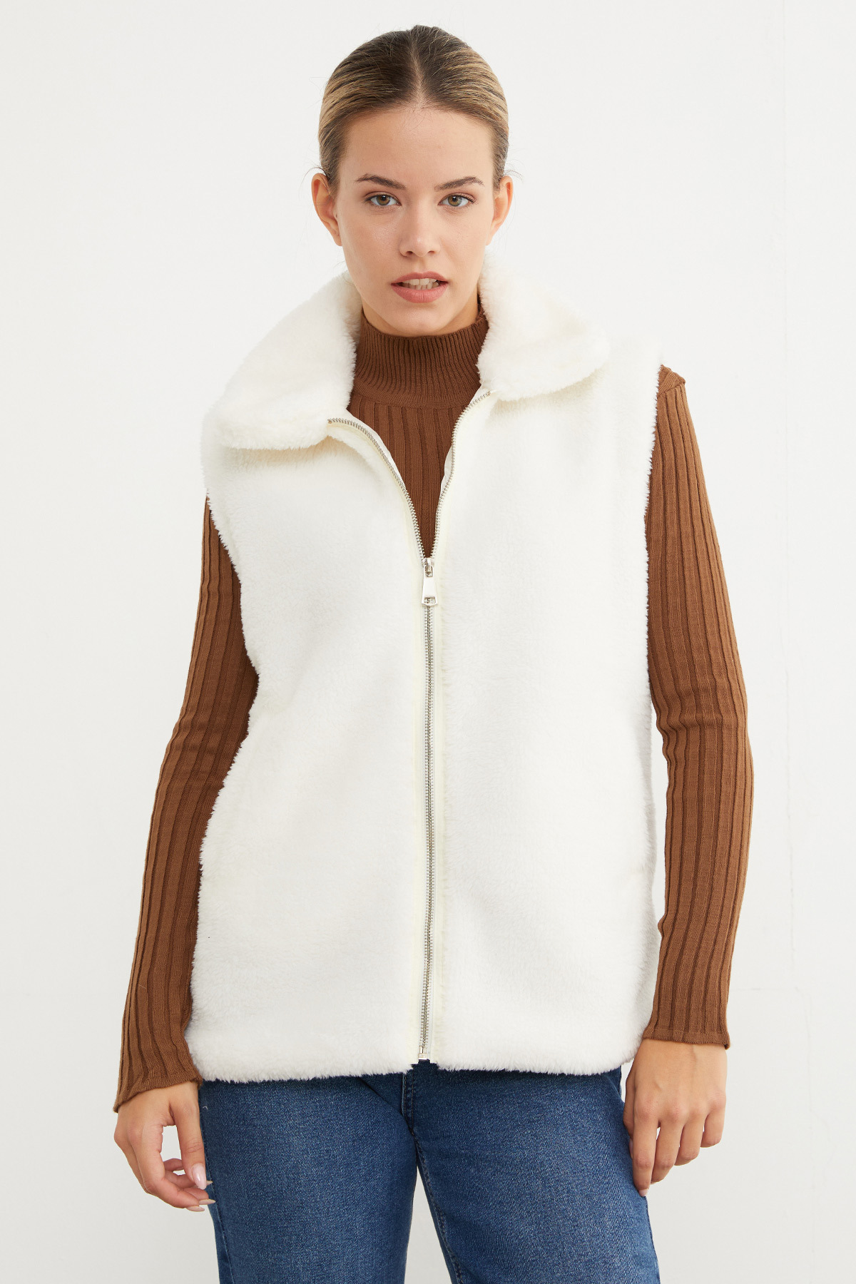 Polo Yaka Fermuarlı Pelüş Yelek Polo Yaka Fermuarlı Pelüş Yelek 26KGB1499129920 XL