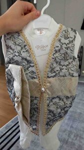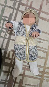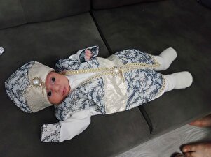 Erkek Bebek Şık Mevlütlük ve Sünnetlik Tulum ve Şapka Seti – Altın İşlemeli Erkek Bebek Şık Mevlütlük ve Sünnetlik Tulum ve Şapka Seti – Altın İşlemeli pnpn0515 6-9 AY