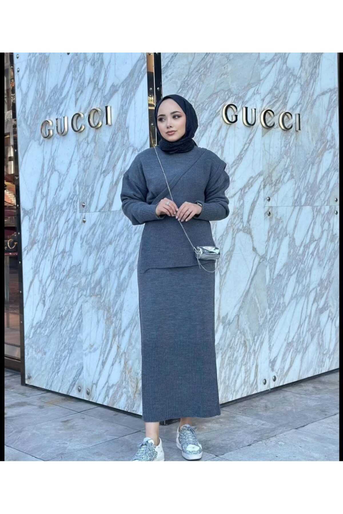 Etna Jileli Ceketli Takım Gri Etna Jileli Ceketli Takım Gri 25230 تک سایز
