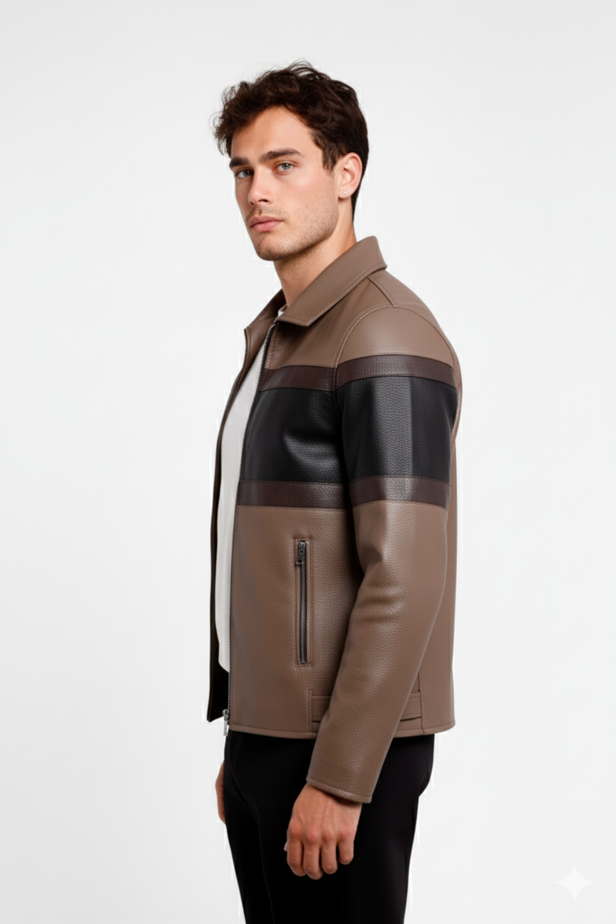 Erkek Şerit Detaylı Iki Yönlü Fermuarlı Klasik Yaka Suni Deri Ceket Mont Erkek Şerit Detaylı Iki Yönlü Fermuarlı Klasik Yaka Suni Deri Ceket Mont MFZGDRCKT 2XL