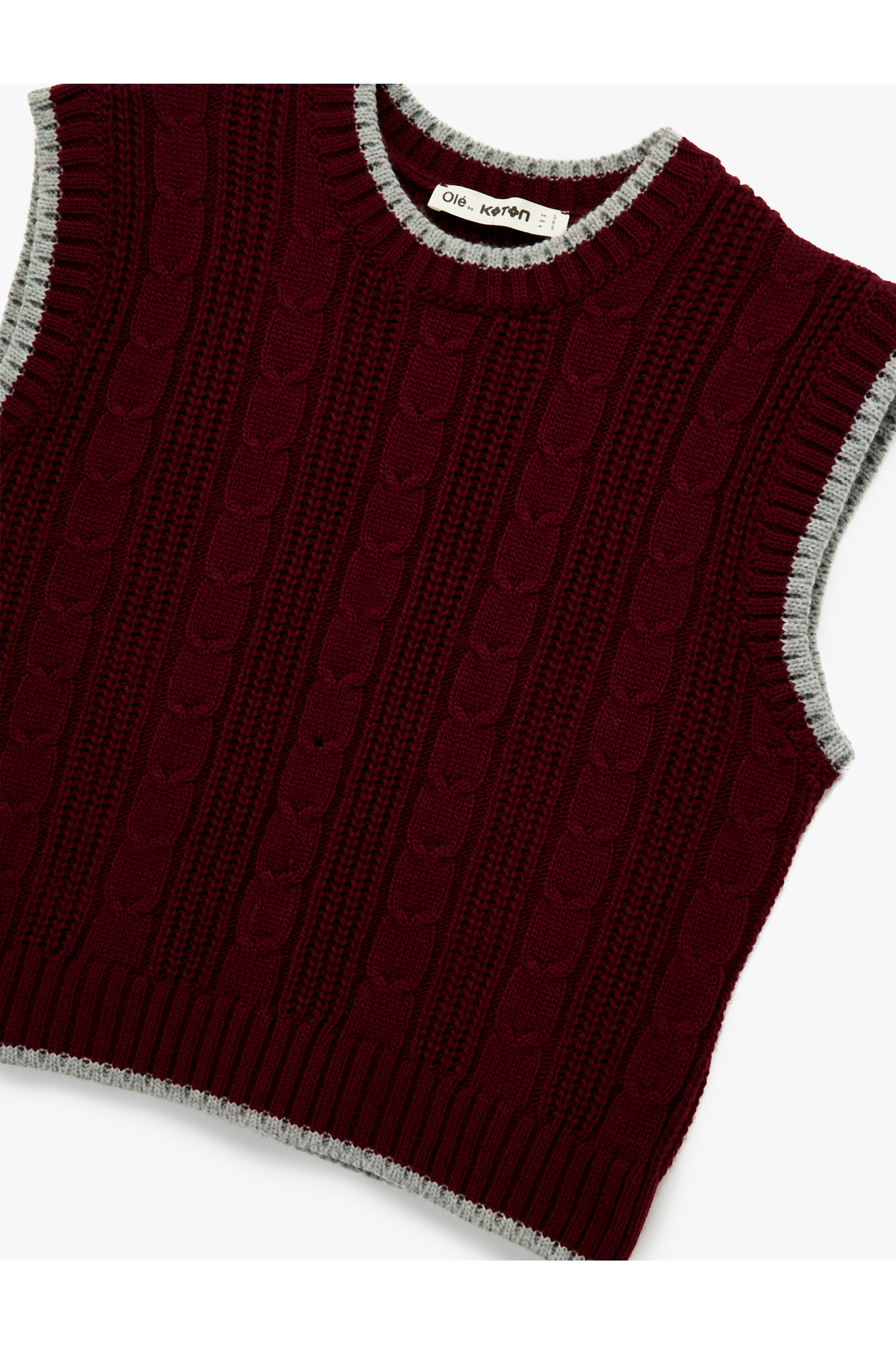 Kolsuz Biyeli Bisiklet Yaka Saç Örgüsü Dokulu Süveter Kolsuz Biyeli Bisiklet Yaka Saç Örgüsü Dokulu Süveter 6WAL20023HT L