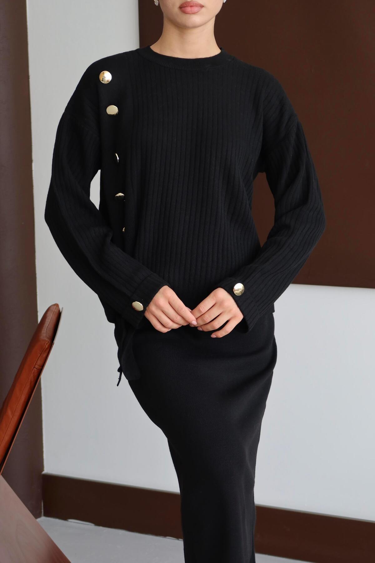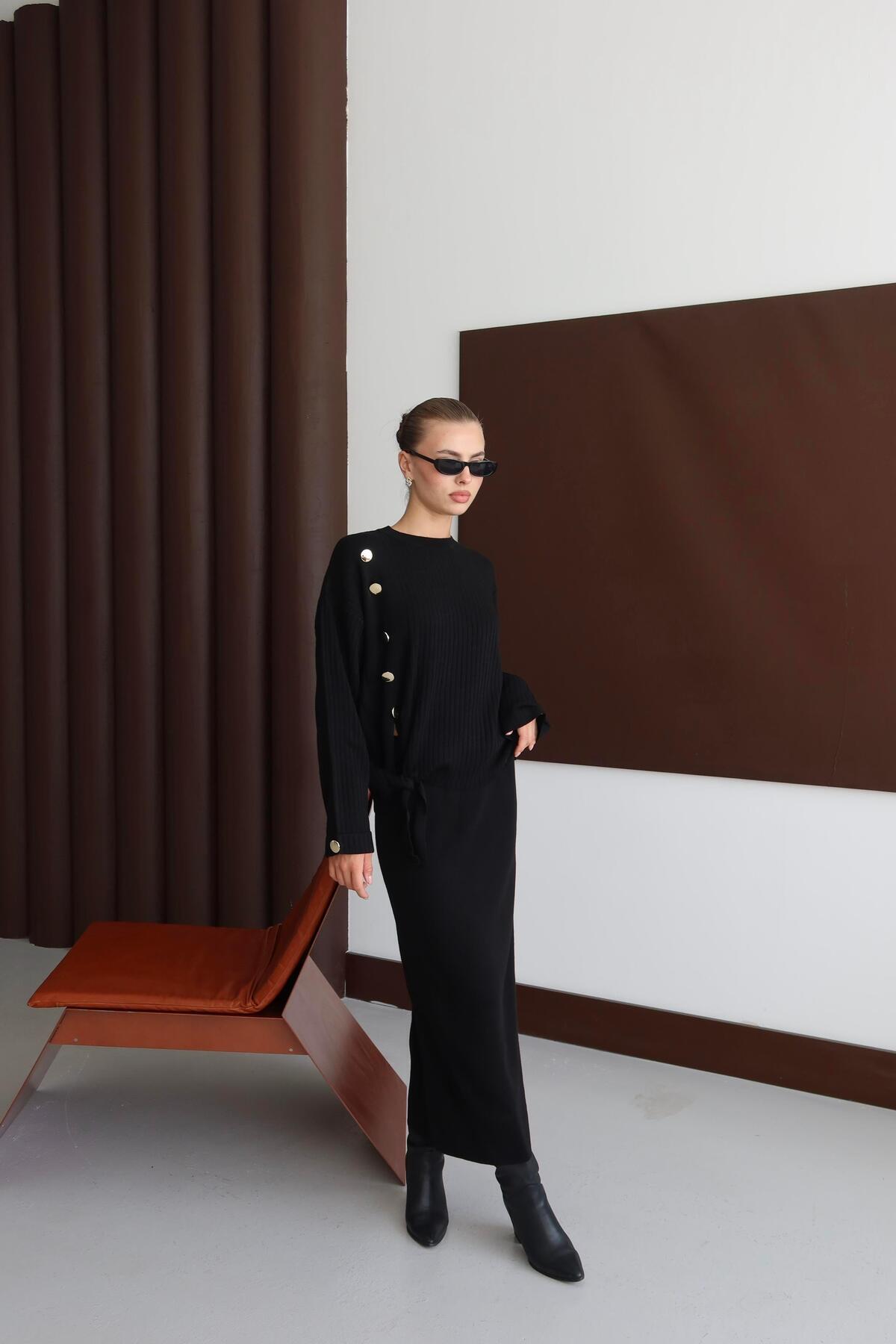 Düğme Detaylı Triko Etek Takım Düğme Detaylı Triko Etek Takım 2512 Standart