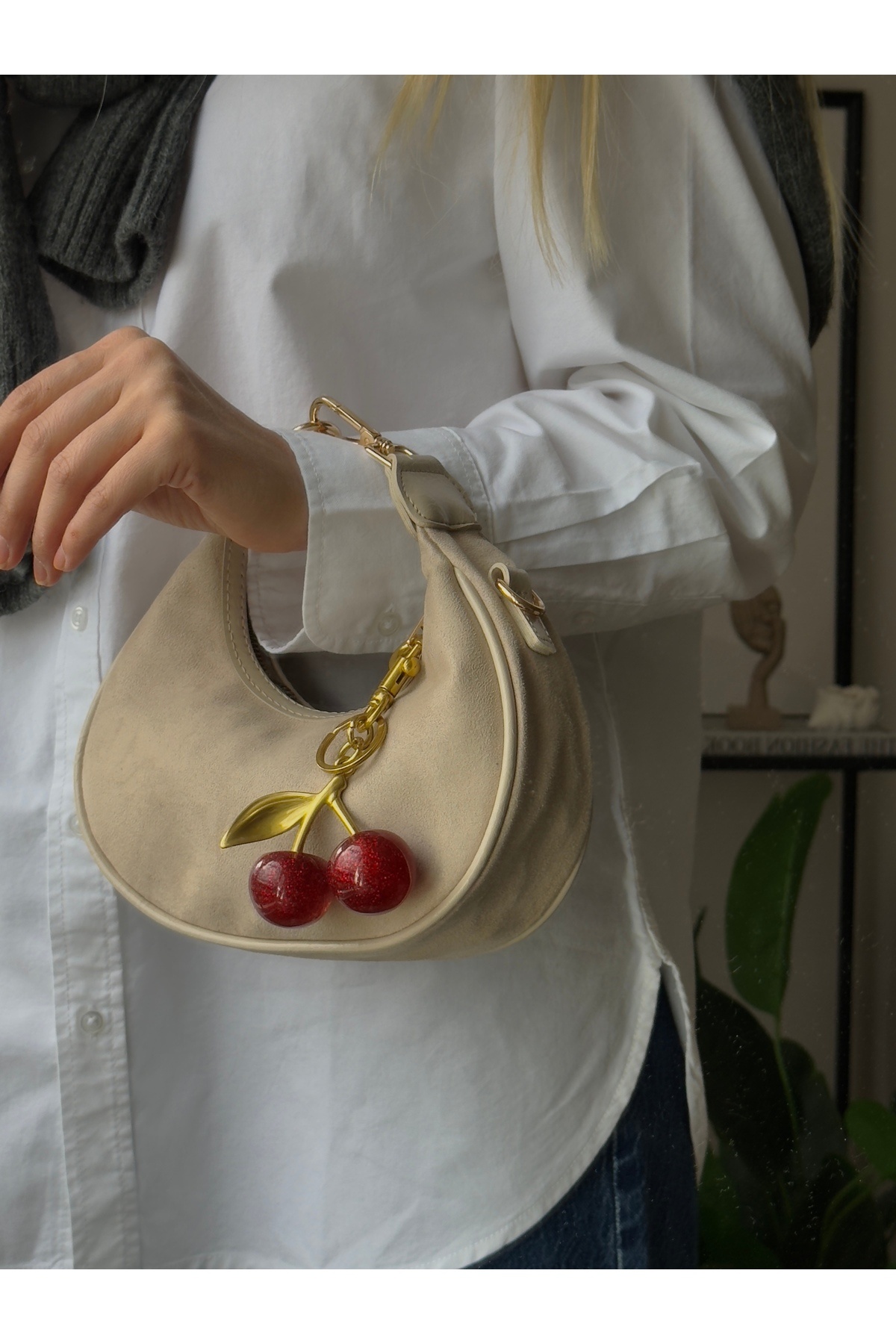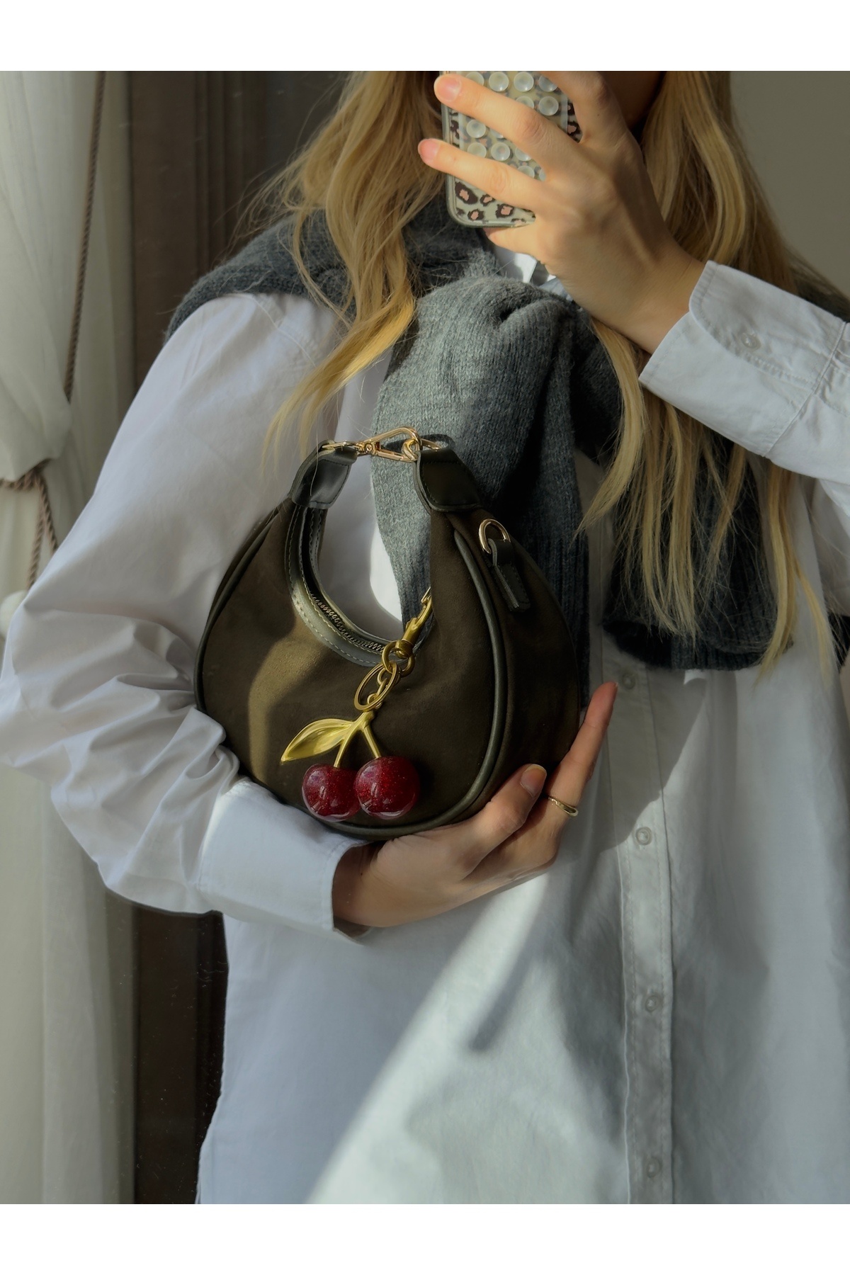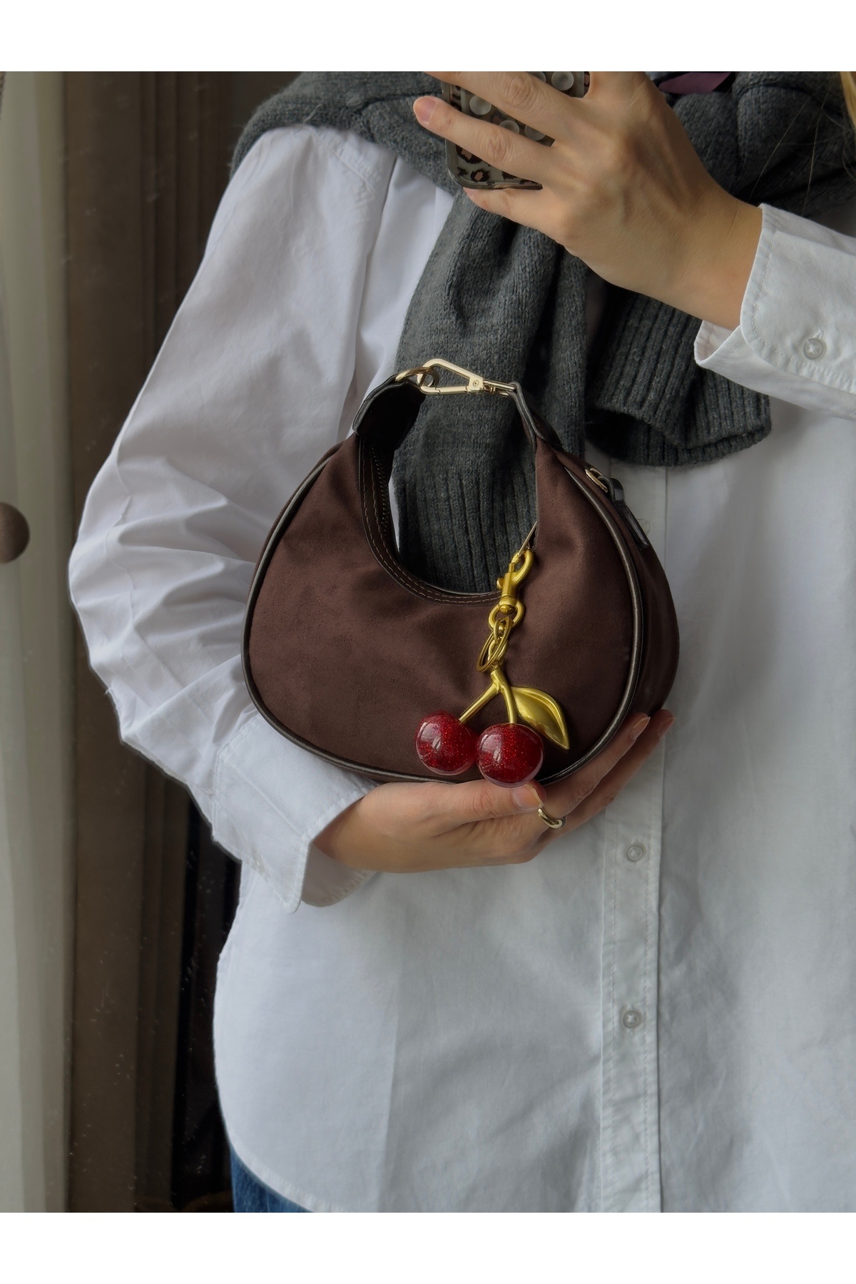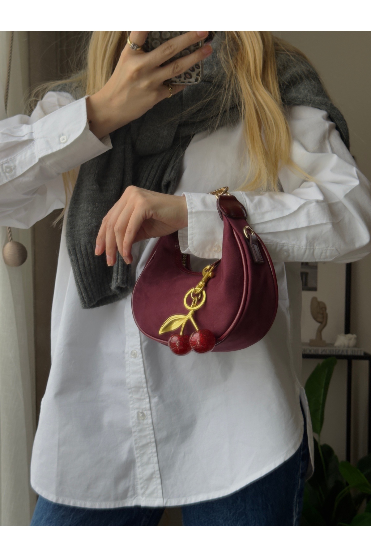 Valeria Kiraz Charm Hediyeli Kadın Süet El ve Omuz Çantası Bordo Valeria Kiraz Charm Hediyeli Kadın Süet El ve Omuz Çantası Bordo valeria12süet Standart
