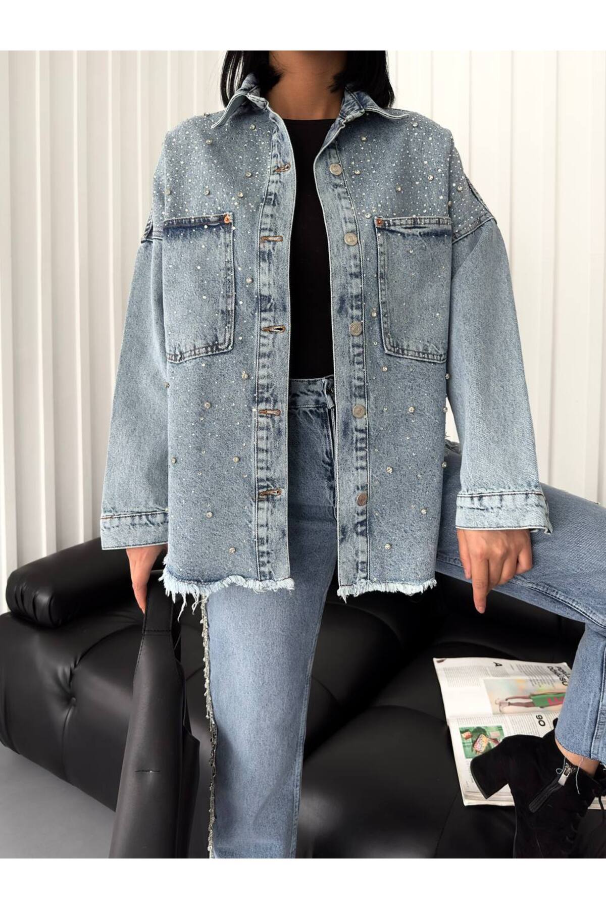 Taşlı Uzun Mavi denim Ceket Taşlı Uzun Mavi denim Ceket 5633 42