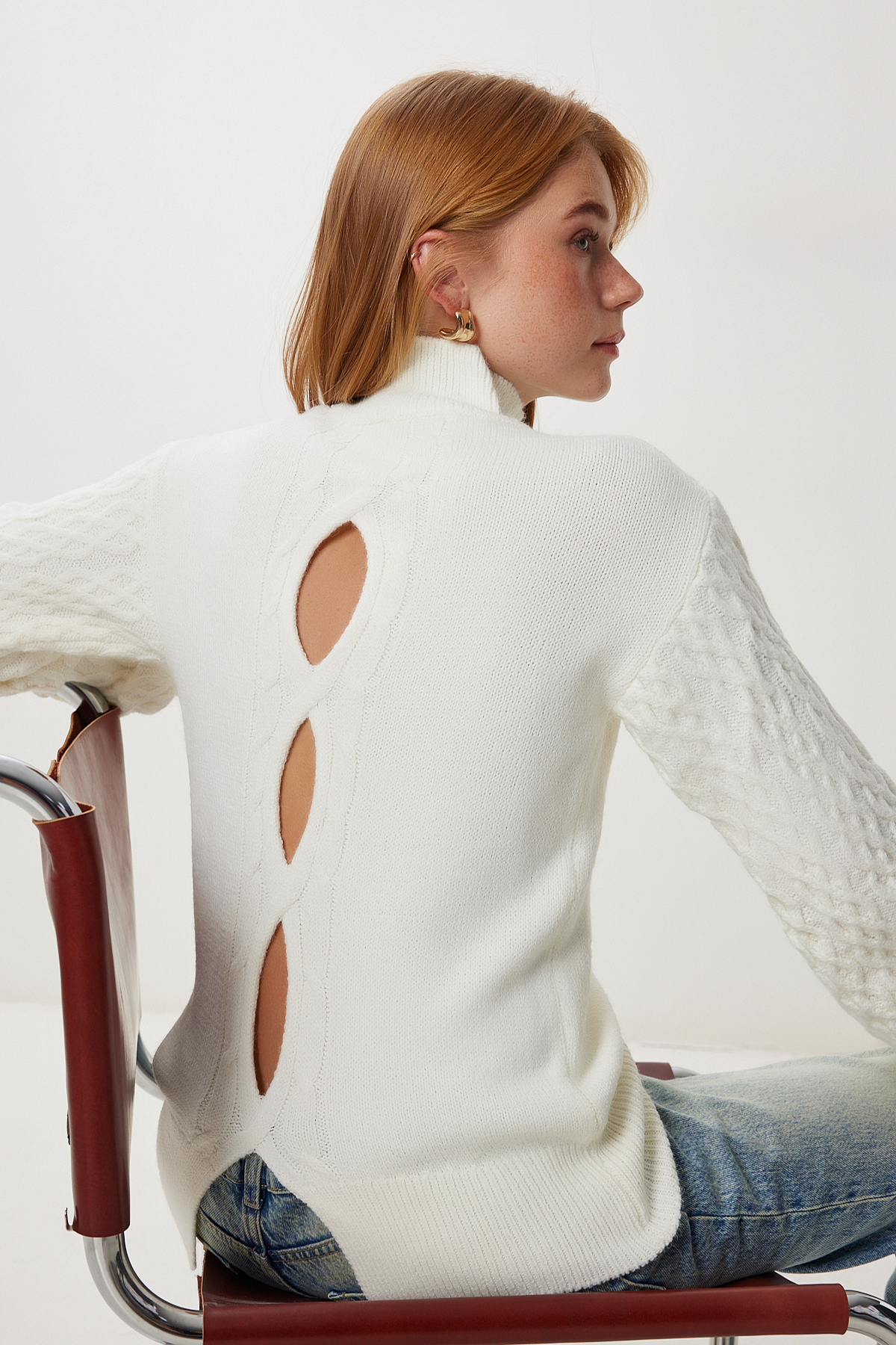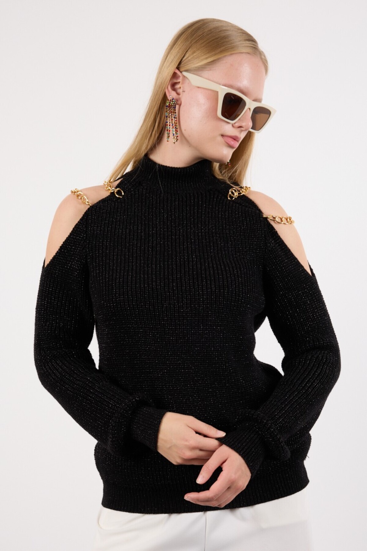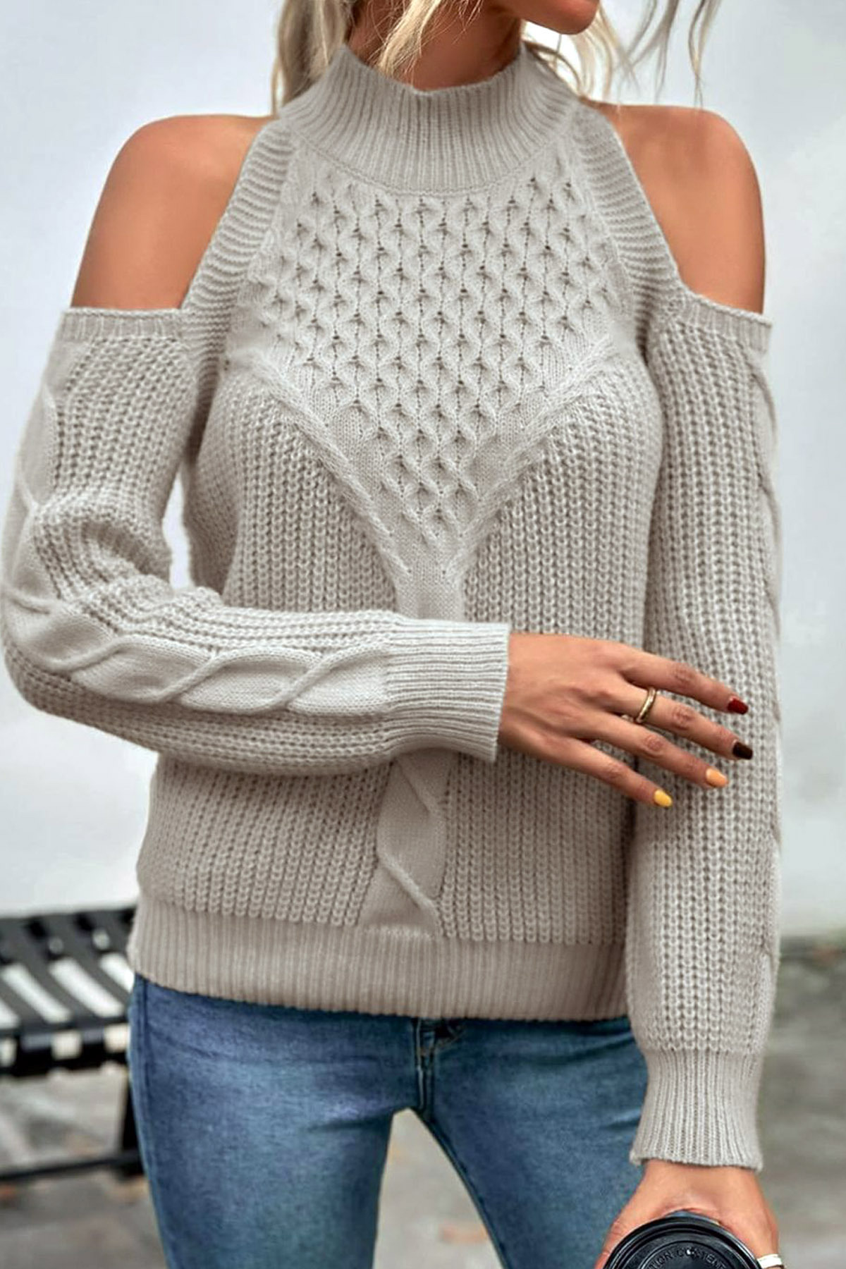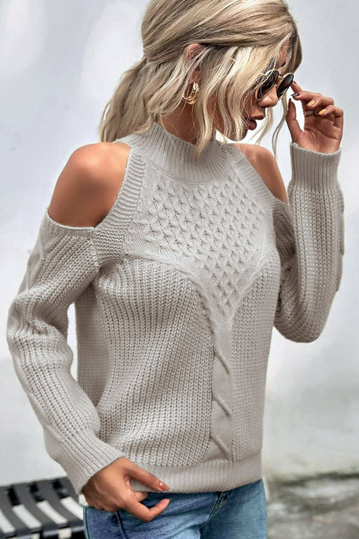 Yarım Boyunlu Omuz Dekolteli uzun Kollu Esnek Saç Örgü Desenli Selanik Casual Kazak Yarım Boyunlu Omuz Dekolteli uzun Kollu Esnek Saç Örgü Desenli Selanik Casual Kazak CLLK-2706 XL