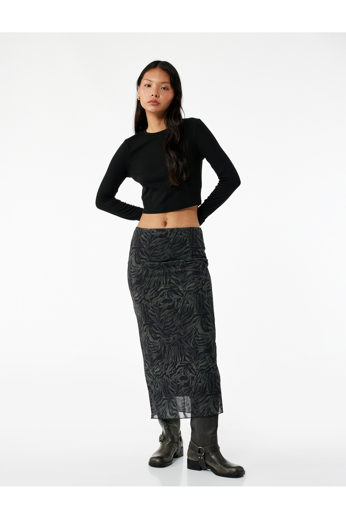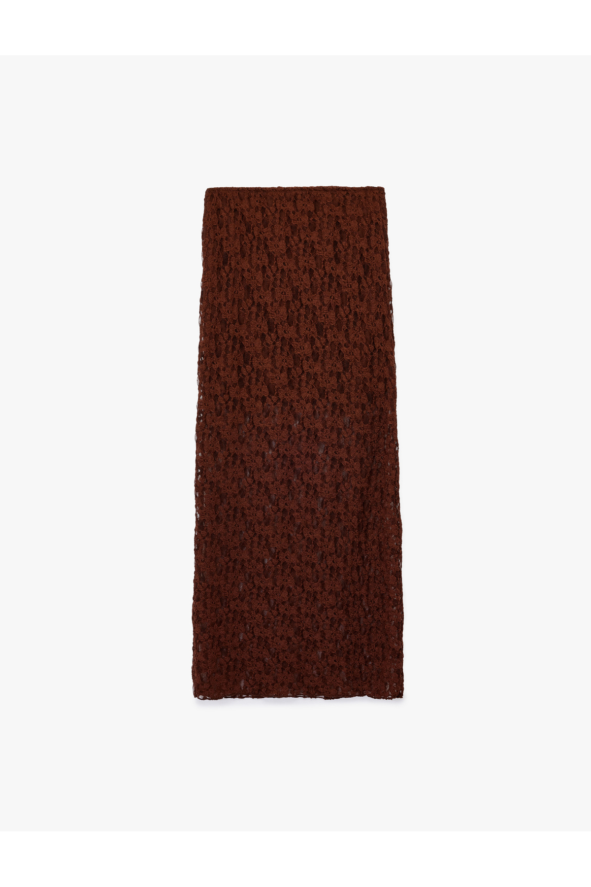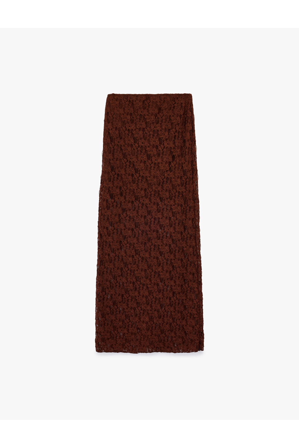 Slim Fit Yüksek Bel Dantel Midi Kalem Etek Slim Fit Yüksek Bel Dantel Midi Kalem Etek 6WAL70007IK 2XL