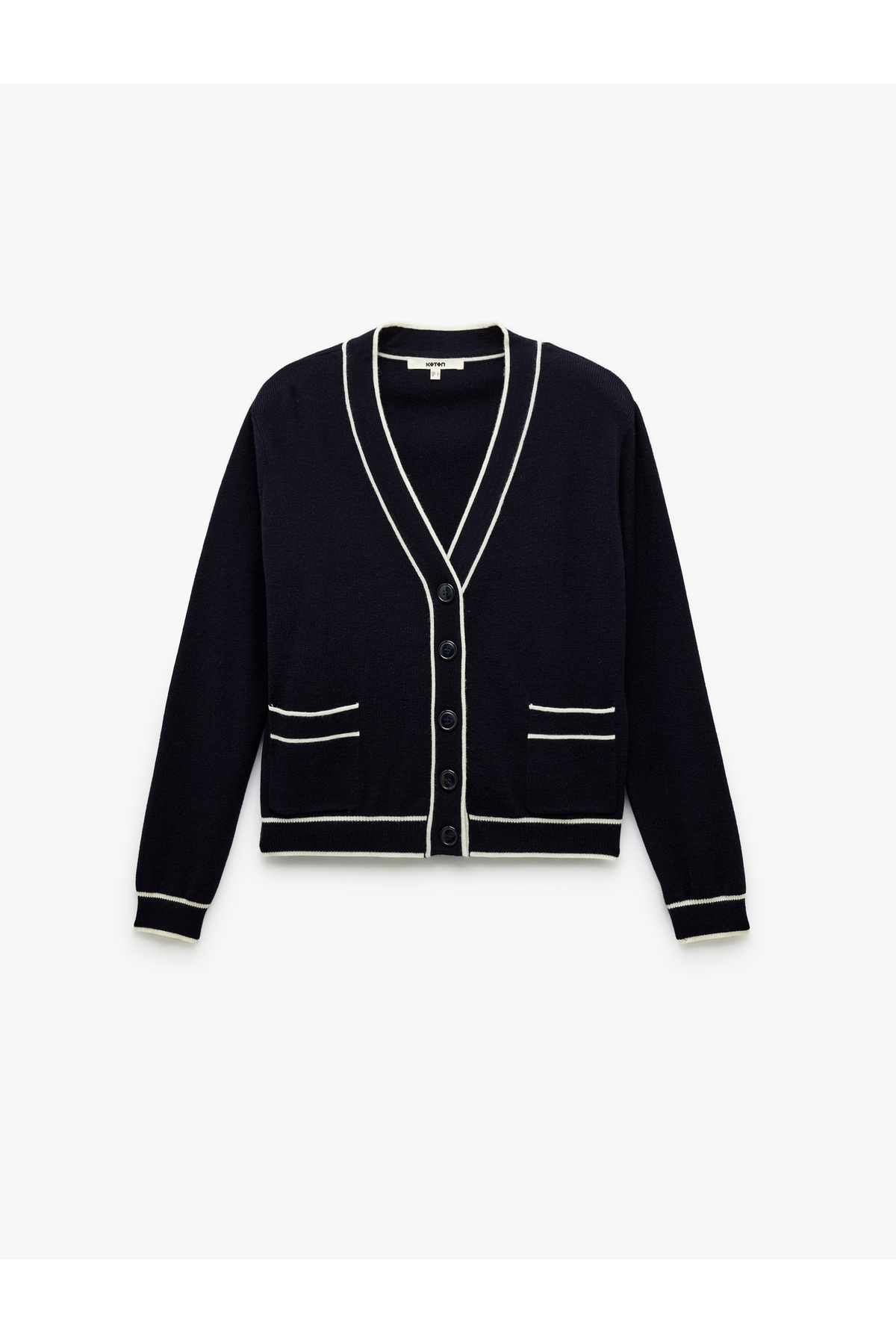 Uzun Kollu Cepli V Yaka Çizgili Triko Hırka Uzun Kollu Cepli V Yaka Çizgili Triko Hırka 6WAK90017HT XL