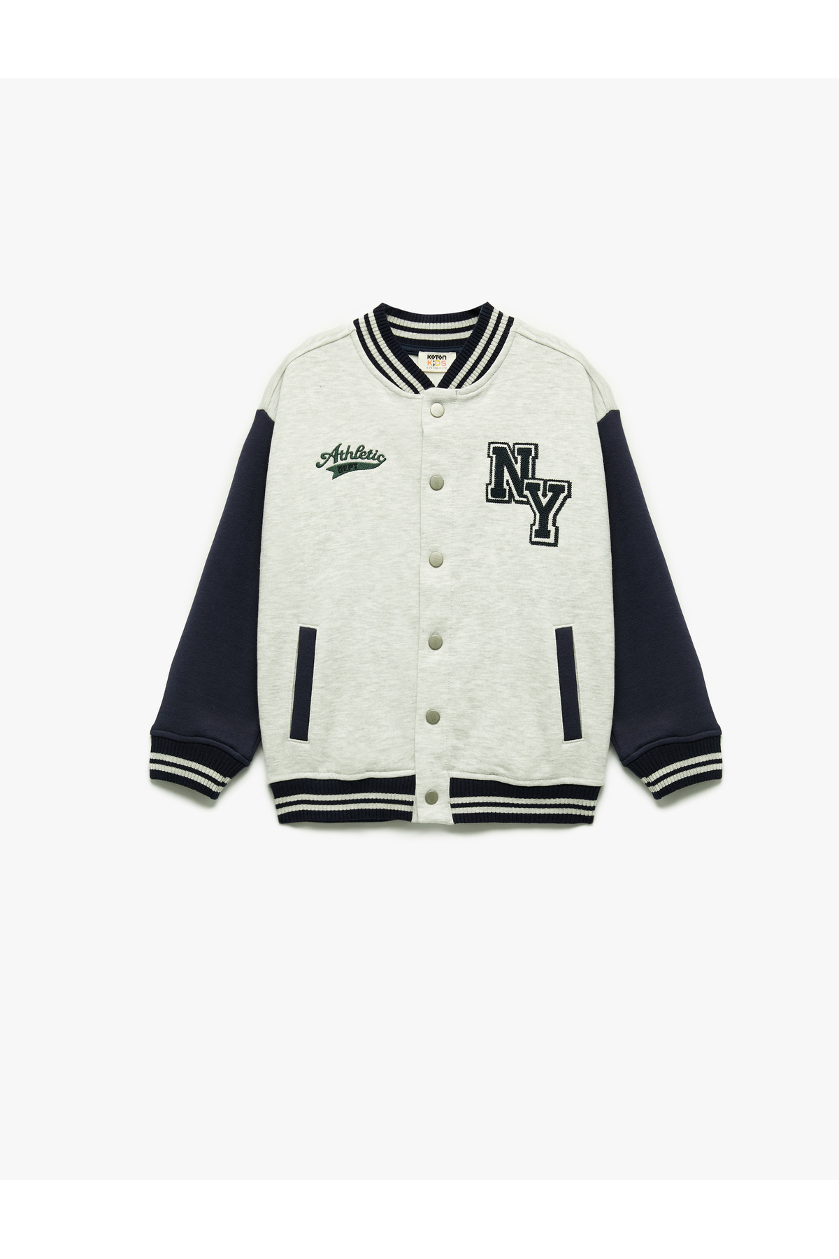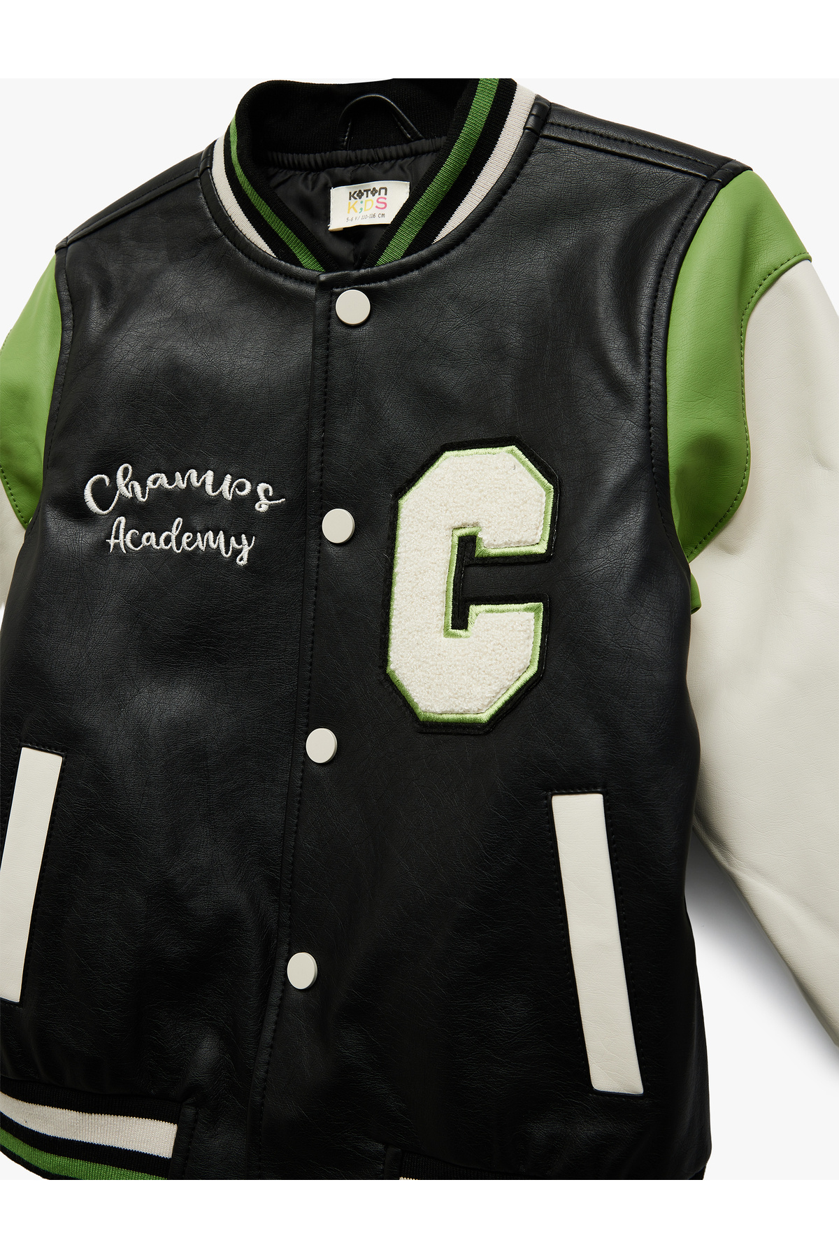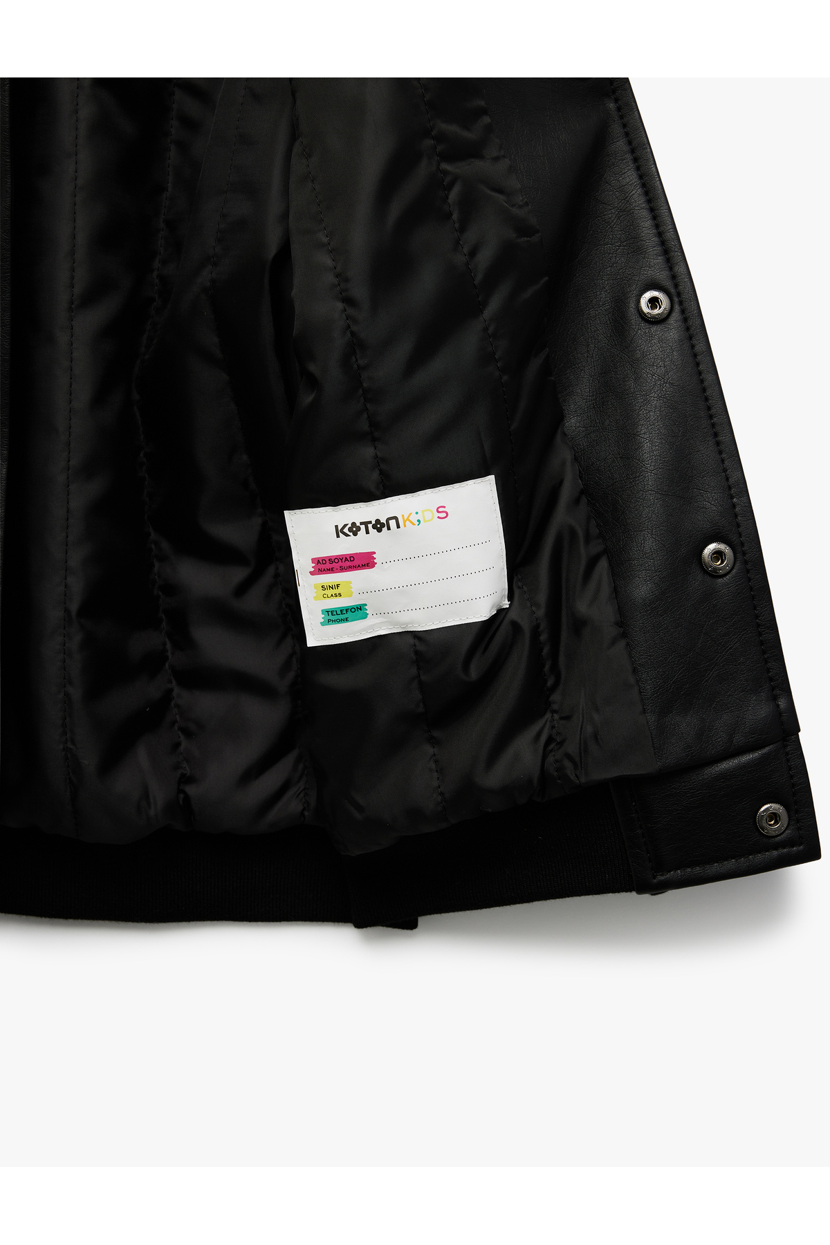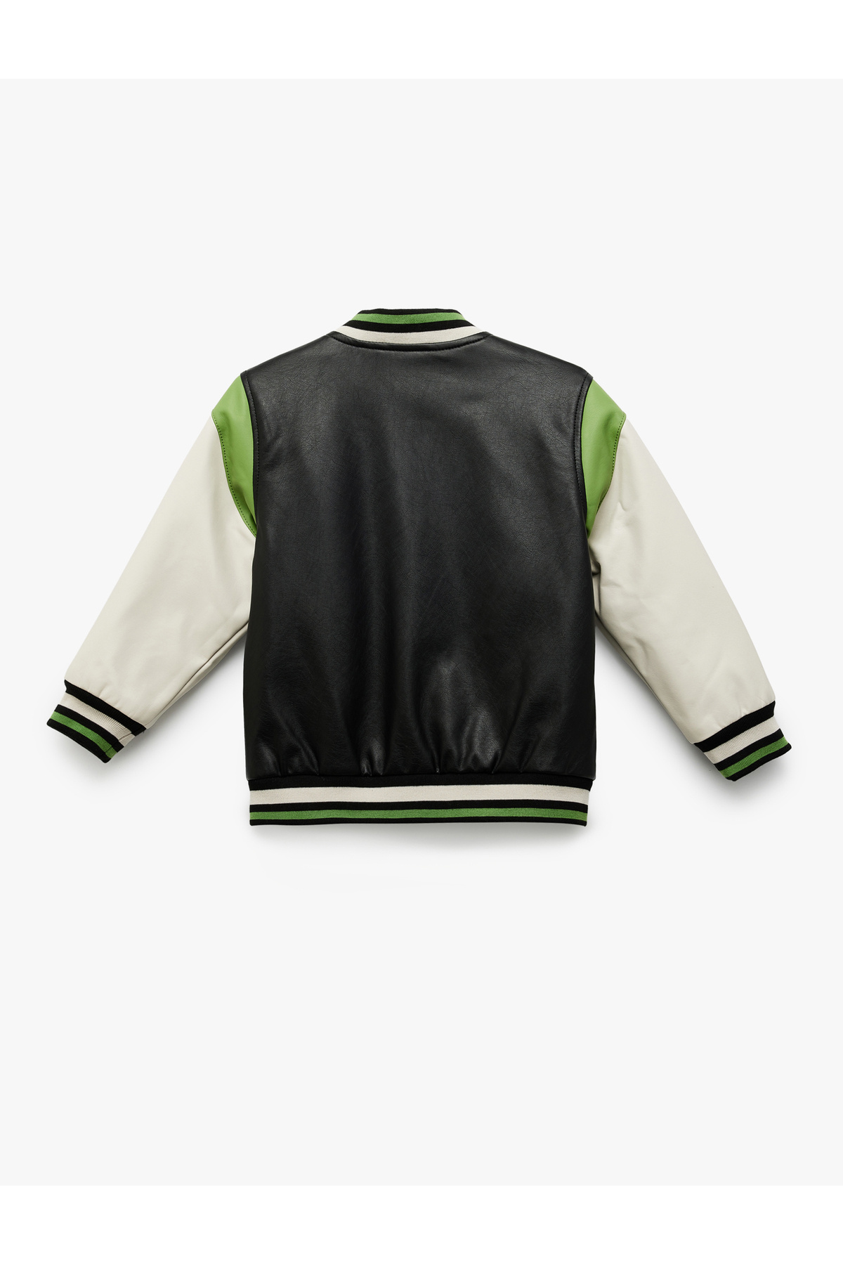 Bomber Kolej Ceket Deri Görünümlü Aplike Detaylı Cepli Bomber Kolej Ceket Deri Görünümlü Aplike Detaylı Cepli 6WKB20008TW 13-14 Yaş