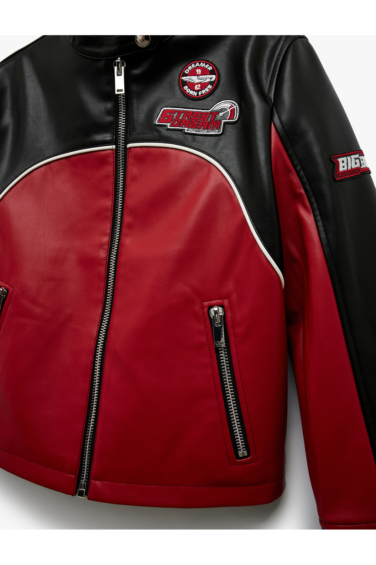 Uzun Kollu Renk Bloklu Cepli Fermuarlı Suni Deri Biker Ceket Uzun Kollu Renk Bloklu Cepli Fermuarlı Suni Deri Biker Ceket 6WAK20017EW 42