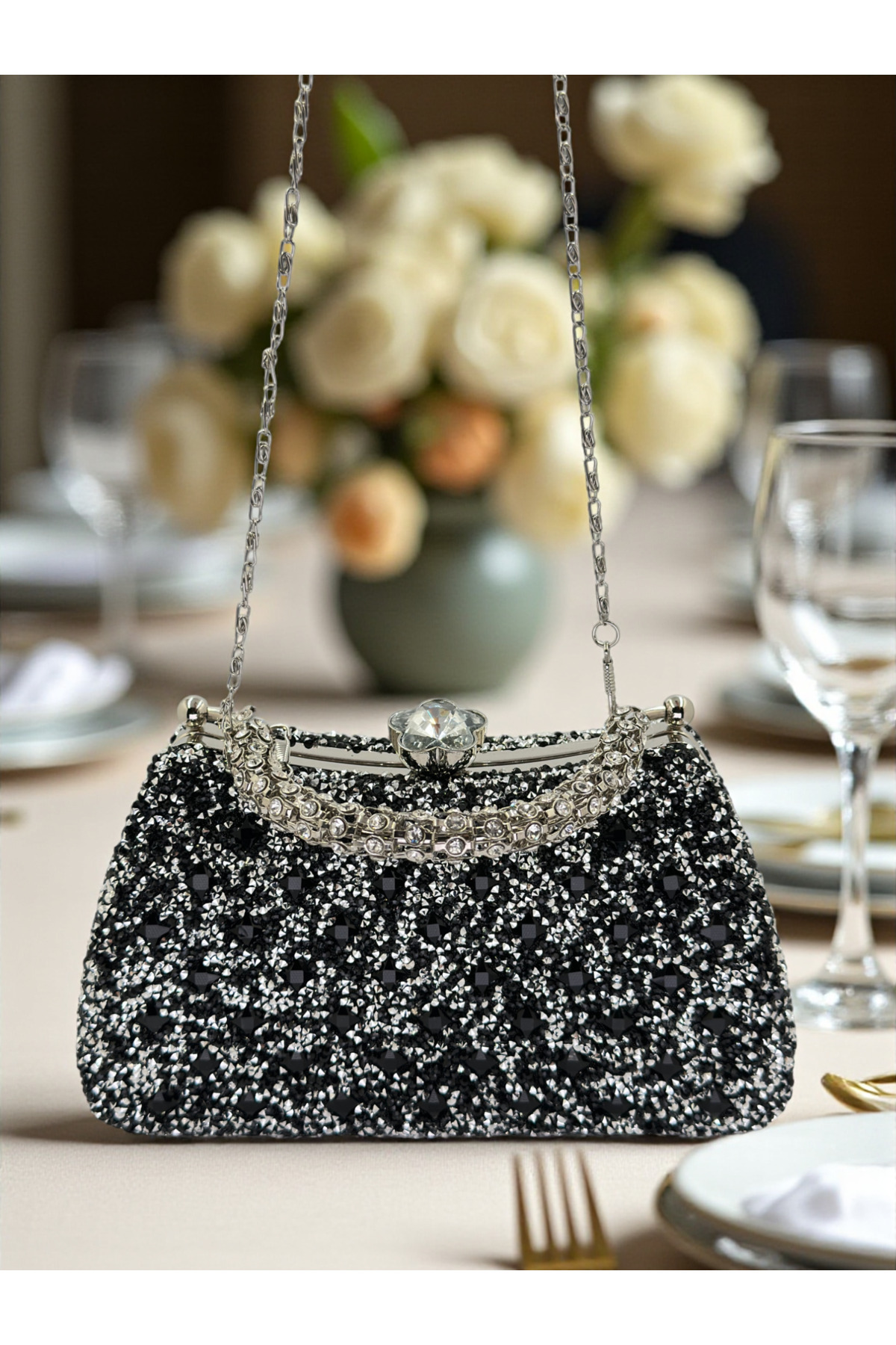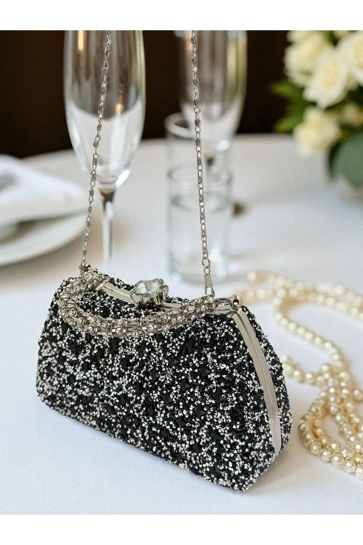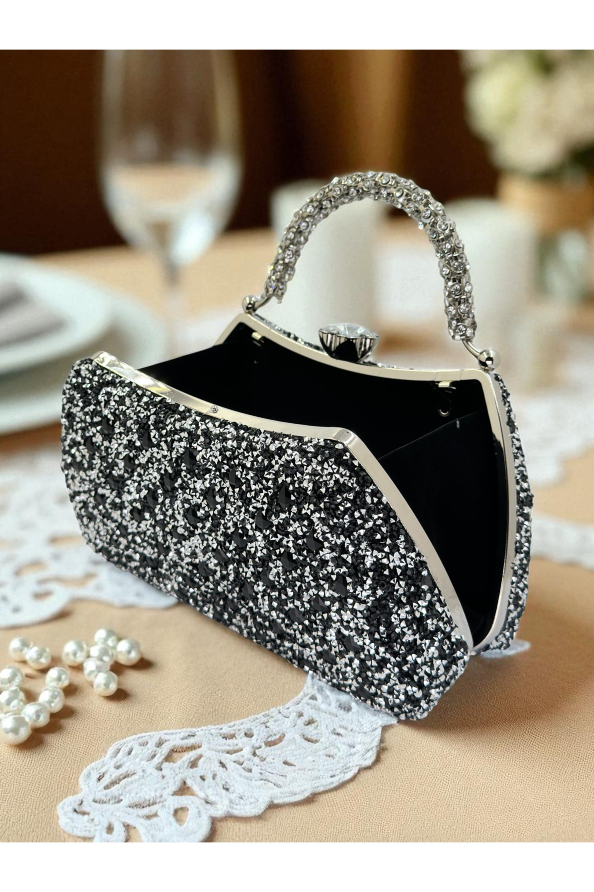 Özel Tasarım Siyah Gümüş Renk Komple Taşlı Kulplu Kadın Abiye Çanta Düğün Nişan Balo Özel Tasarım Siyah Gümüş Renk Komple Taşlı Kulplu Kadın Abiye Çanta Düğün Nişan Balo 220-S Saten Taşlı تک سایز