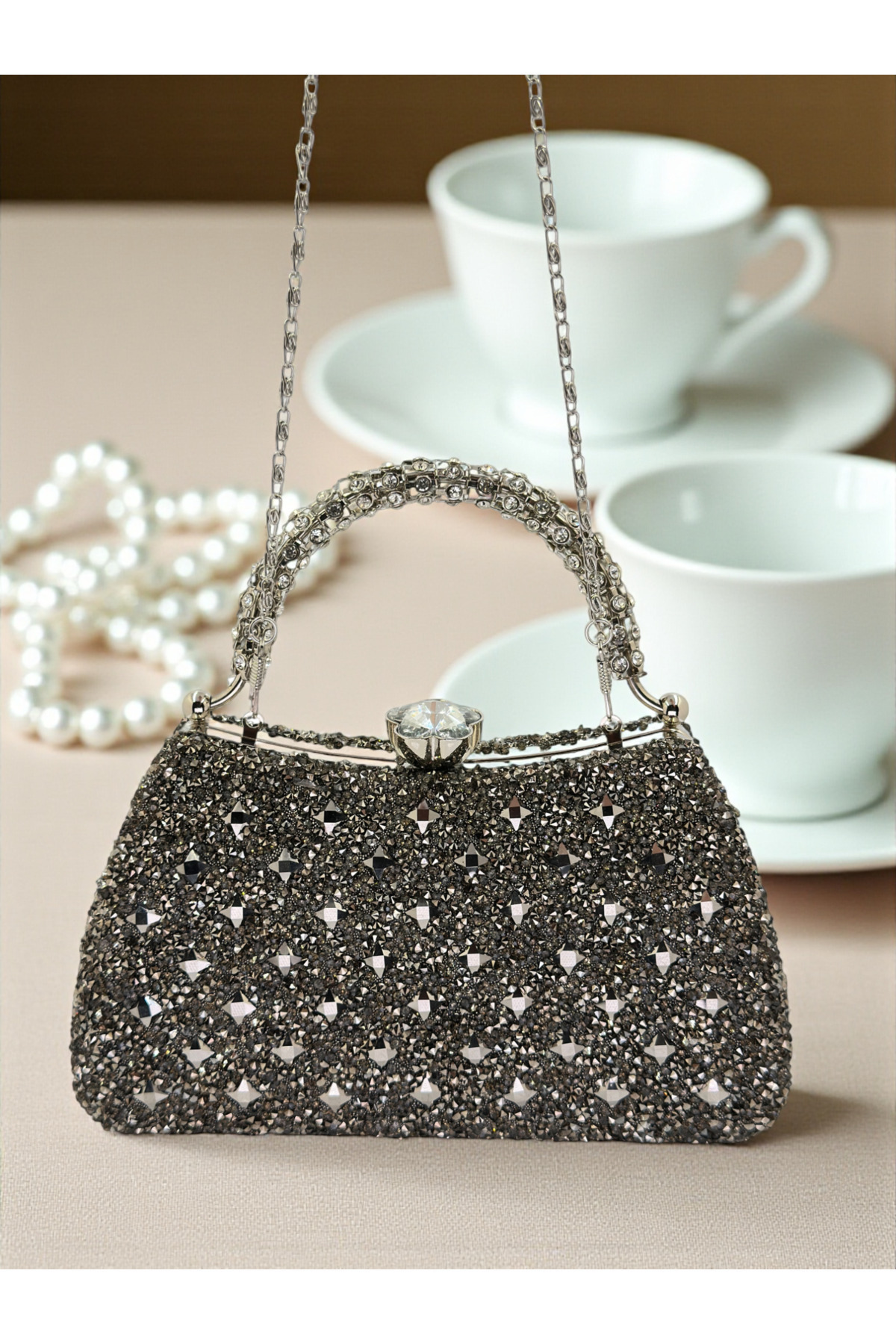 Özel Tasarım Antrasit Gri Platin Renk Komple Taşlı Kulplu Kadın Abiye Çanta Düğün Nişan Balo Özel Tasarım Antrasit Gri Platin Renk Komple Taşlı Kulplu Kadın Abiye Çanta Düğün Nişan Balo 220-S Saten Taşlı تک سایز