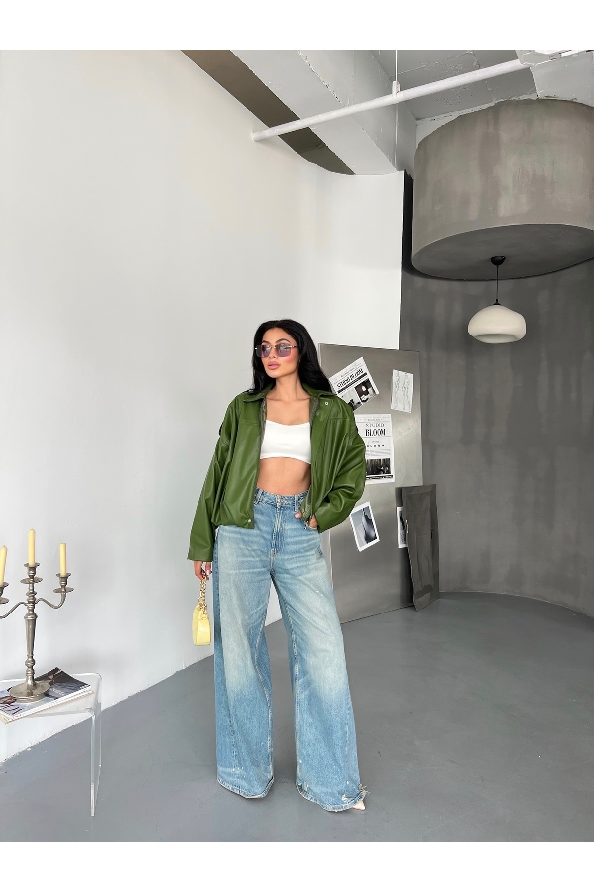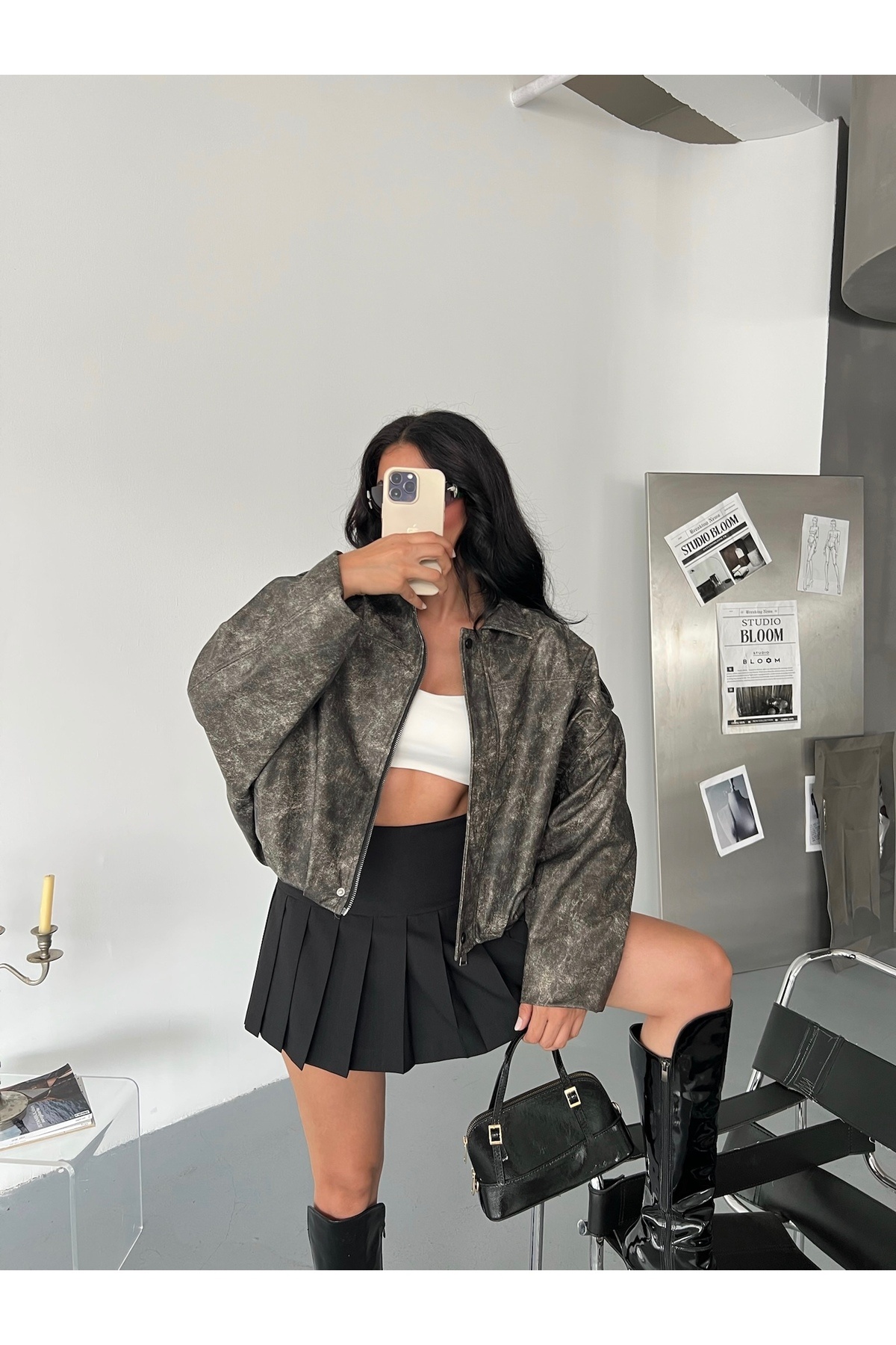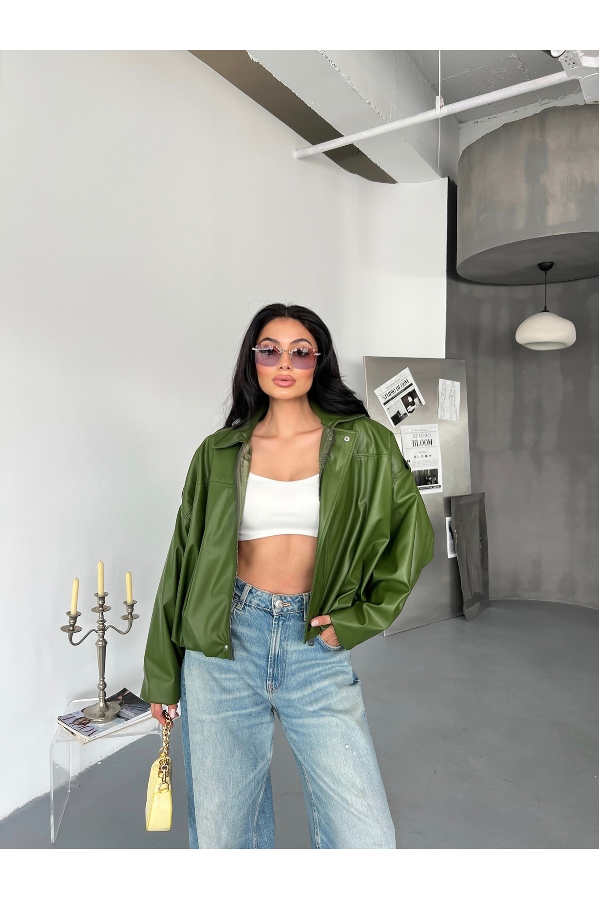 Kadın Oversize Bomber Deri Ceket Kadın Oversize Bomber Deri Ceket Laluna1121DCV Standart