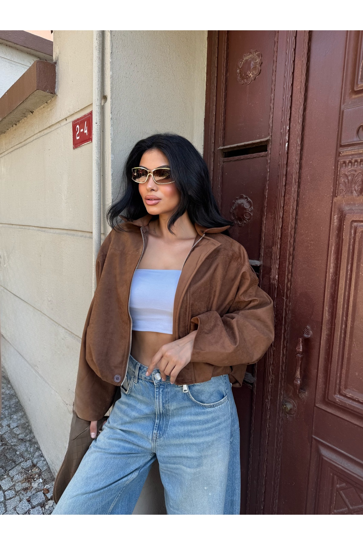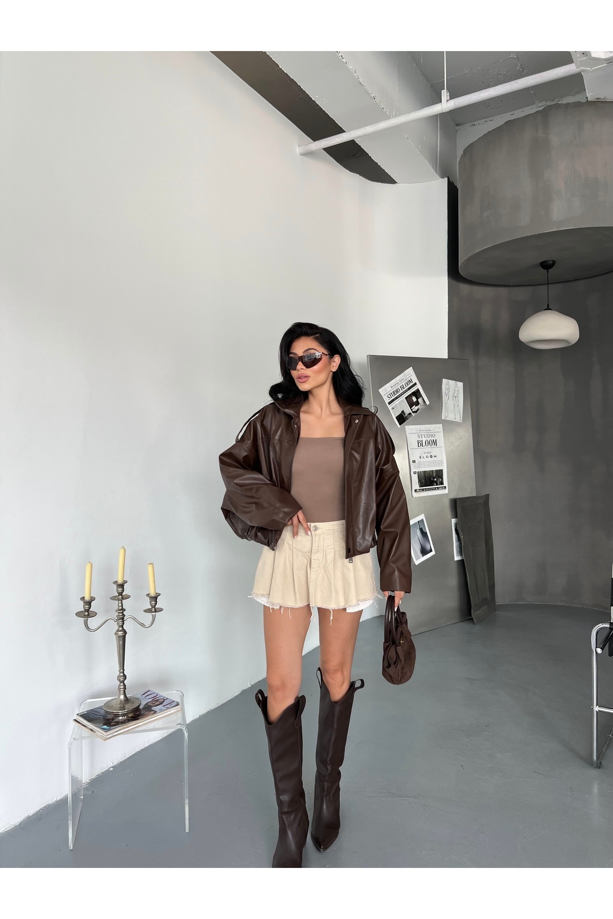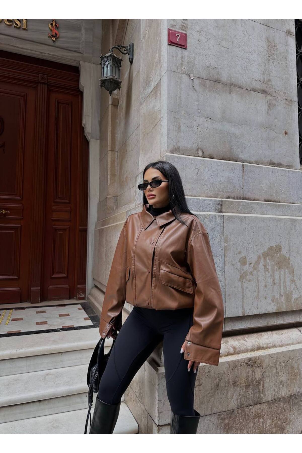 Kadın Oversize Bomber Deri Ceket Kadın Oversize Bomber Deri Ceket Laluna1121DCV Standart