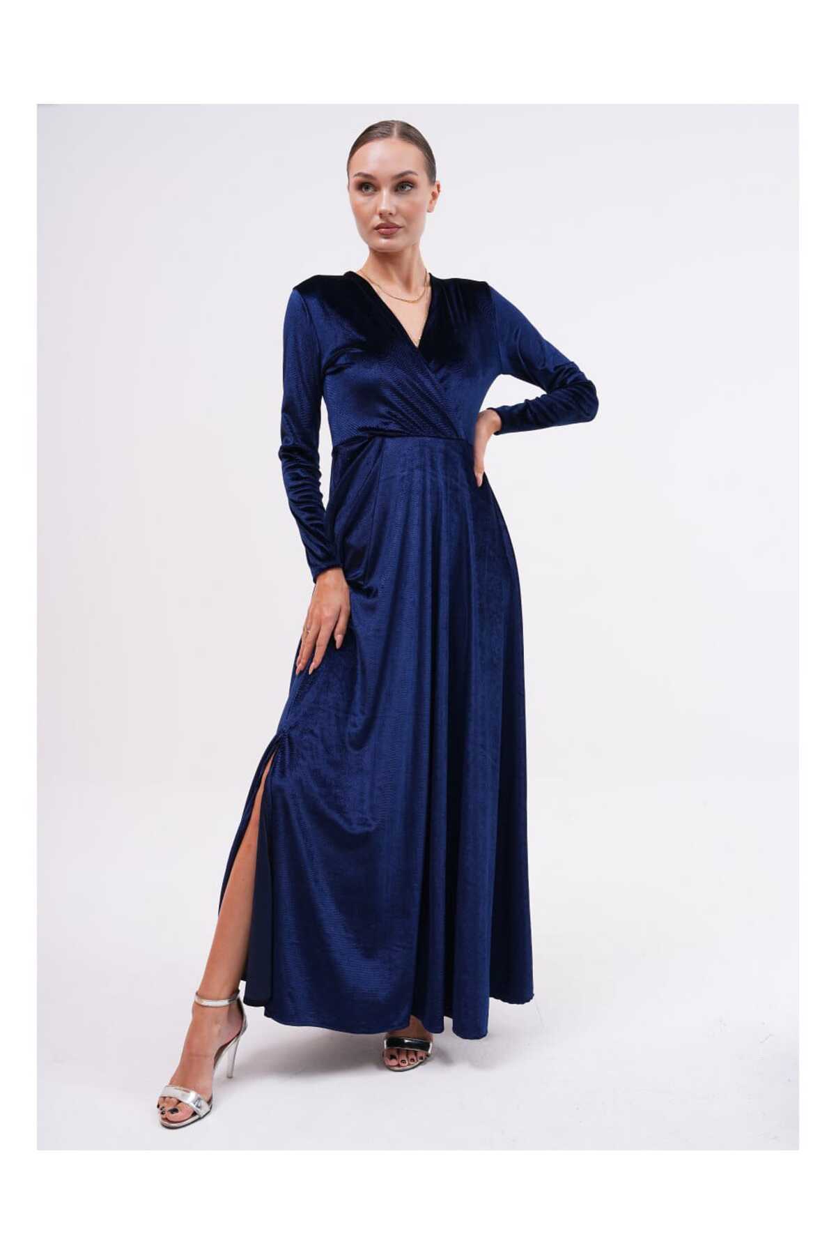 Abiye Yırtmaçlı Kadife Elbise Abiye Yırtmaçlı Kadife Elbise 224755 50