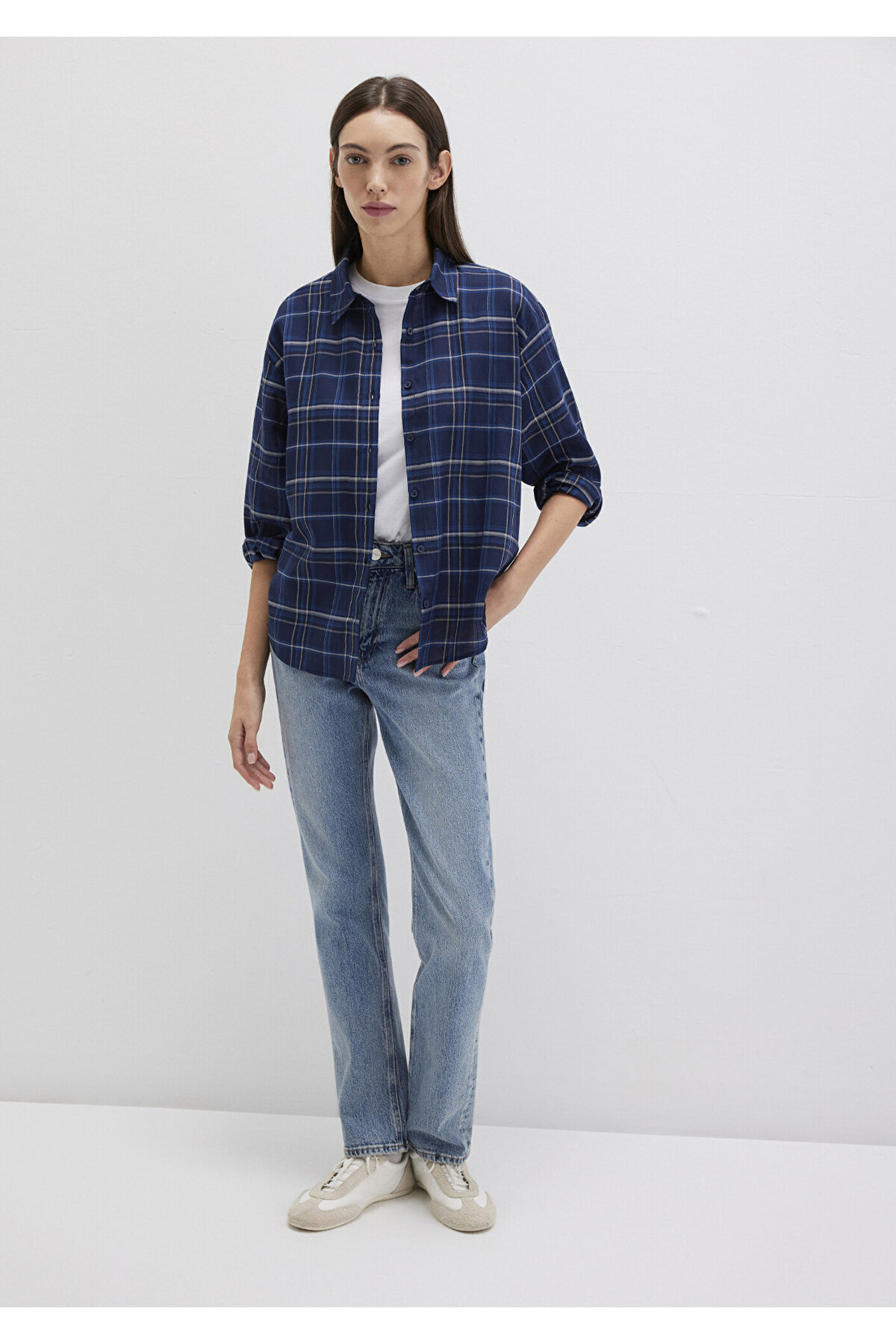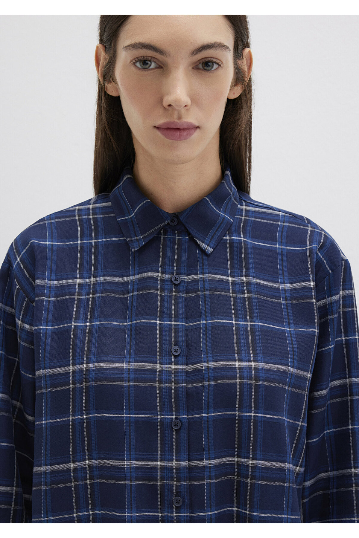 Kareli Lacivert Gömlek Loose Fit / Bol Rahat Kesim 1211202-83150 Kareli Lacivert Gömlek Loose Fit / Bol Rahat Kesim 1211202-83150 L