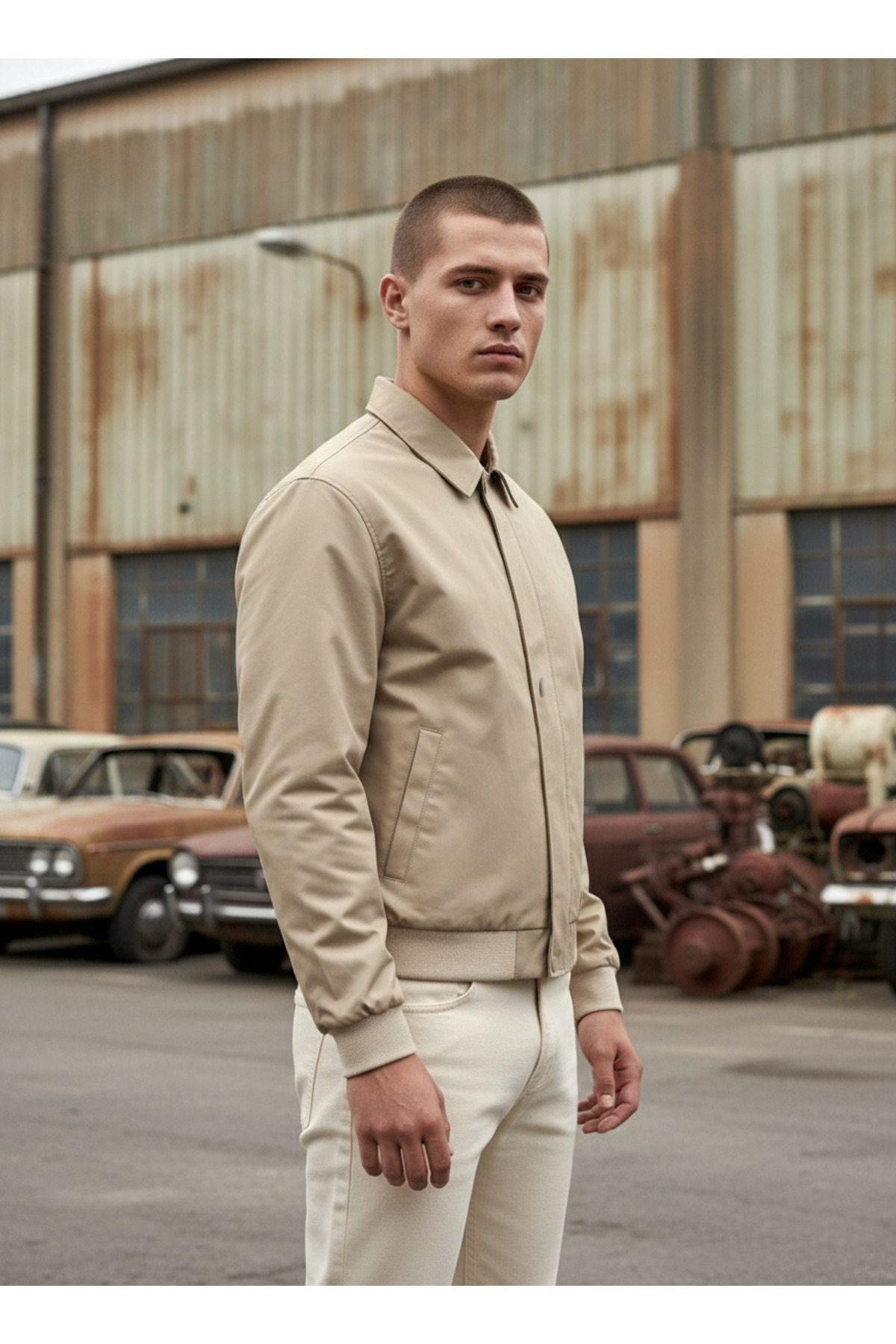 ERKEK EKRU DERİ MONT YAKA DETAYLI VE FERMUARLI CEKET KABAN ERKEK EKRU DERİ MONT YAKA DETAYLI VE FERMUARLI CEKET KABAN MM-SM XL