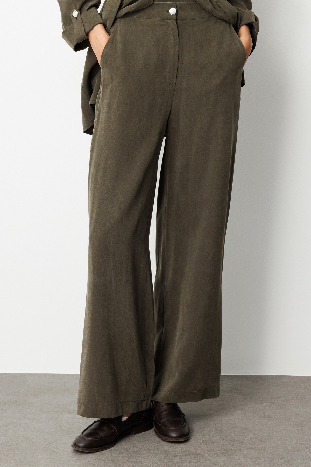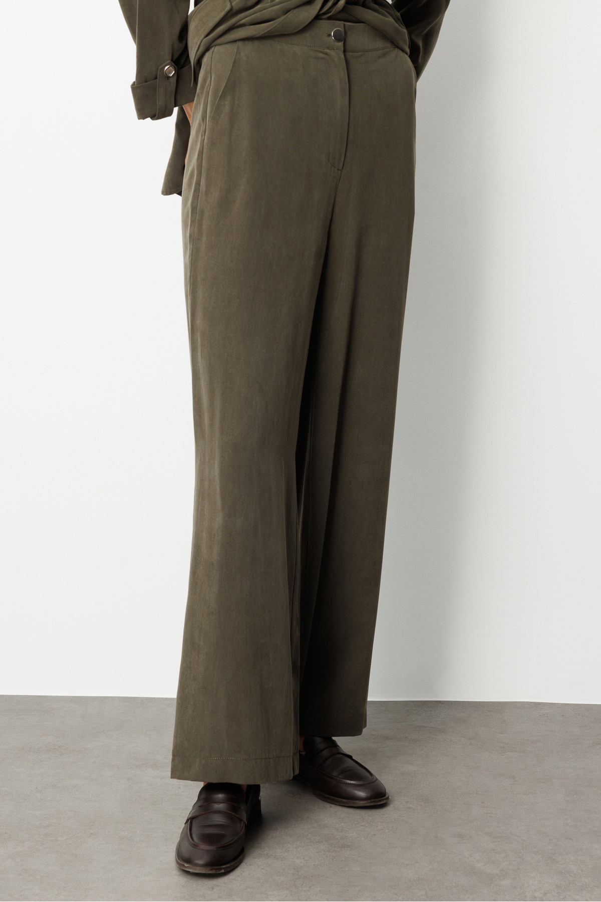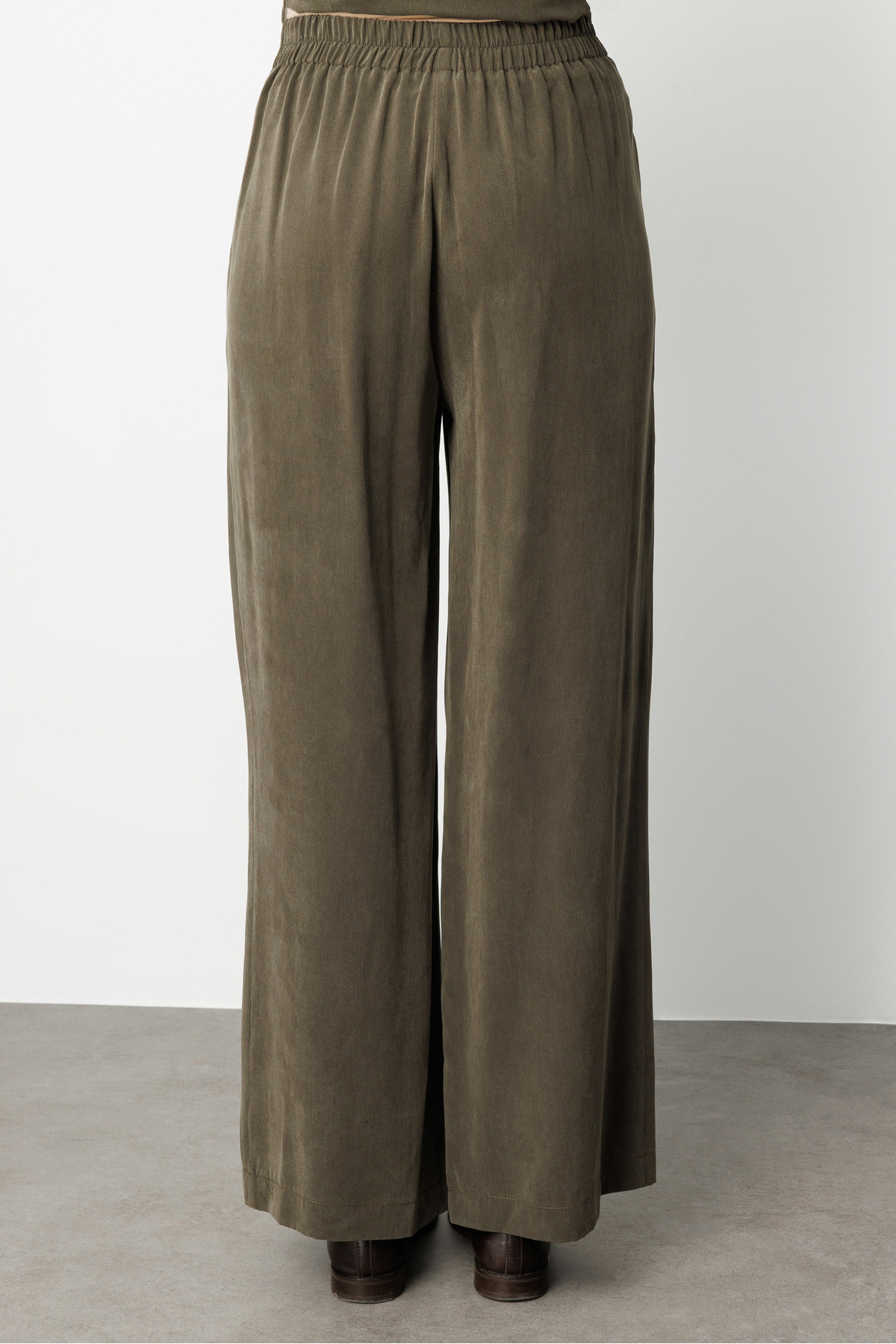Geniş Paça beli Lastikli Haki Cupro Pantolon Geniş Paça beli Lastikli Haki Cupro Pantolon M1MZ1010130186 XL