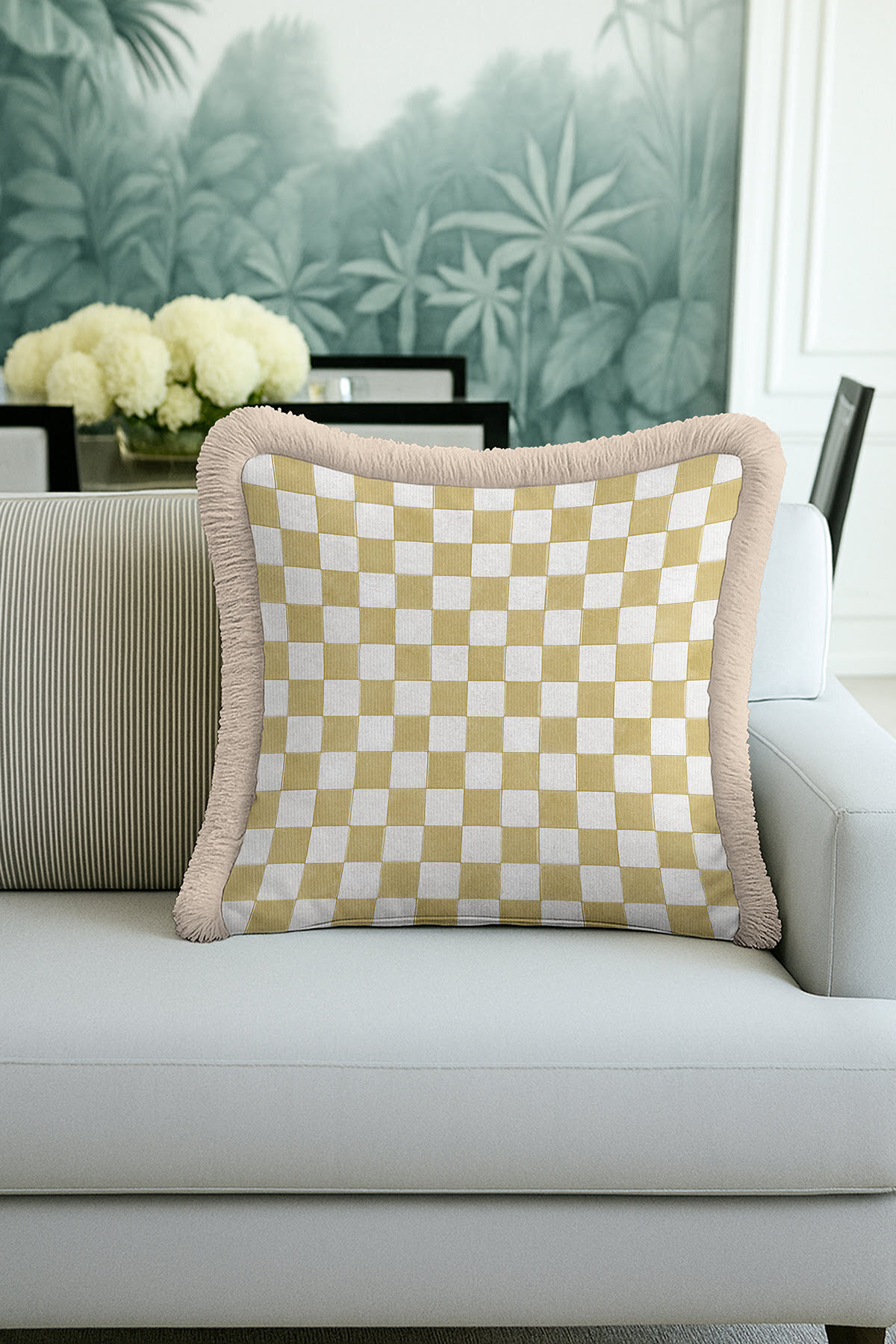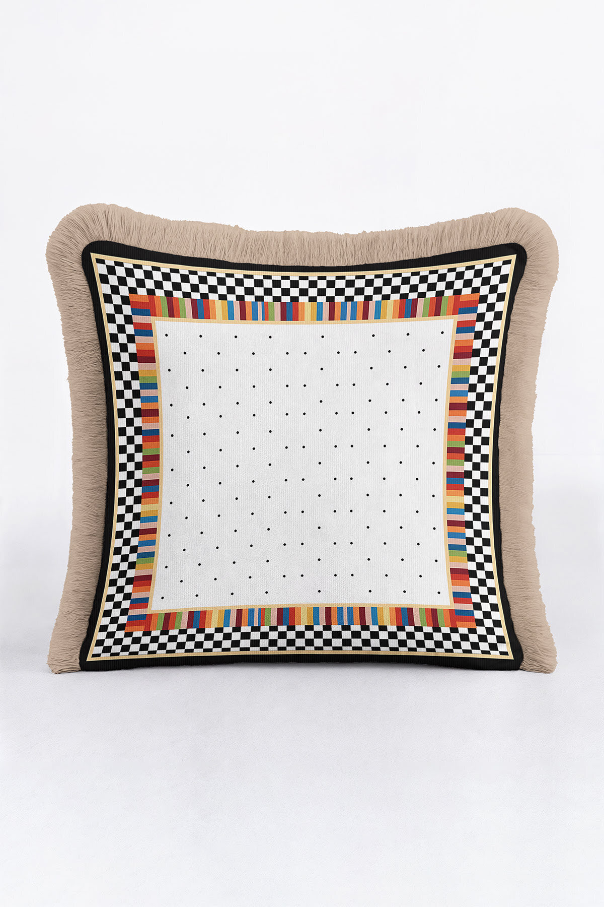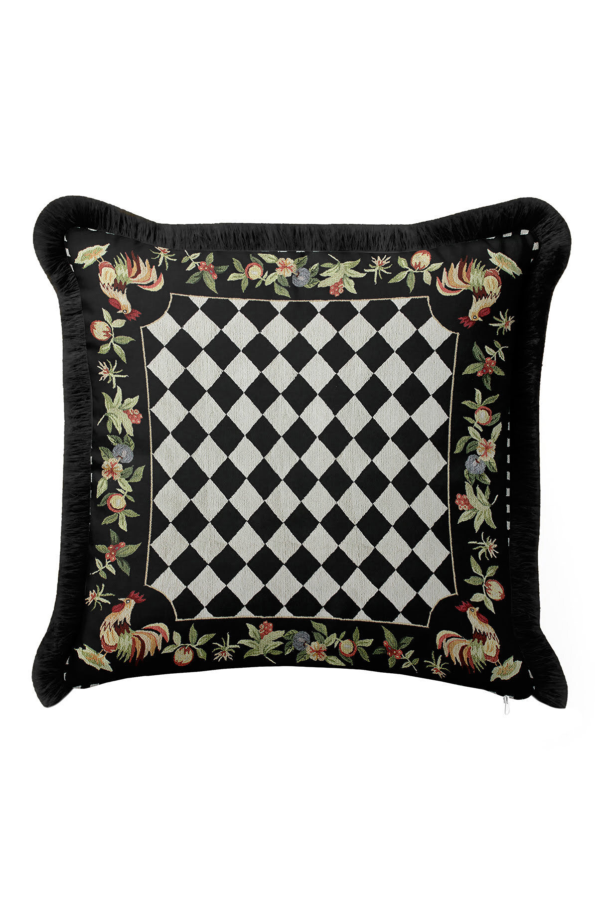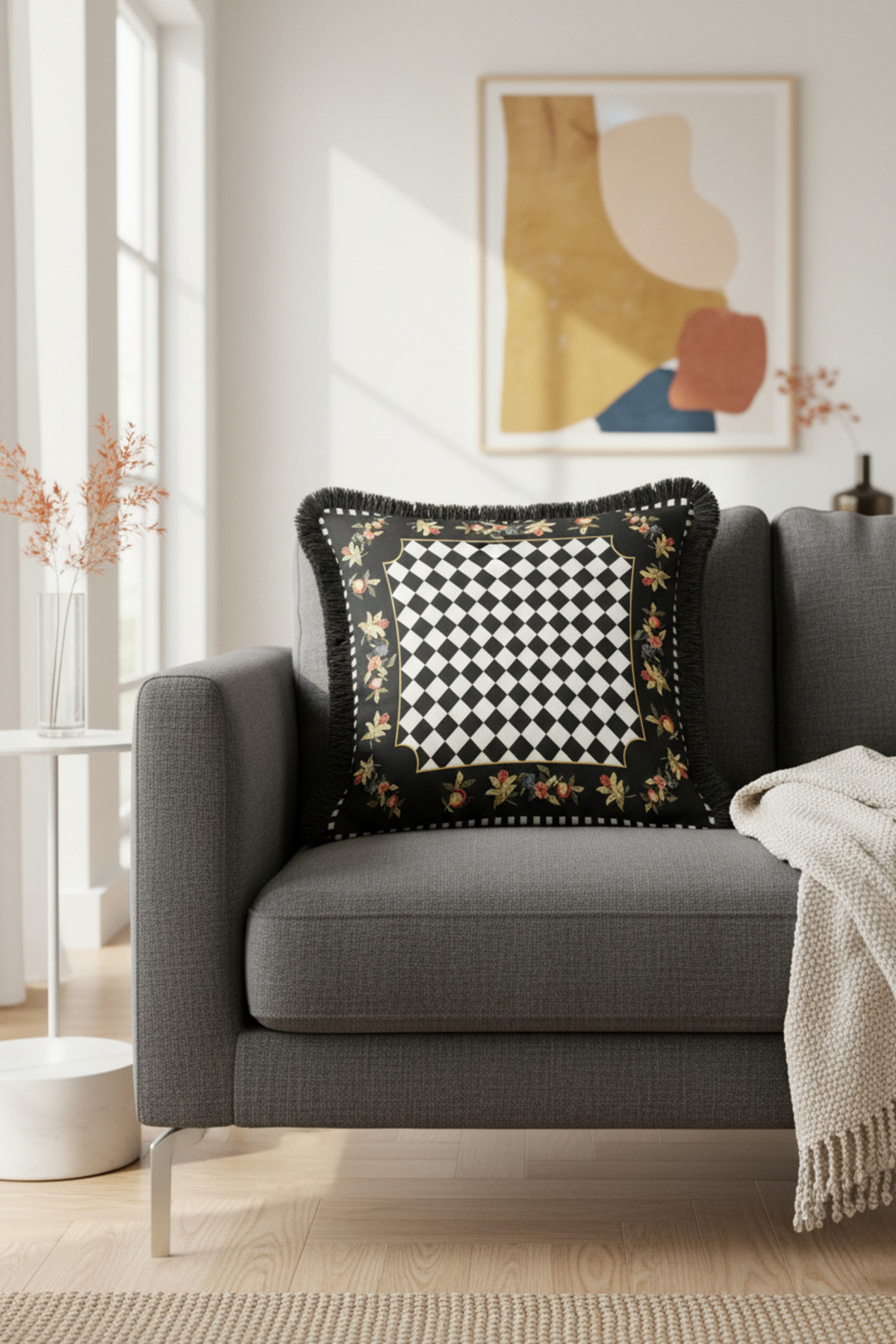 Lüks Harlequin Saçaklı Yastık Kılıfı - Gül Motifli Ekose Country Siyah Bej Püsküllü Kırlent Kılıfı Lüks Harlequin Saçaklı Yastık Kılıfı - Gül Motifli Ekose Country Siyah Bej Püsküllü Kırlent Kılıfı GRS83 40 x 40